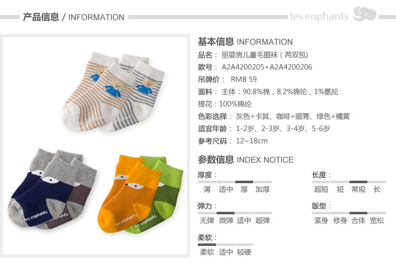 丽婴房-鞋袜类(冬)A7婴幼儿毛圈袜(两双包) 电商款