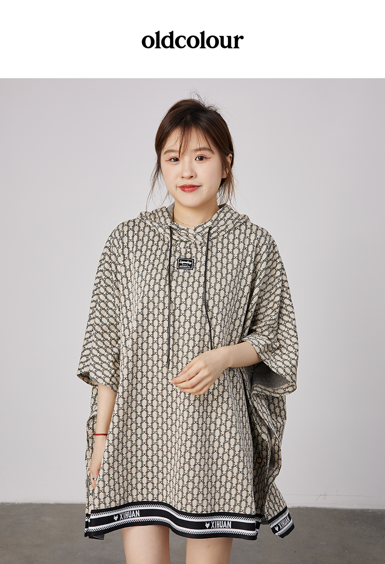 oldcolour2021秋商场同款l连帽蝙蝠袖时尚百搭斗篷卫衣N32042236
