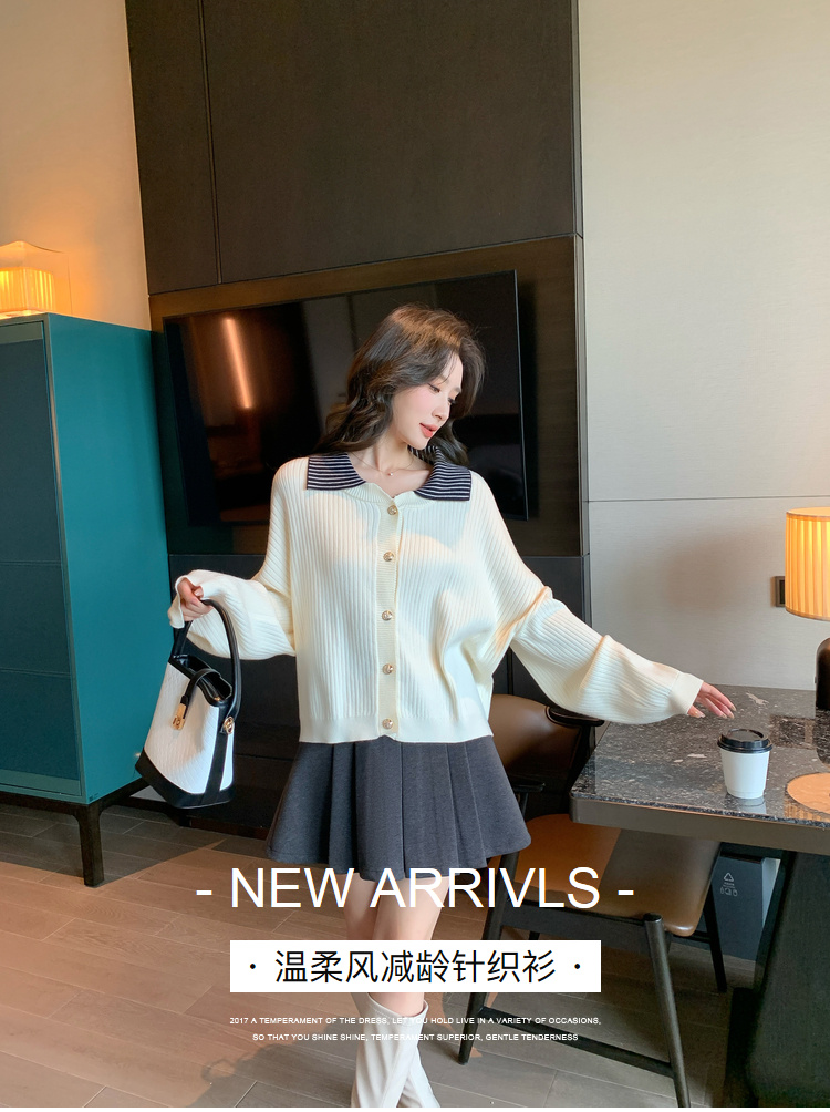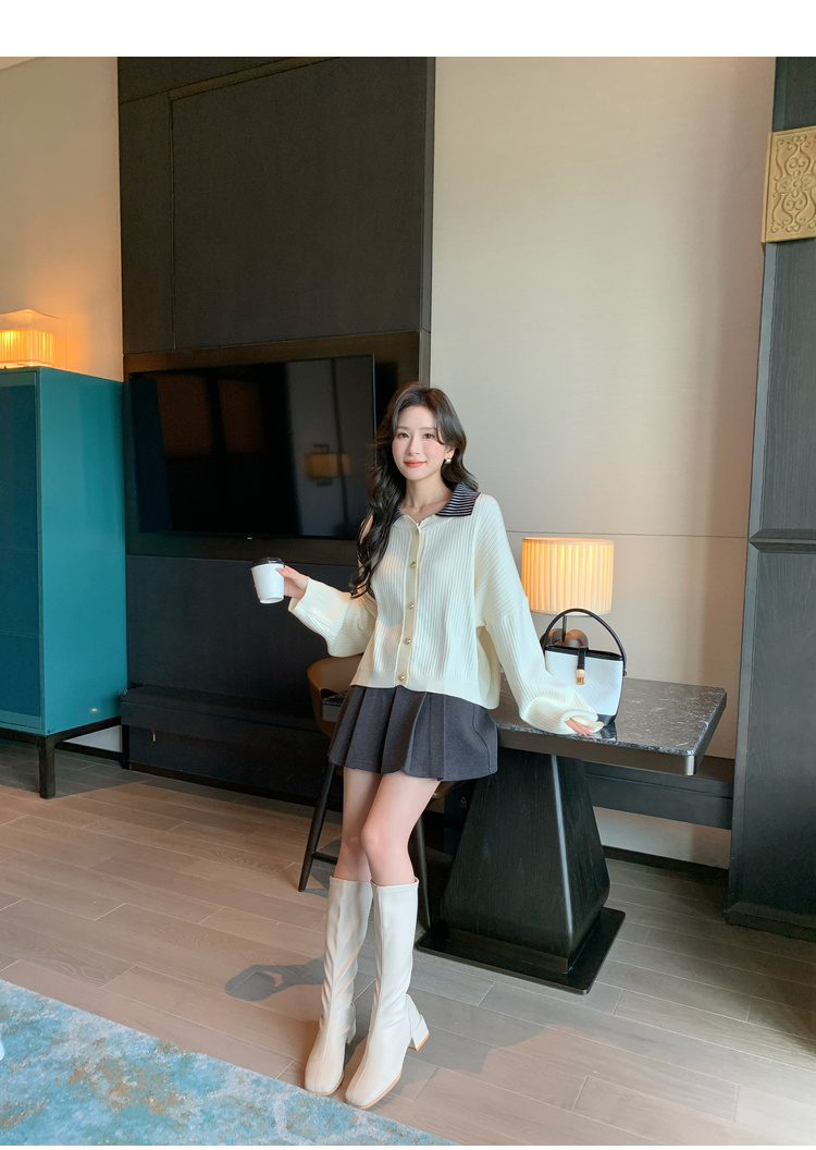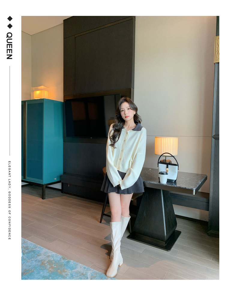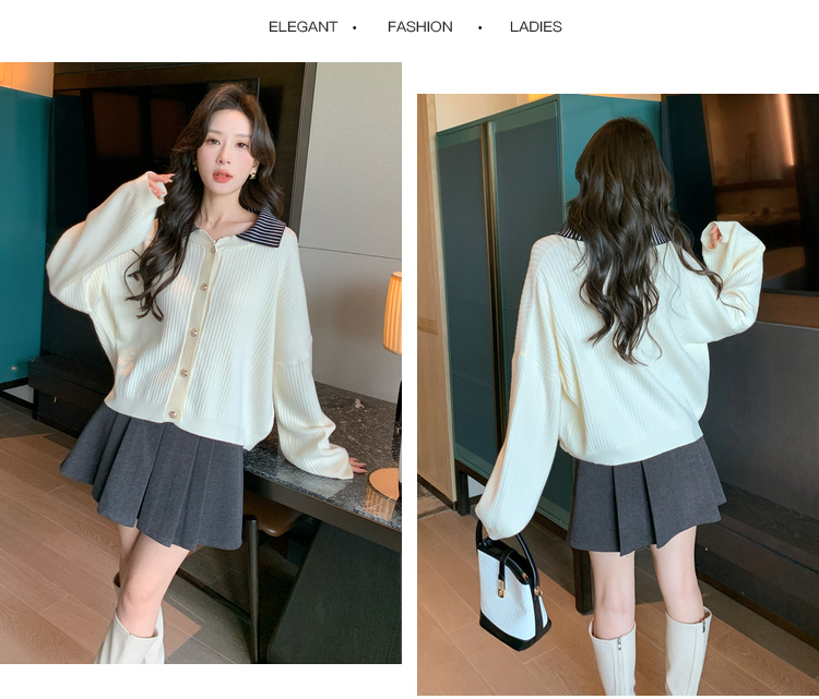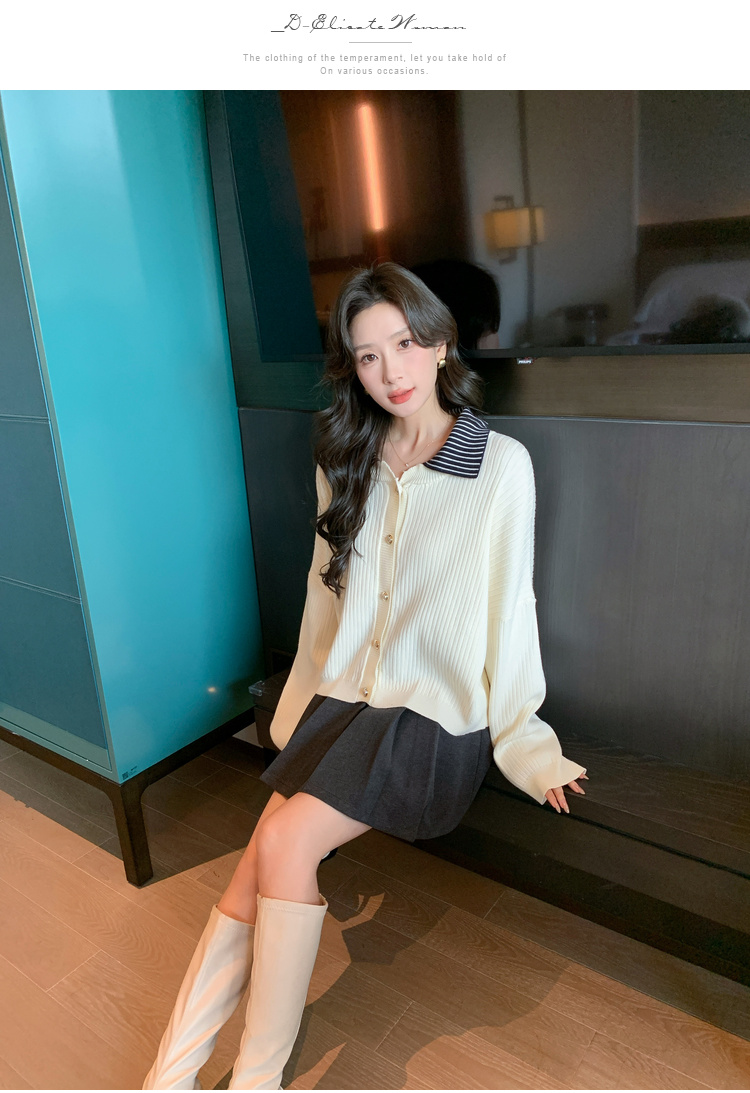 奢姿2025年春季新款大码女装拼接翻领上衣胖妹妹减龄气质针织开衫9843663149