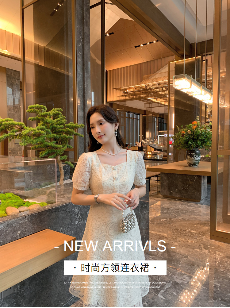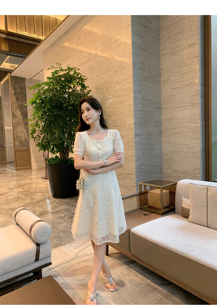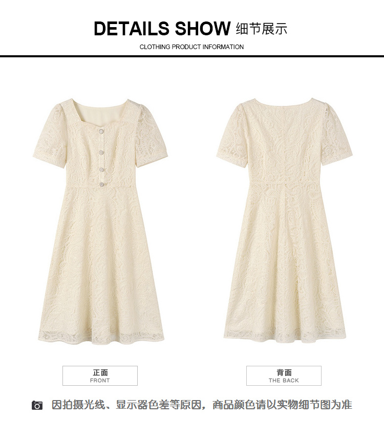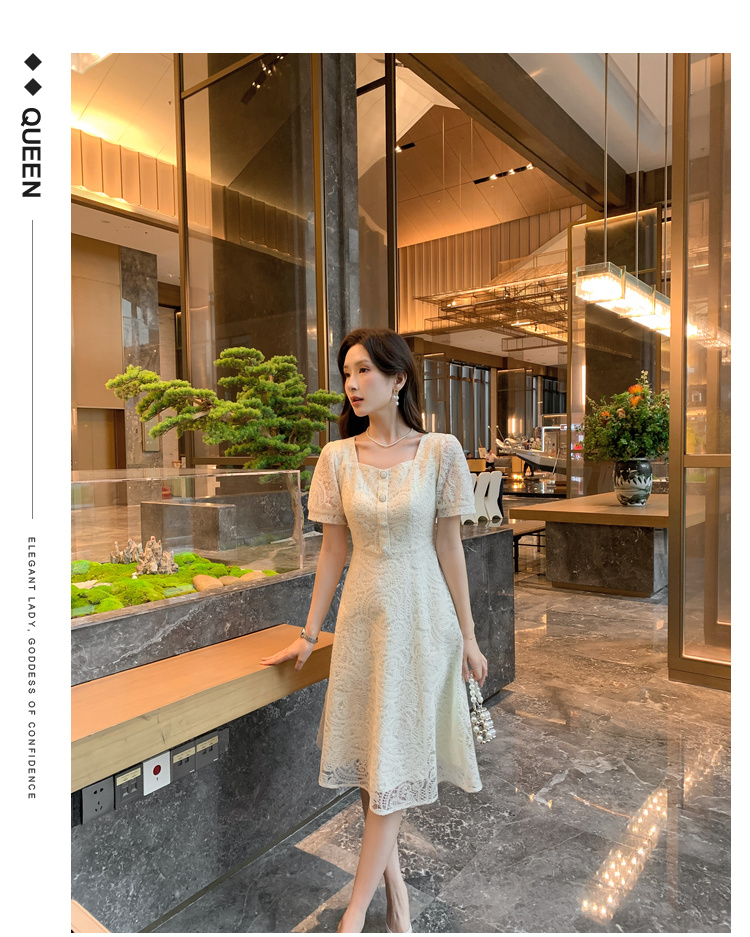 奢姿大码女装2025夏季新款蕾丝气质裙子胖妹妹纽扣方领时尚连衣裙9942826437