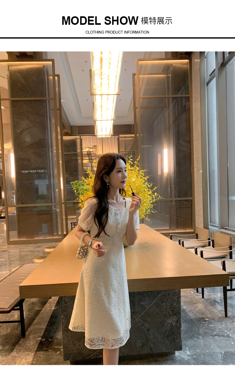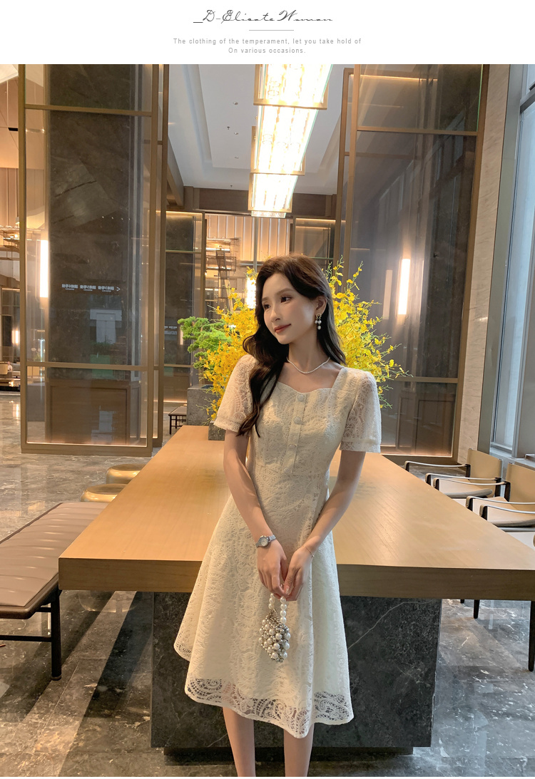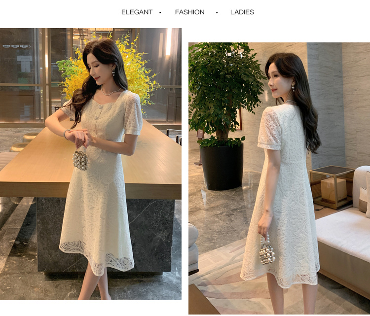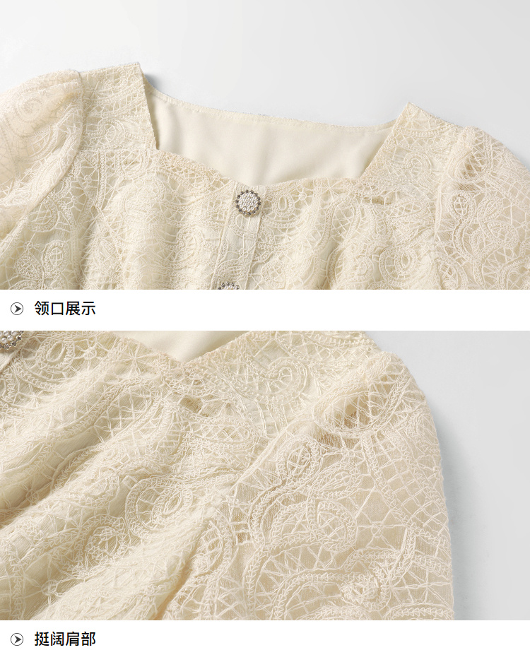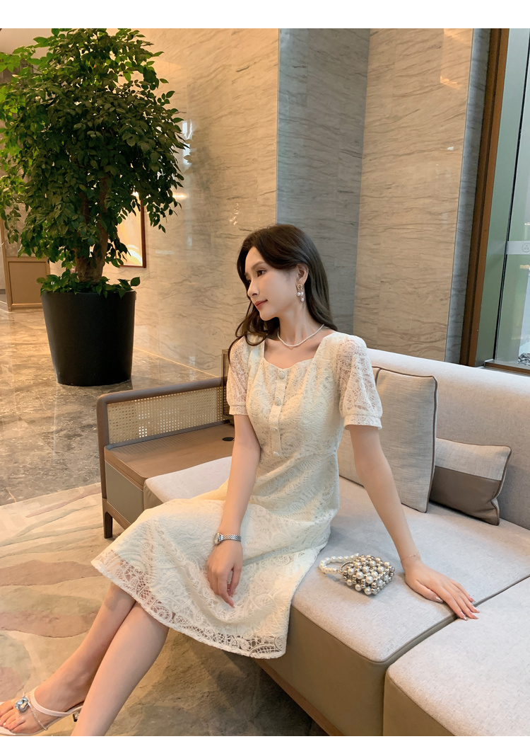 奢姿大码女装2025夏季新款蕾丝气质裙子胖妹妹纽扣方领时尚连衣裙9942826437