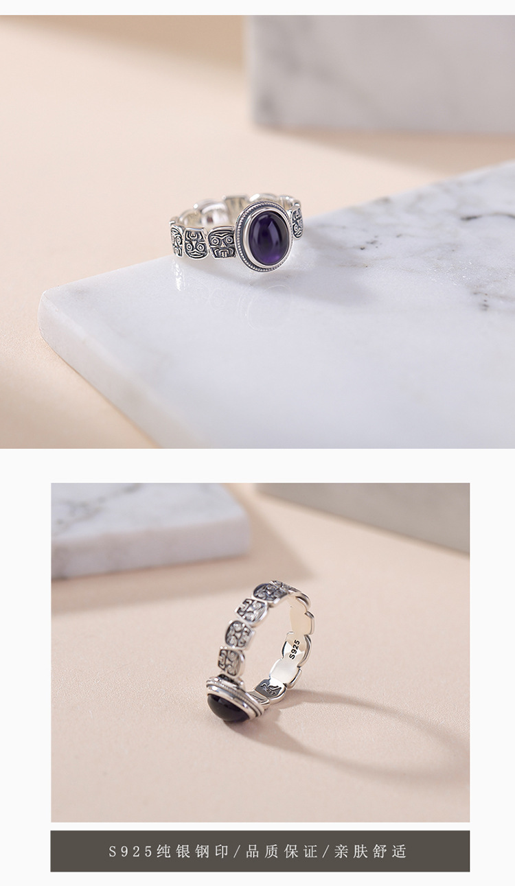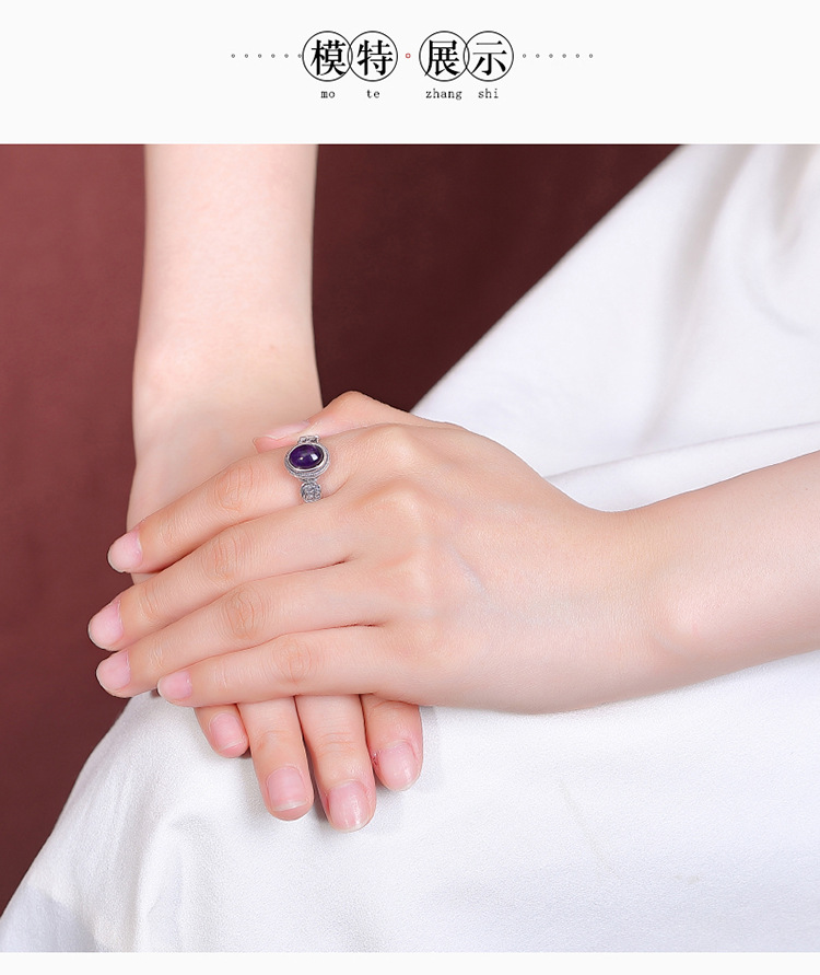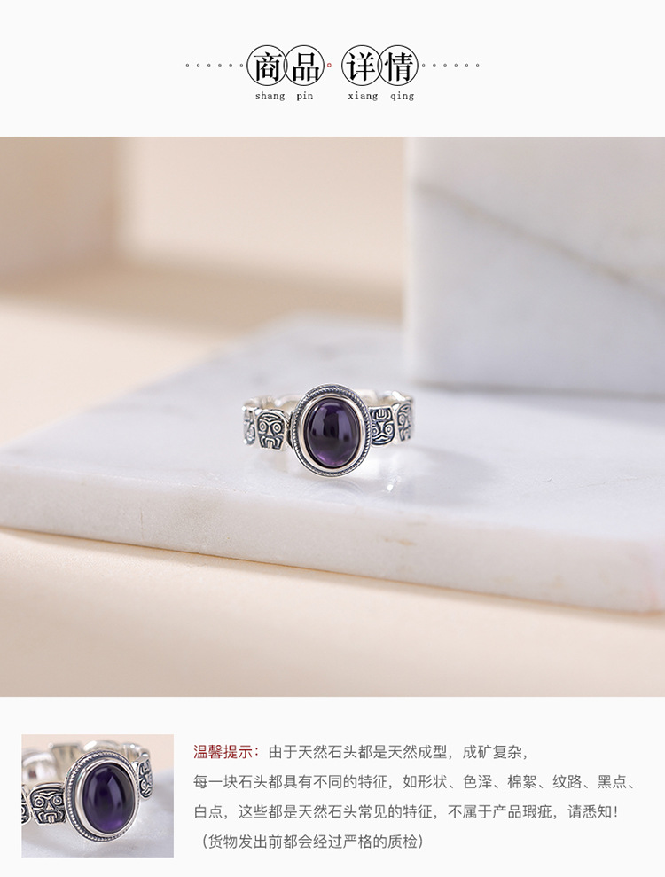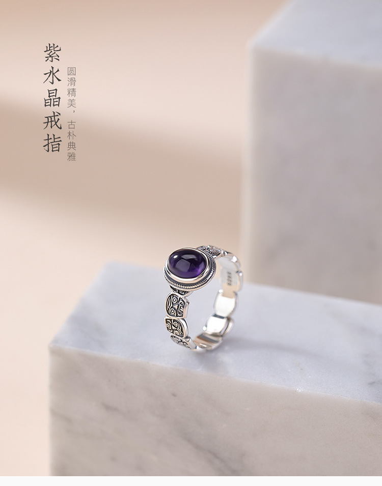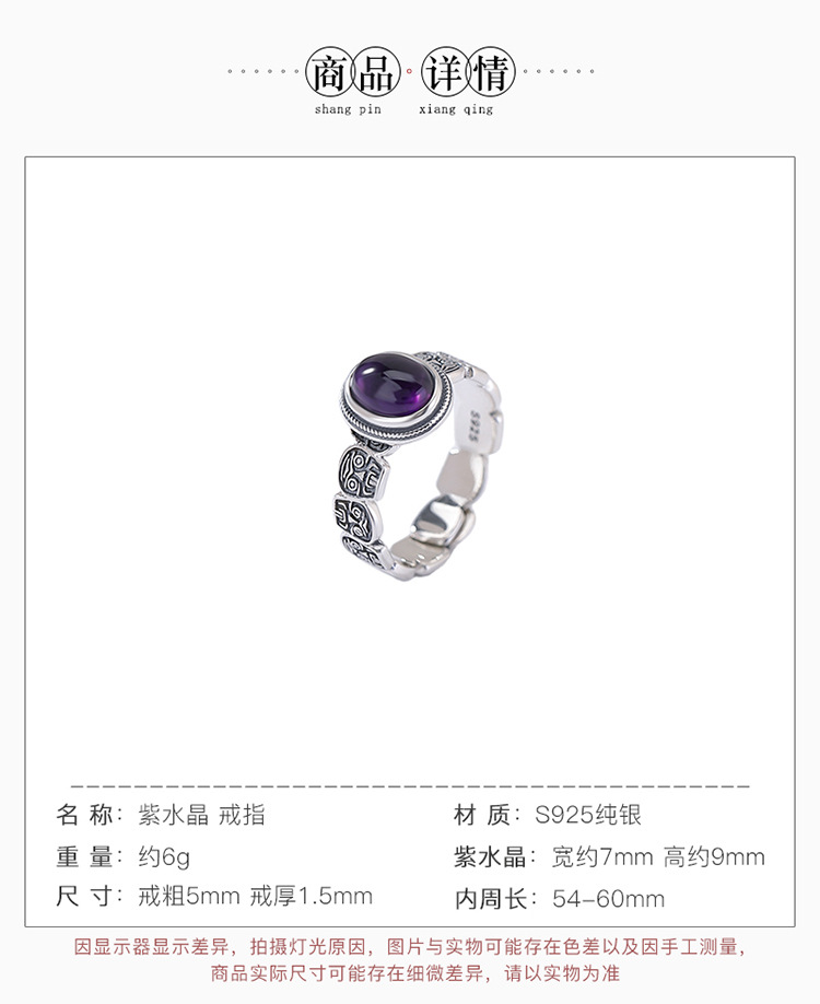 【扎基拉姆】S925纯银紫水晶蛋面戒指【CW-JZ07118】