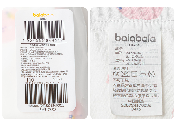 【云优选】巴拉巴拉女童内裤棉平角儿童四角短裤小童中大童亲肤不夹PP三条装(贴身衣物不退不换,介意慎拍)