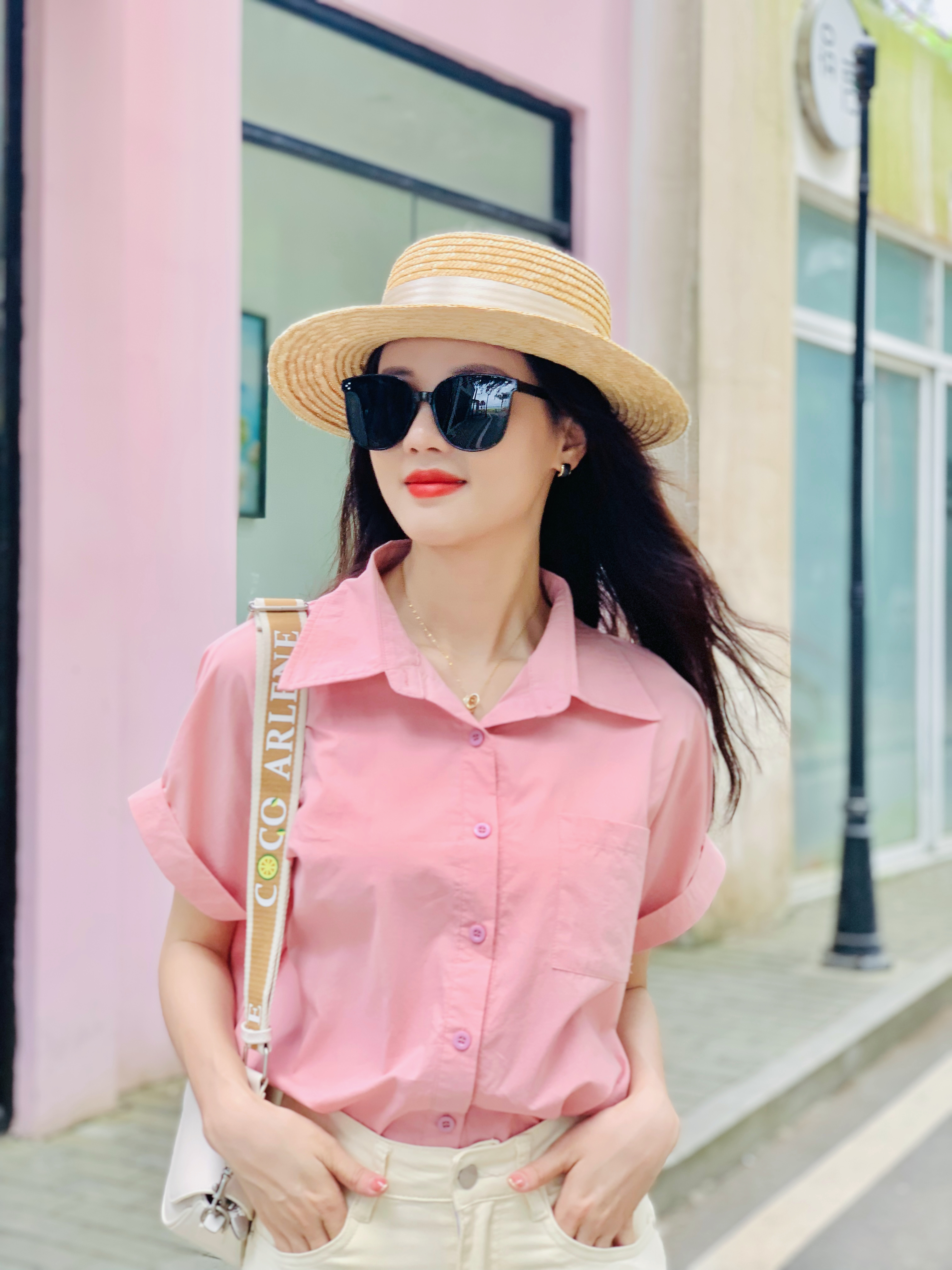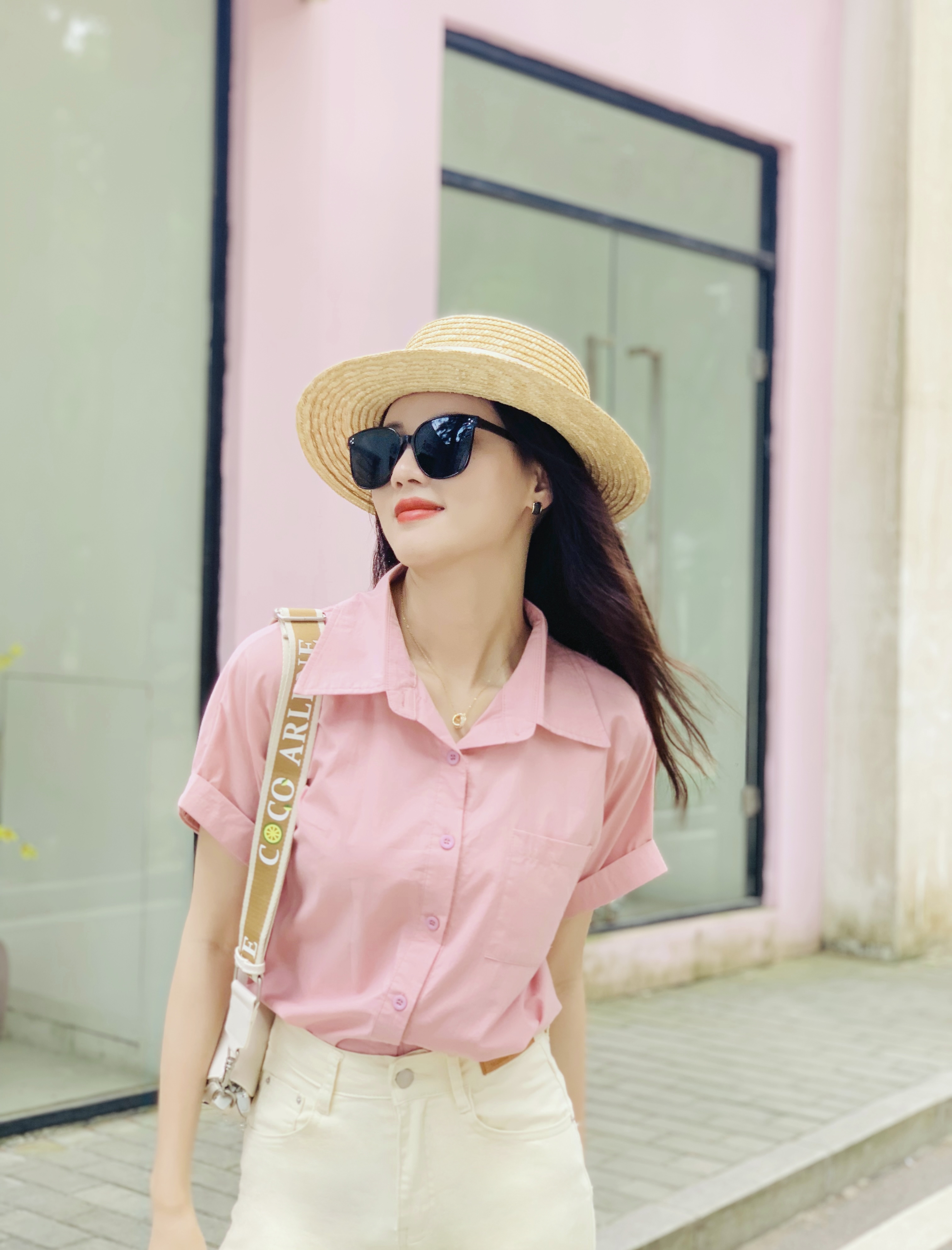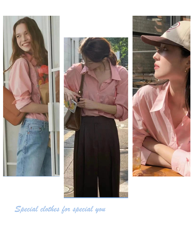 这种款式的粉衬衣更适合职场女性