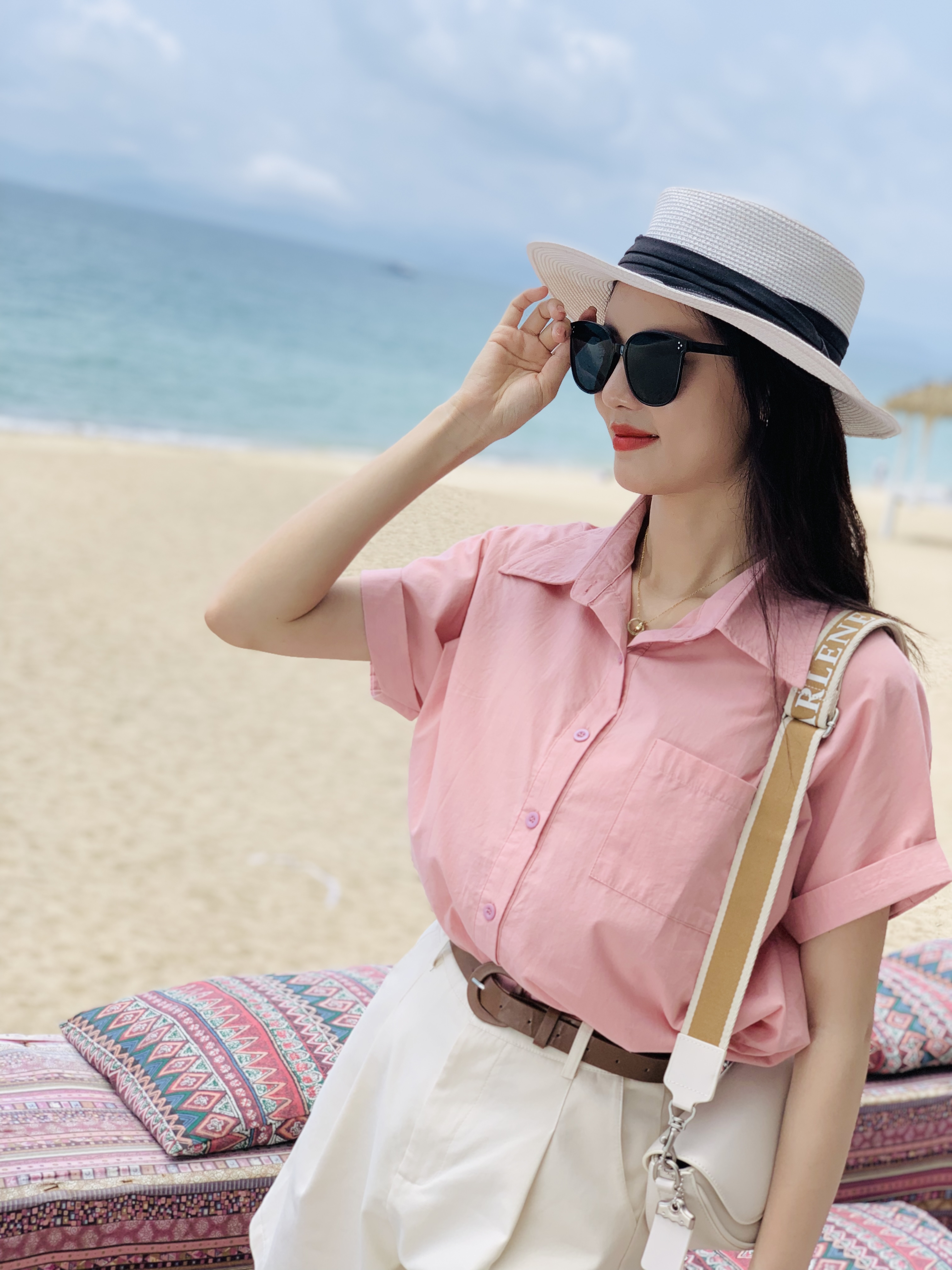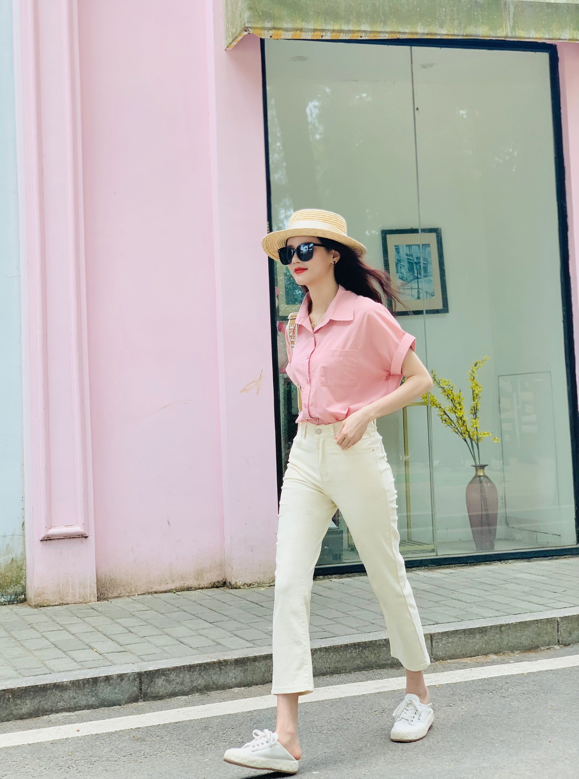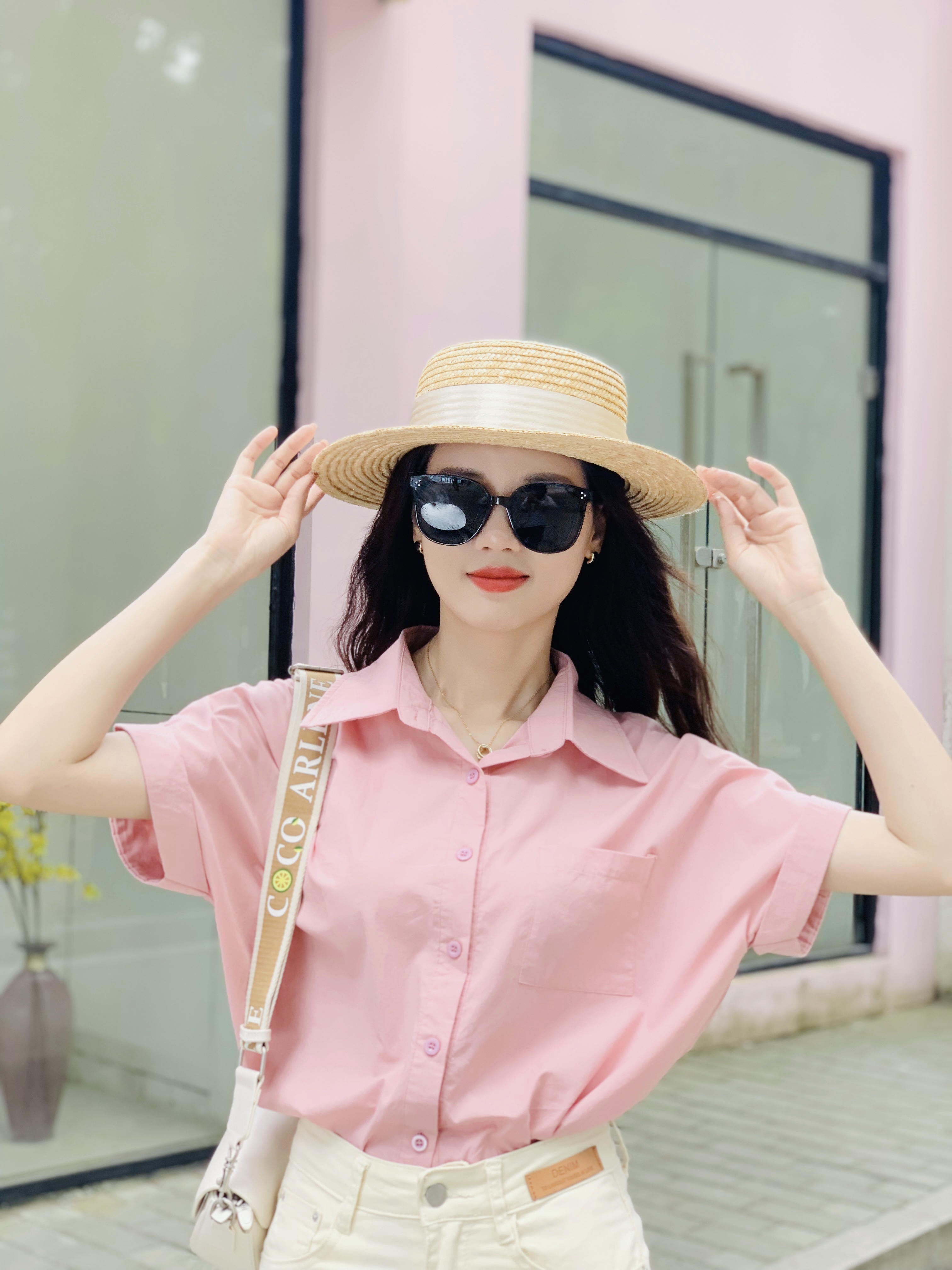 这种款式的粉衬衣更适合职场女性