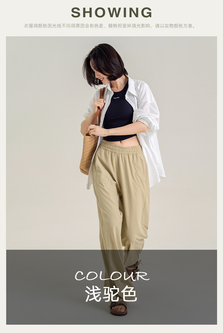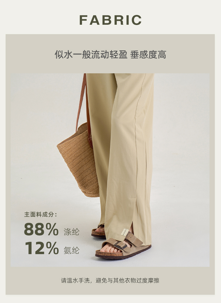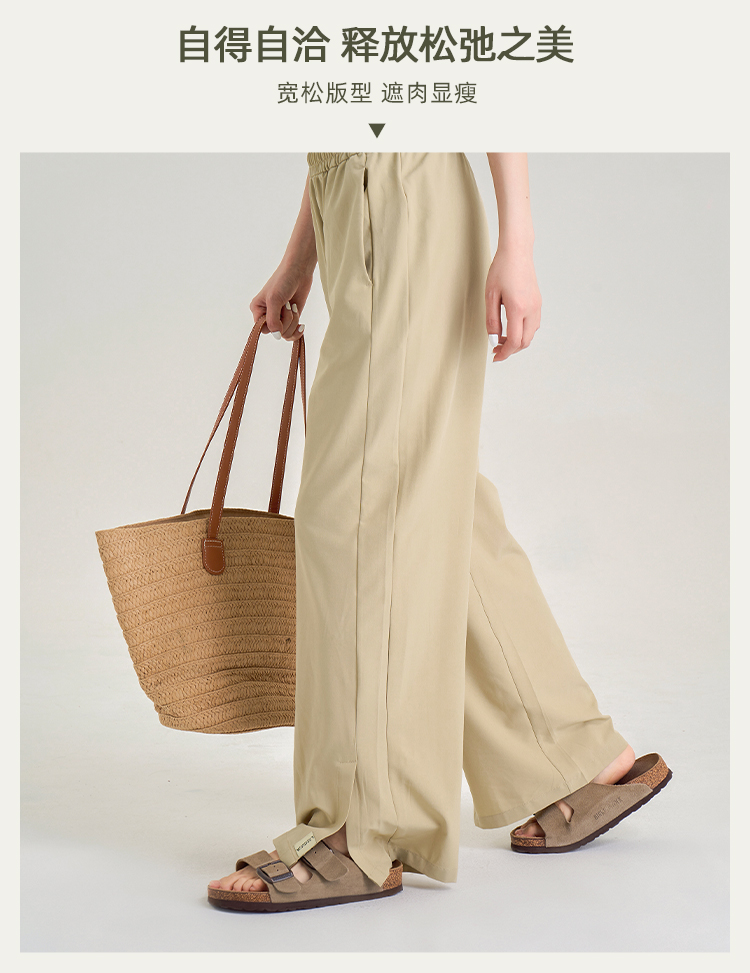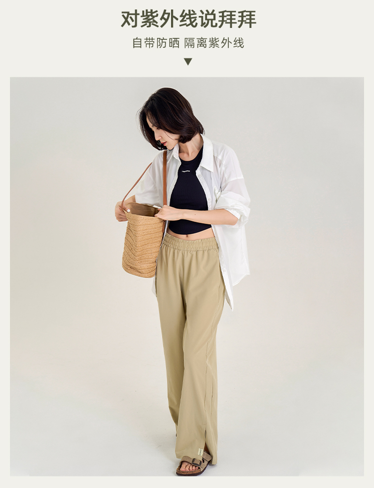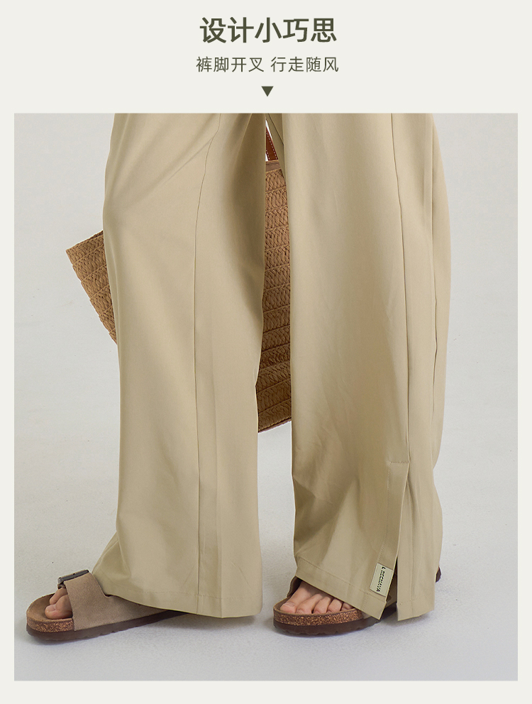 春夏秋薄款 UPF50+防晒阔腿裤 脚口开叉宽松直筒裤 遮肉显瘦显腿直