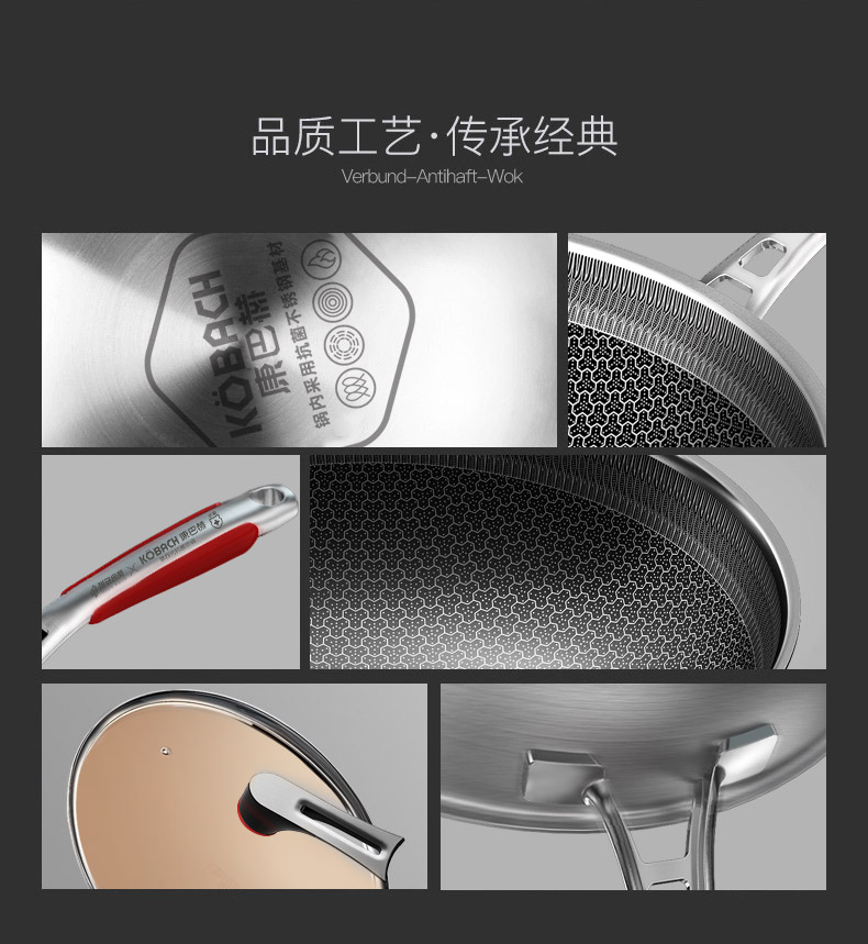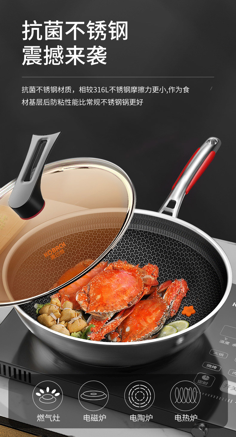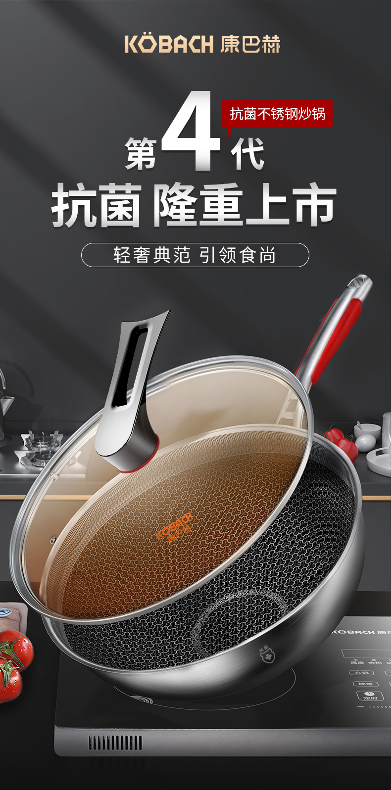 【品牌直发】康巴赫官方第四代抗菌不锈钢蜂窝家用电磁炉炒菜旗舰店新款不粘锅