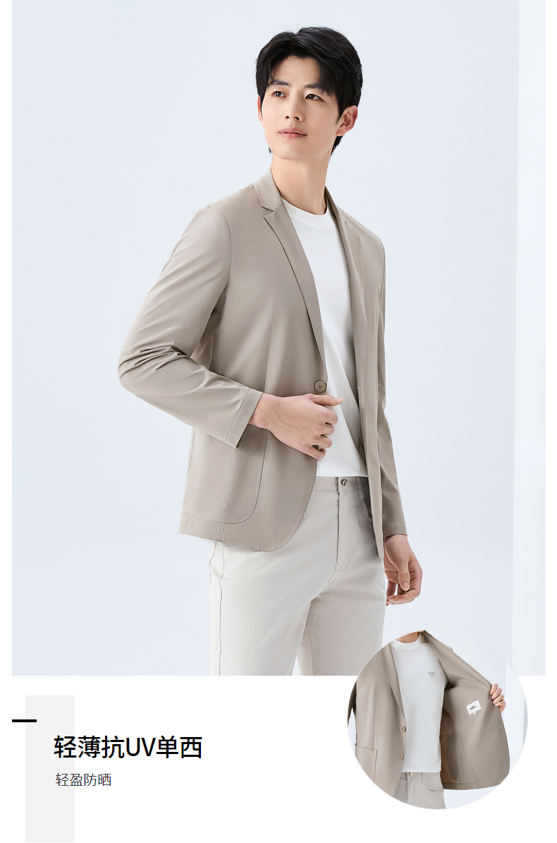 【轻薄/抗UV50+】柒牌男士休闲单西2026春季新款男装西服外套130C70190