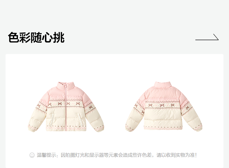 笛莎Deesha 童装女童羽绒服2025冬新款女童甜美费尔岛花纹立领羽绒服