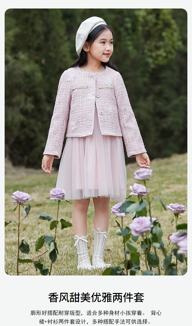 笛莎DEESHA女童2024年春季新款时尚香风优雅两件套