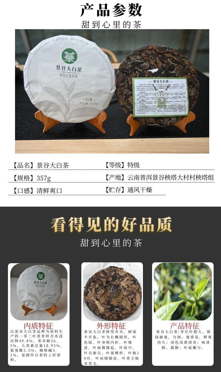 景谷大白茶有机白茶357g