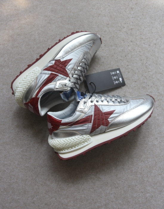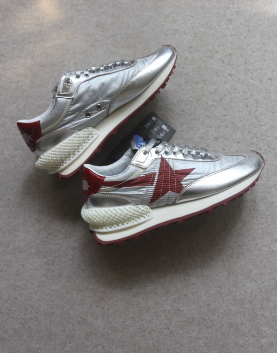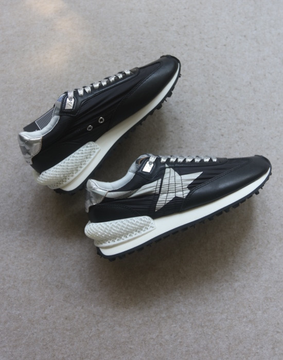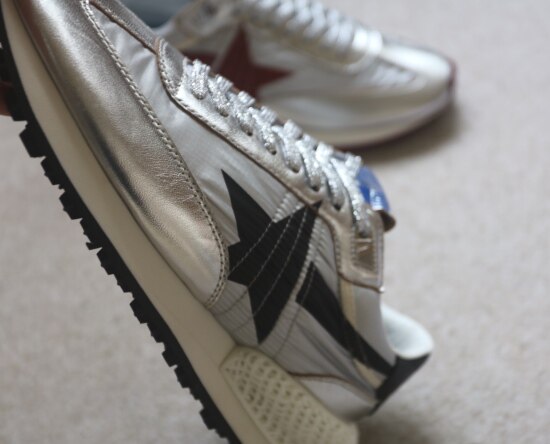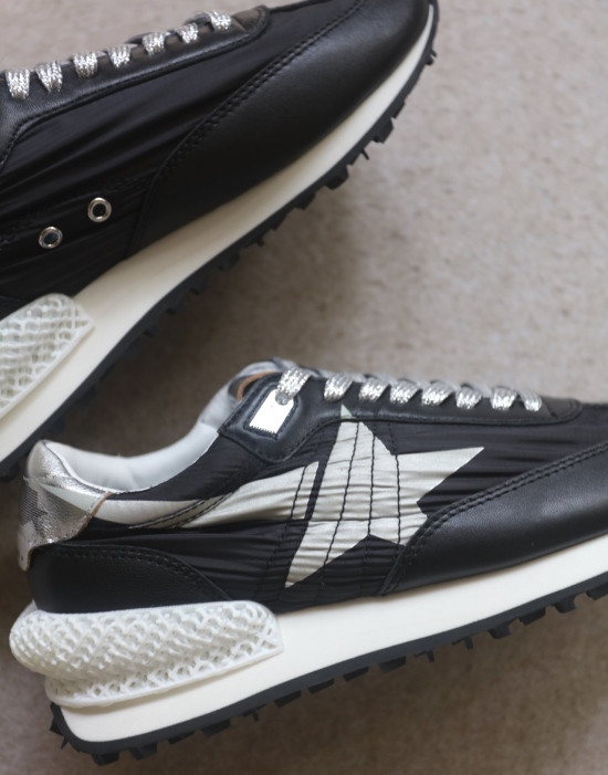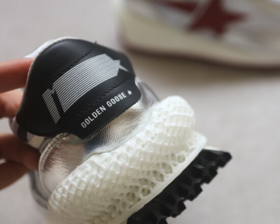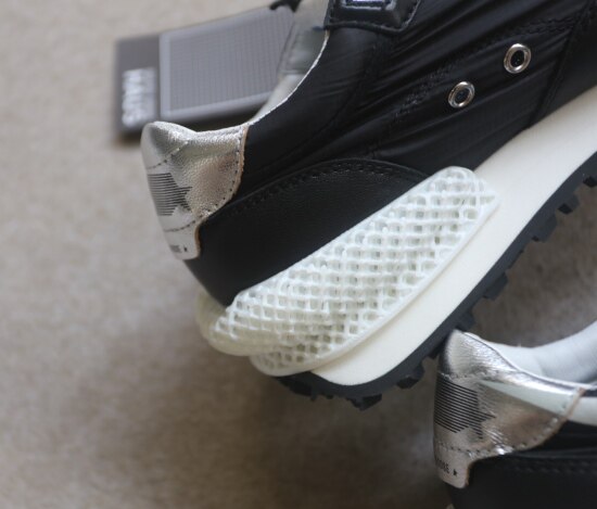 鞋面 由多种材质拼接 不是太冷太热都能穿 外侧饰星星元素 内侧有透气孔