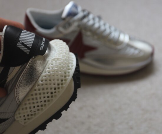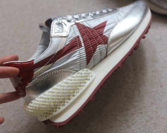 突出来的乳白色网孔 修饰+掩盖 后跟的小坡起 晓得了哇 哈~