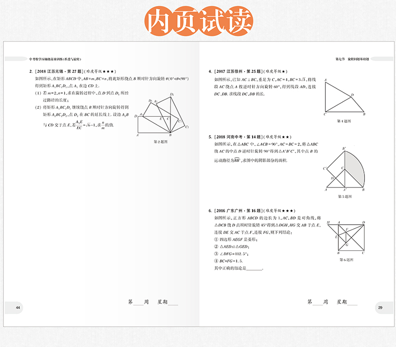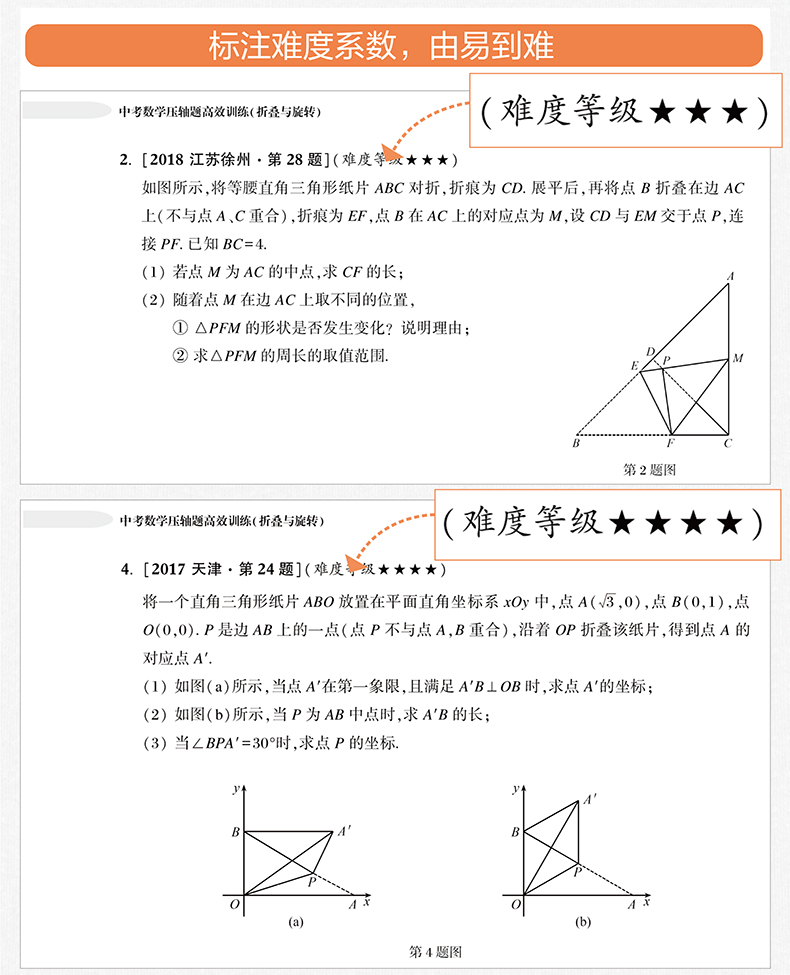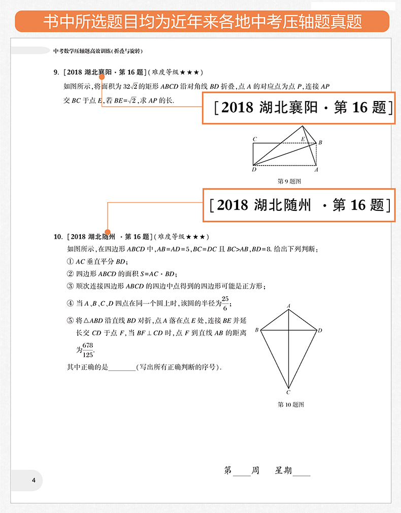 周计划中考数学压轴题高效训练 折叠与旋转 附详解答案和解题思路 初中初三中考数学初中数学知识大全 华东理工大学出版社