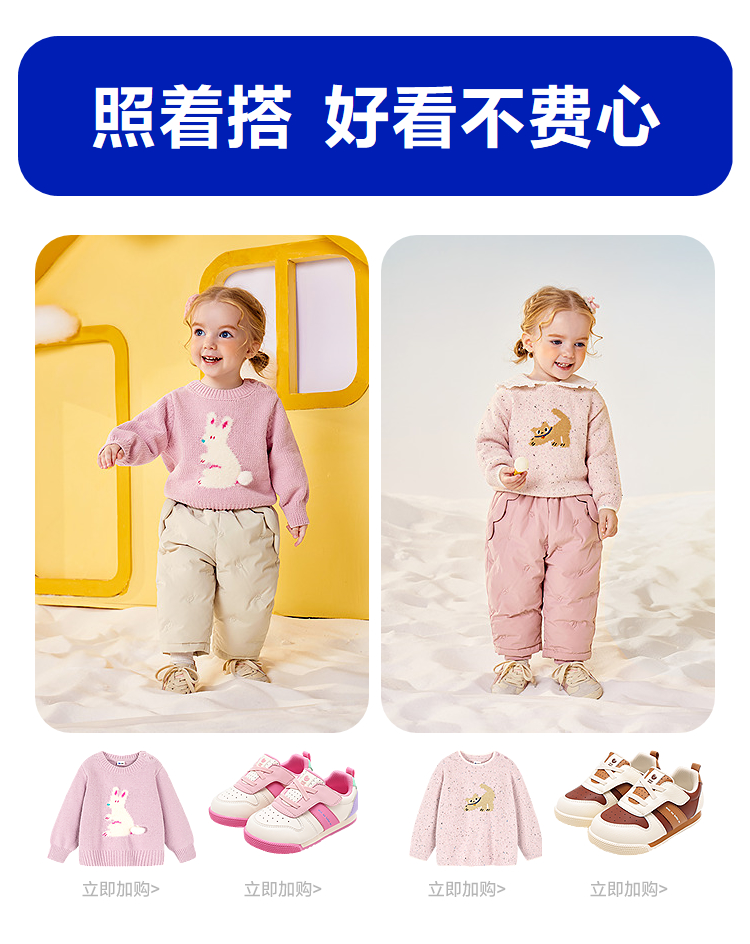 【迷你真心绒】迷你巴拉巴拉男女童宝宝裤子2025冬新品拒水羽绒裤