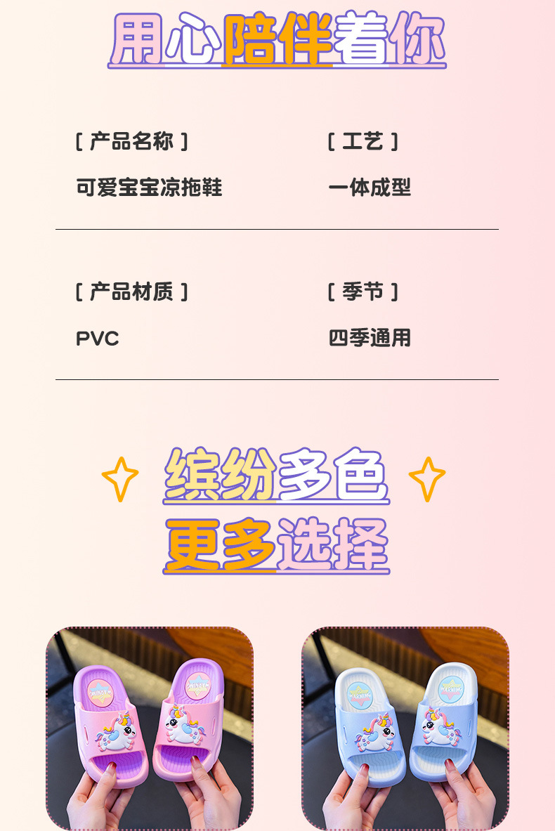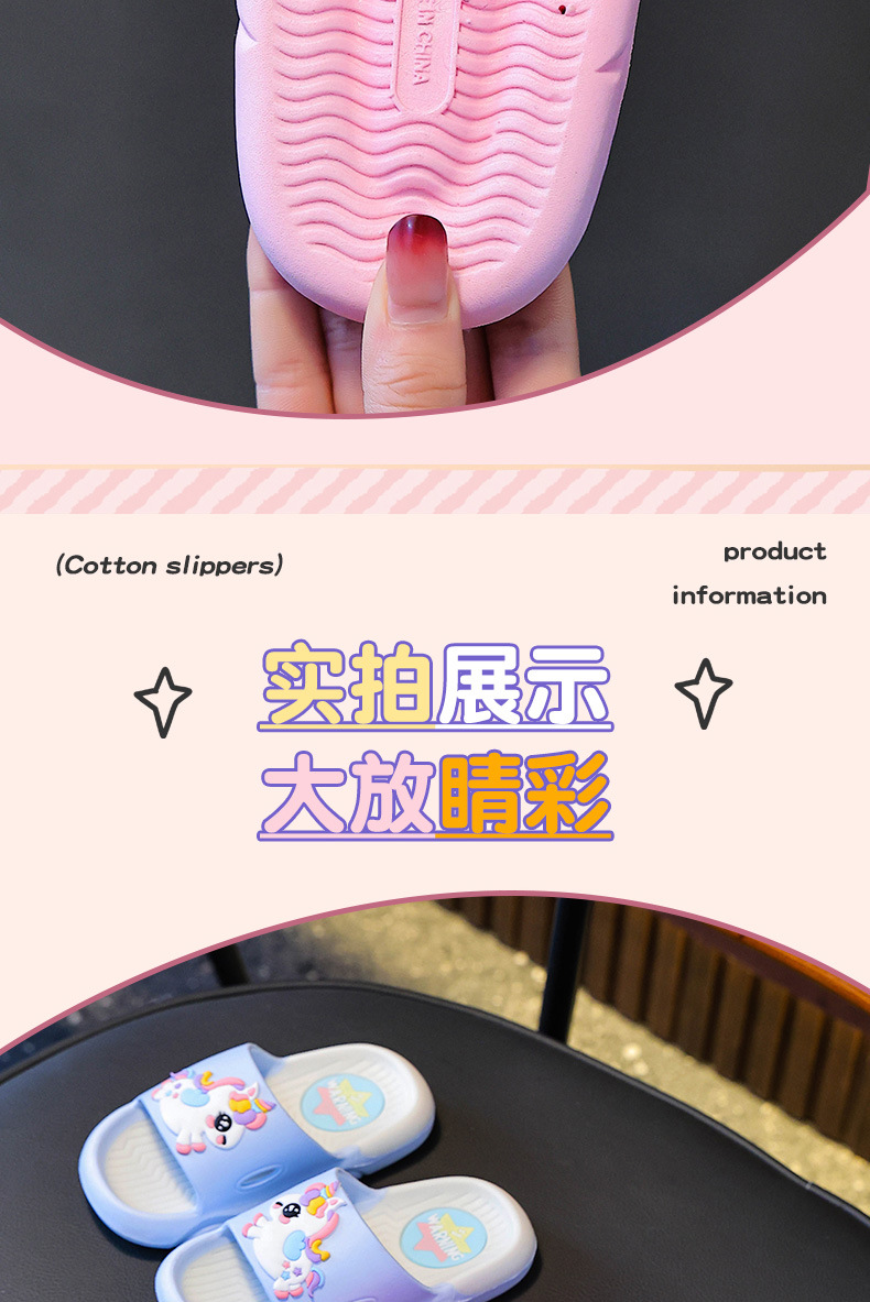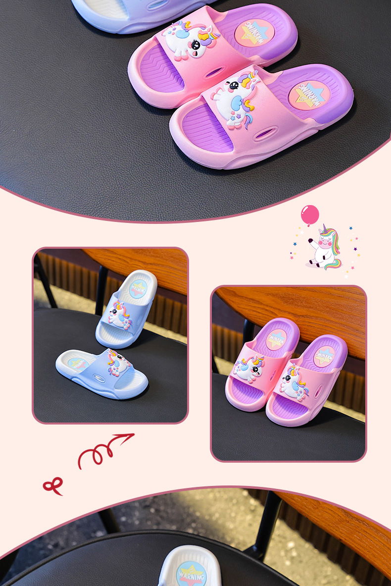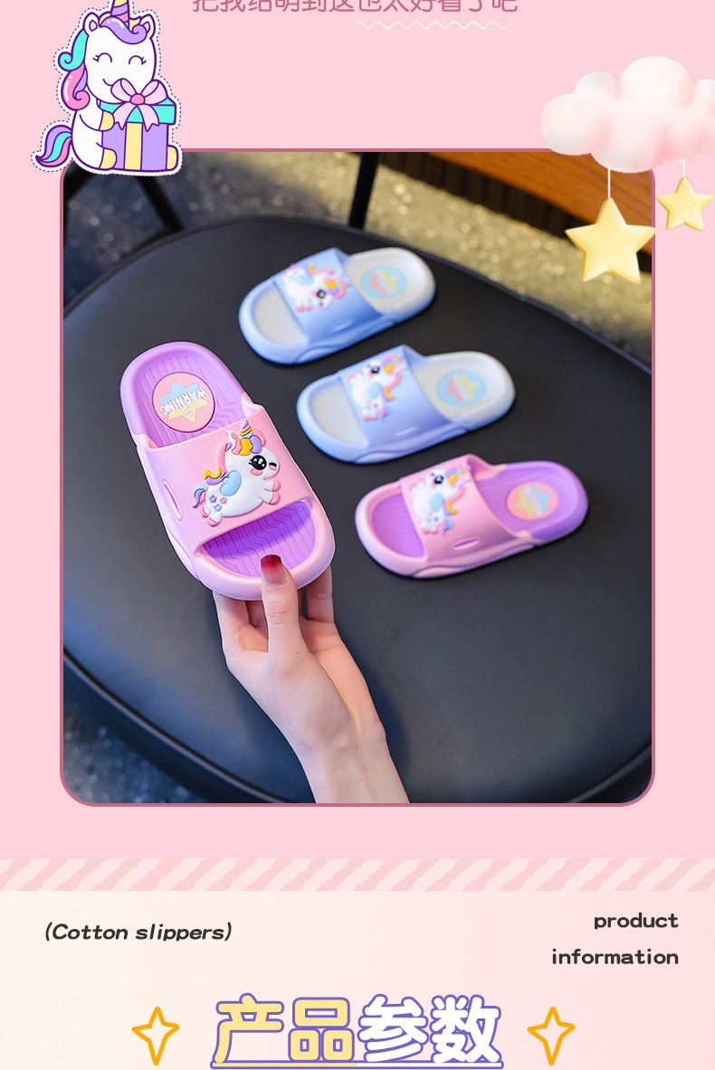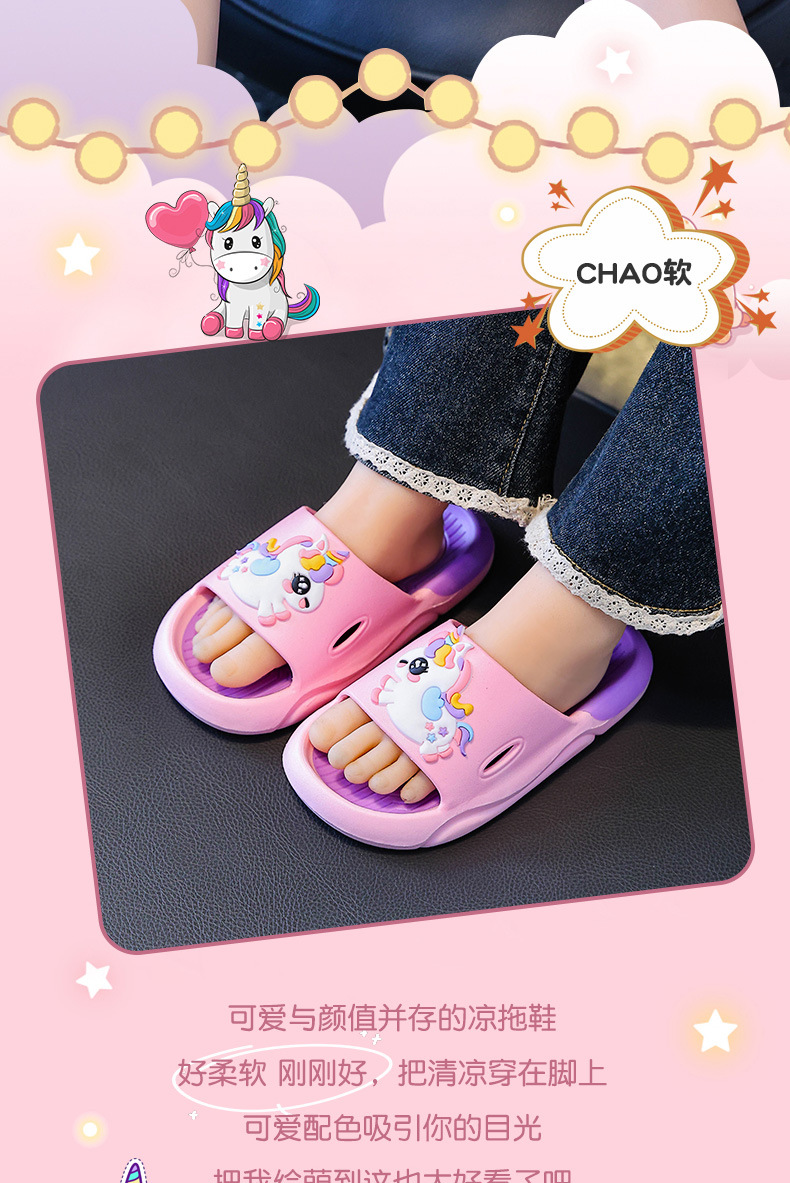 【夏季专属,透气舒适】儿童拖鞋女孩夏季家居室内洗澡防滑卡通独角兽小孩女童宝宝凉拖。xb鞋