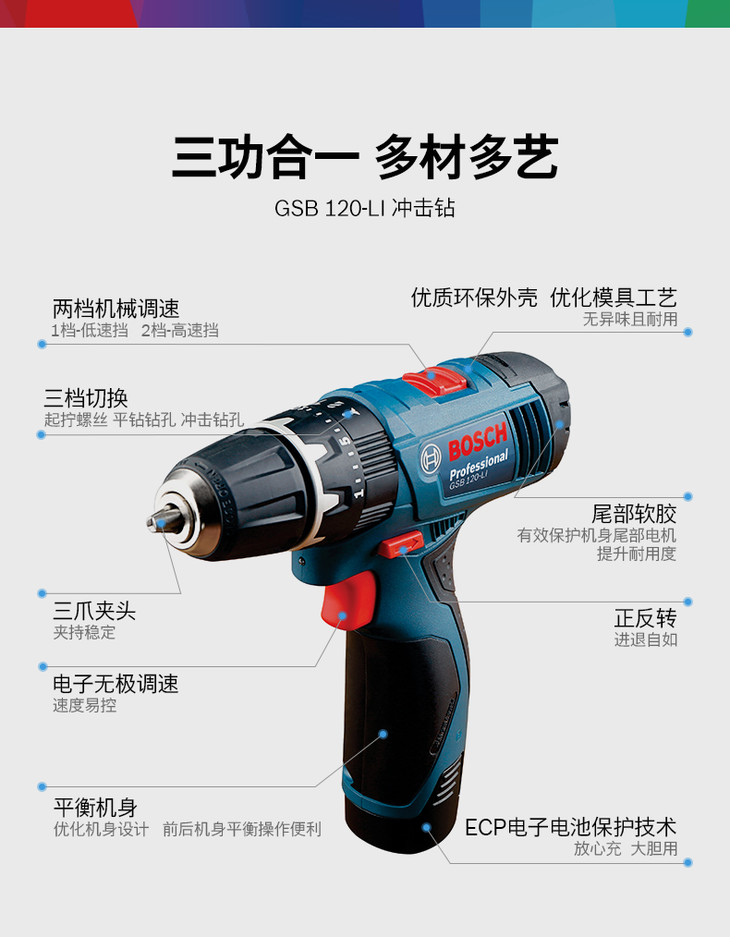 博世(BOSCH)12v锂电冲击钻GSB 120-LI 小黑盒 商品缩略图0