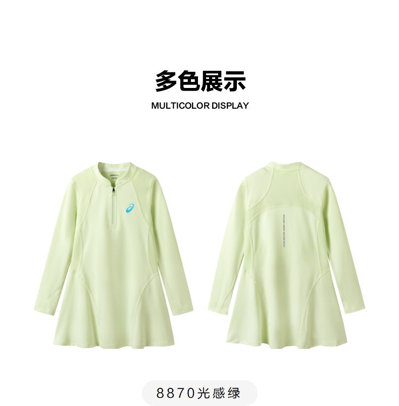 ASICS/亚瑟士2023秋季新品女童针织网布连衣裙舒适吸湿速干线条感