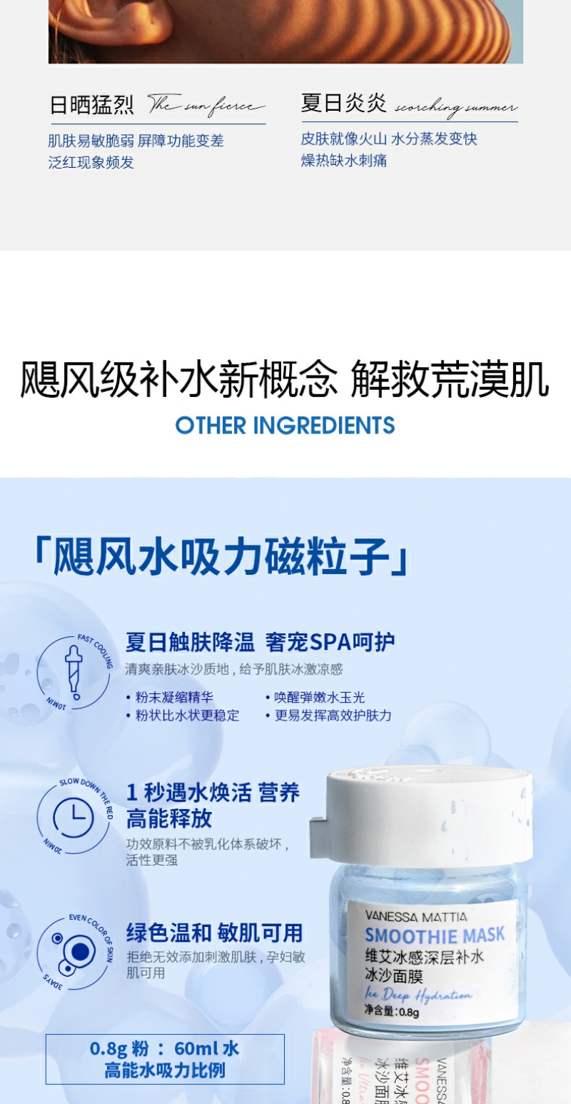 【YZ】VANESSAMATTIA vm维艾冰沙面膜冰感深层补水软膜冰感深层补水软膜嫩颜沁润光透臻润