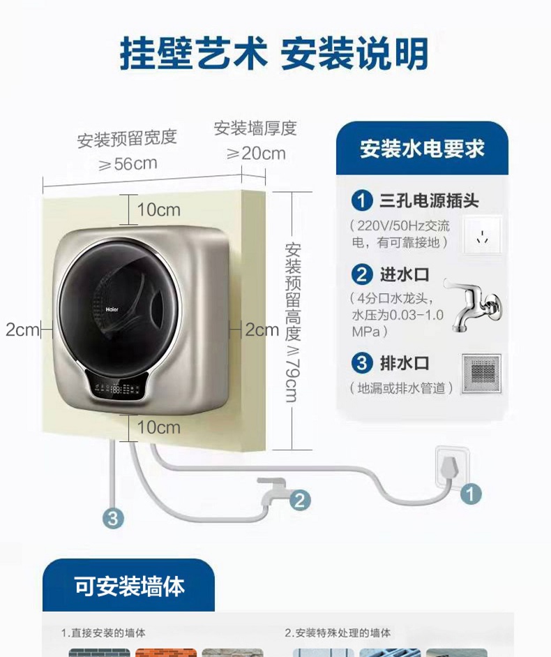 【防跌落】海尔壁挂洗衣机迷你家用全自动婴儿儿童内衣裤717MAX1