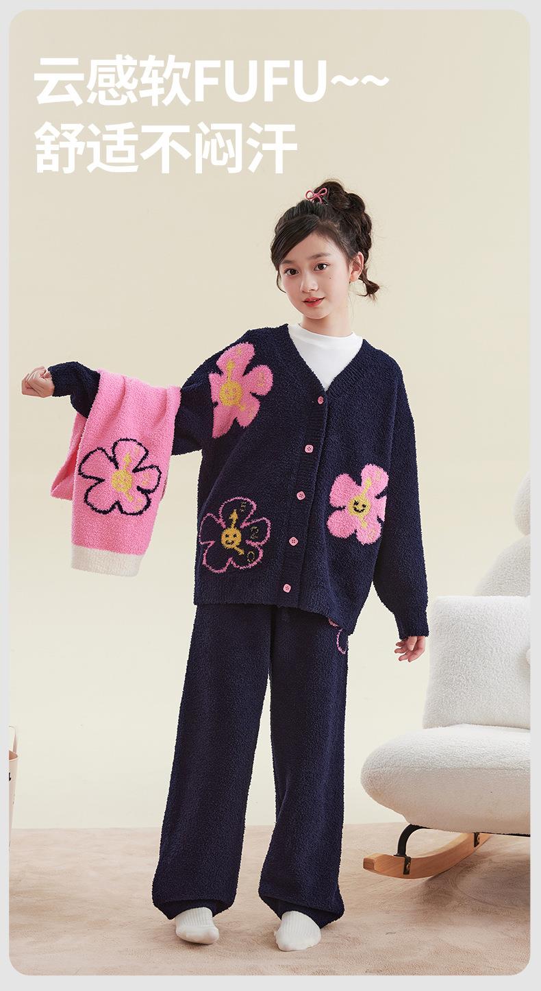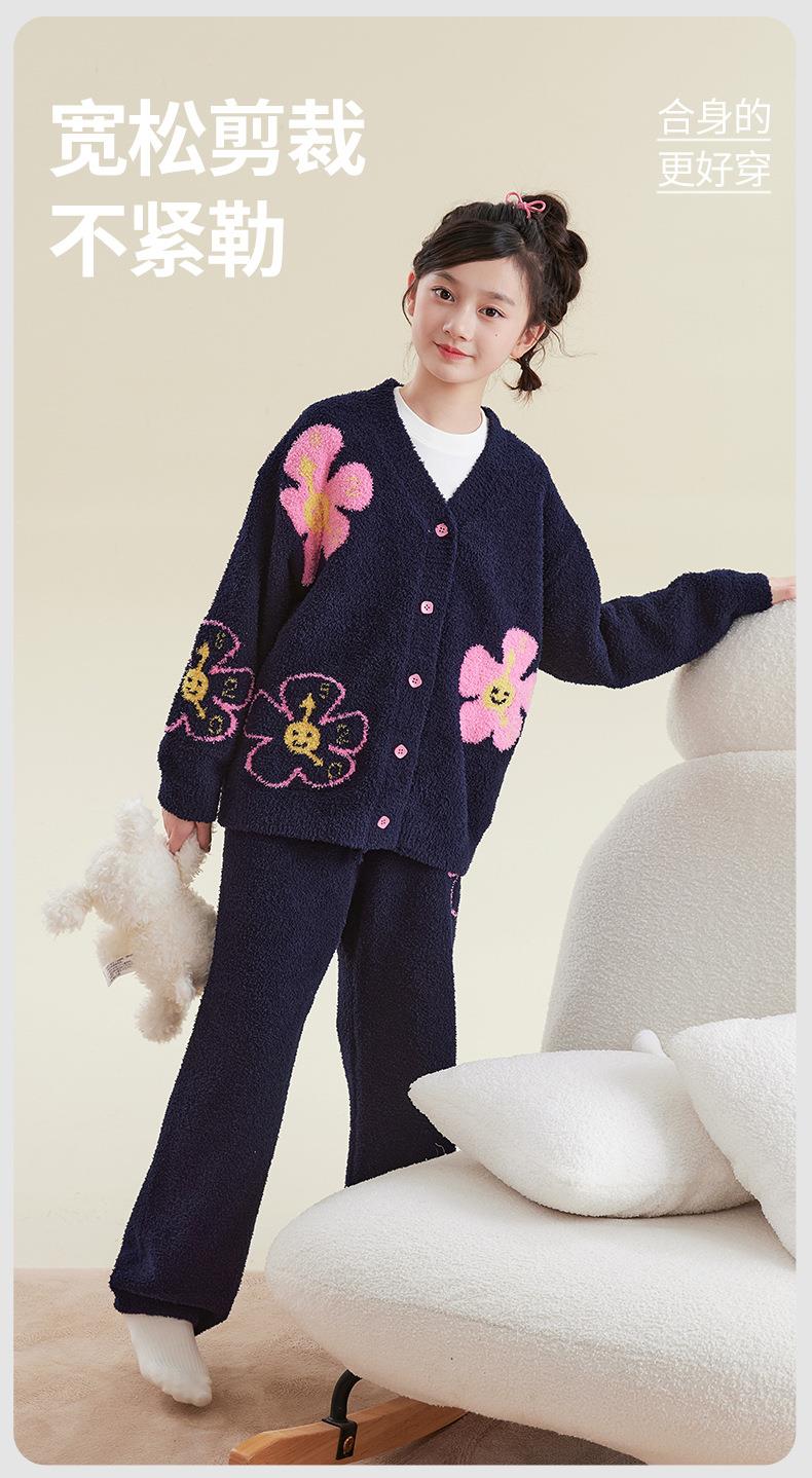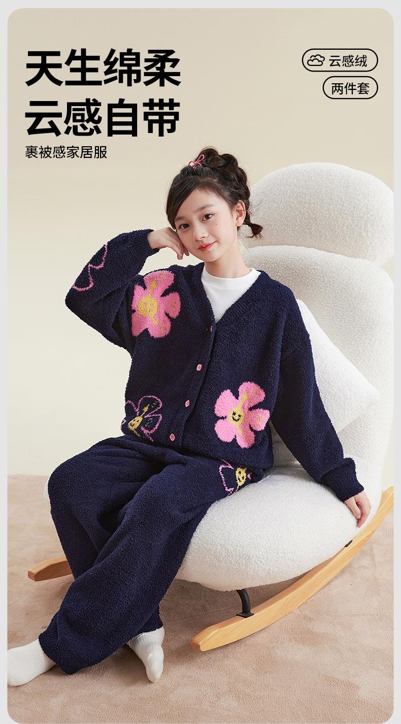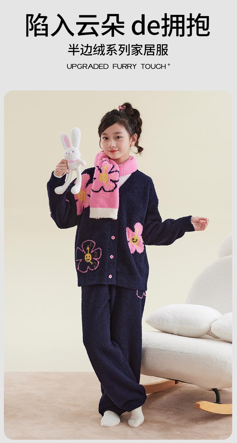 秋冬A类半边绒女童睡衣套装高品质中大童儿童家居服