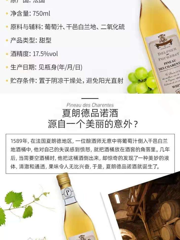 【中欧班列直供】法国葡萄酒 威尼登佰喜夏朗德品诺白葡萄酒750ml/瓶 原装进口