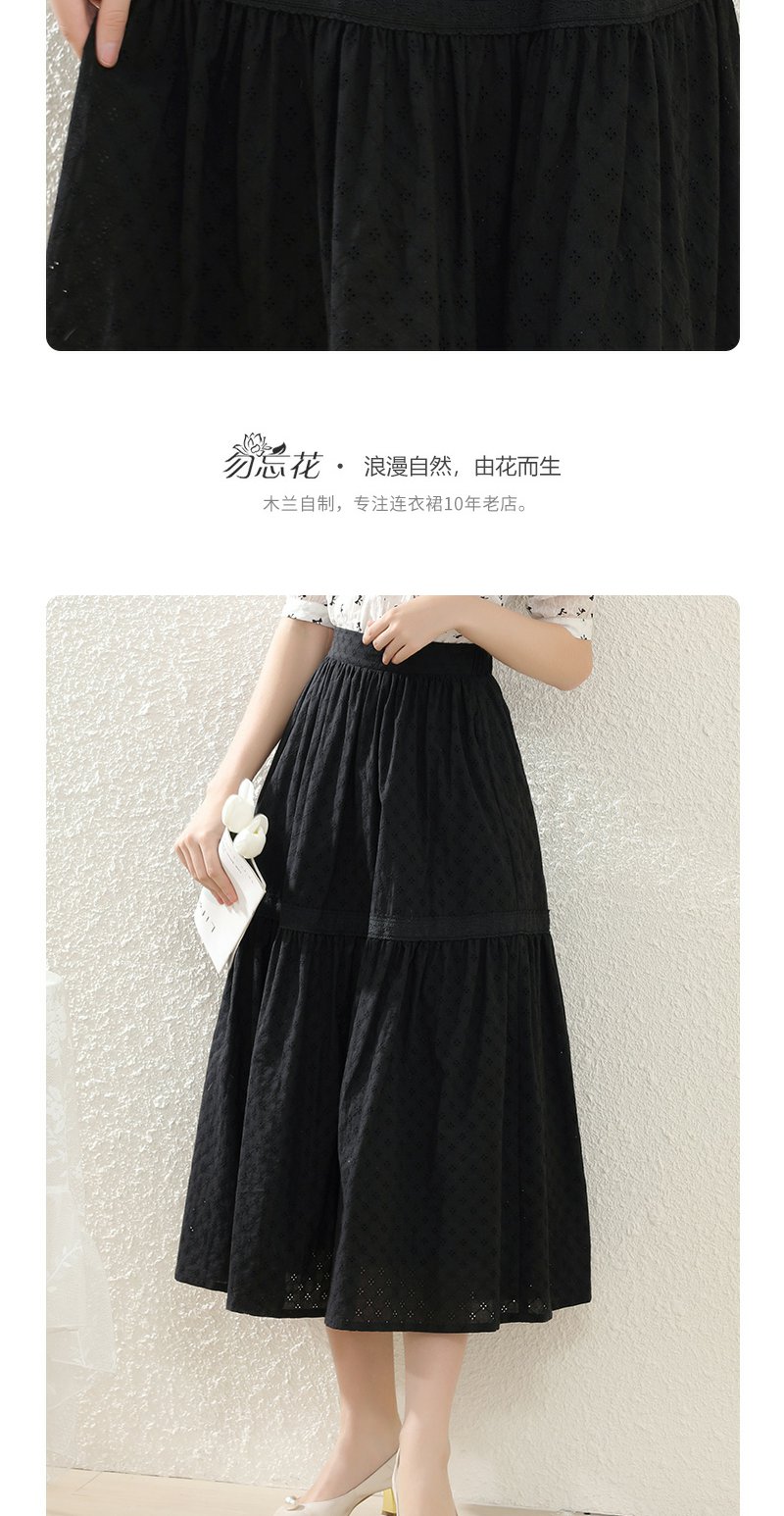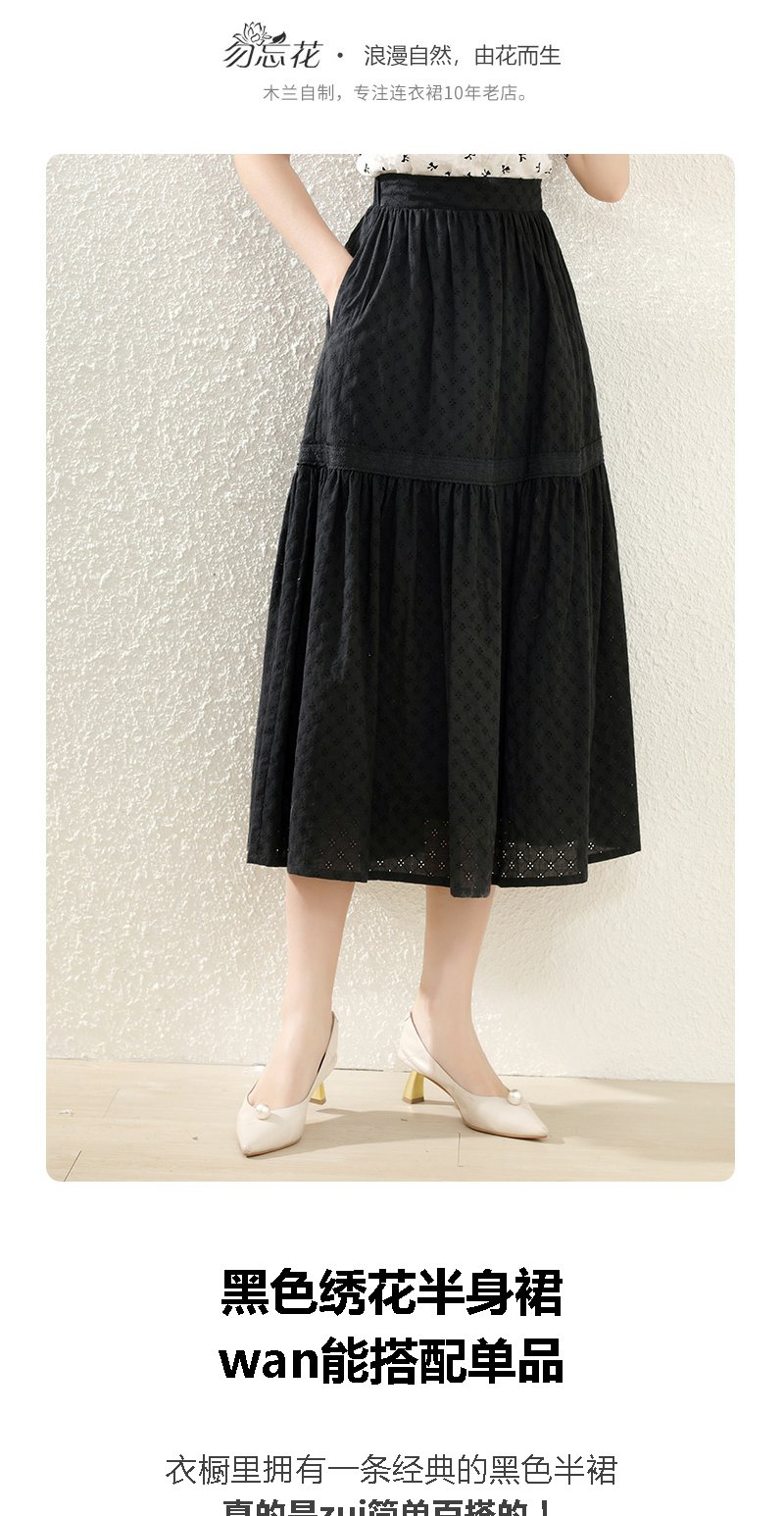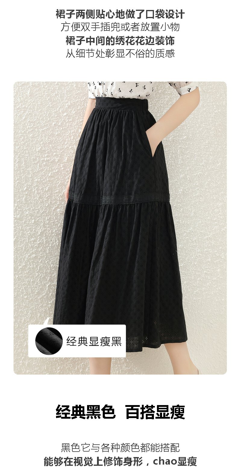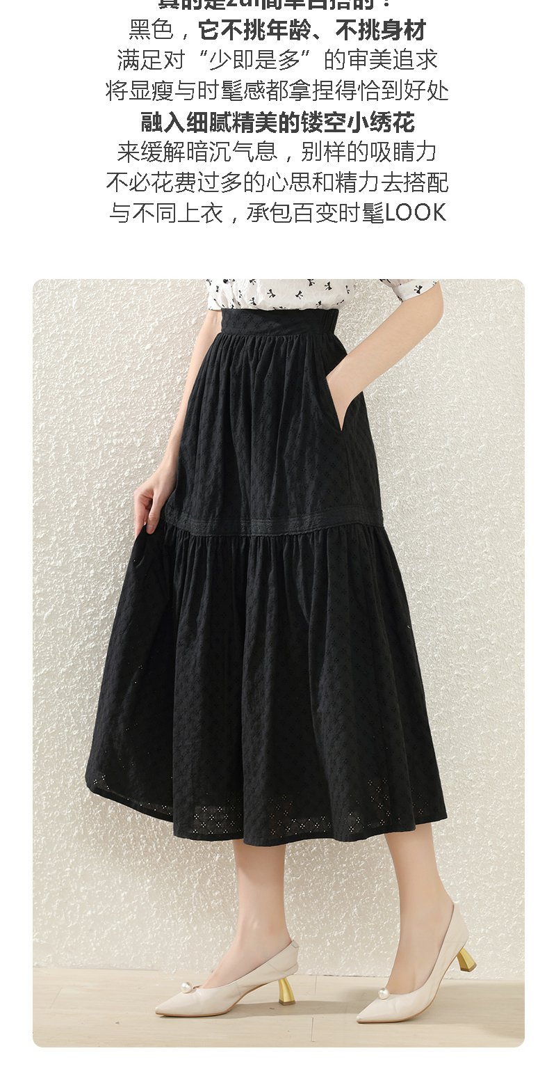 勿忘花黑色气质纯棉百搭半身裙女2024秋季新款休闲显瘦小个子裙子