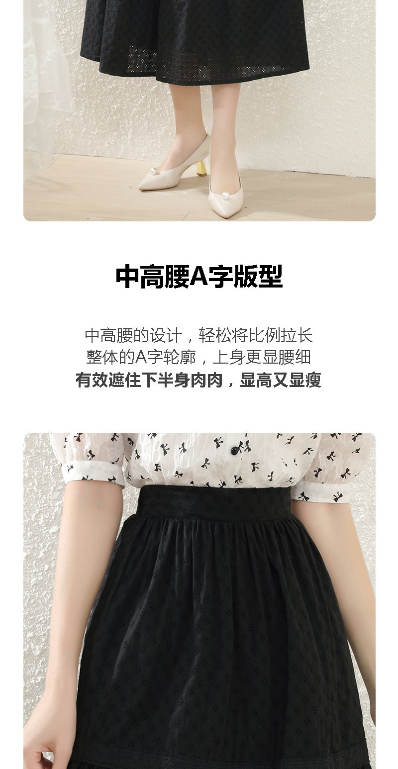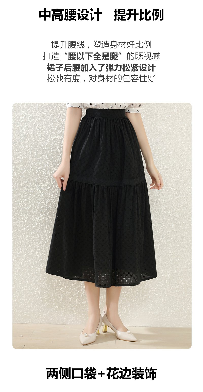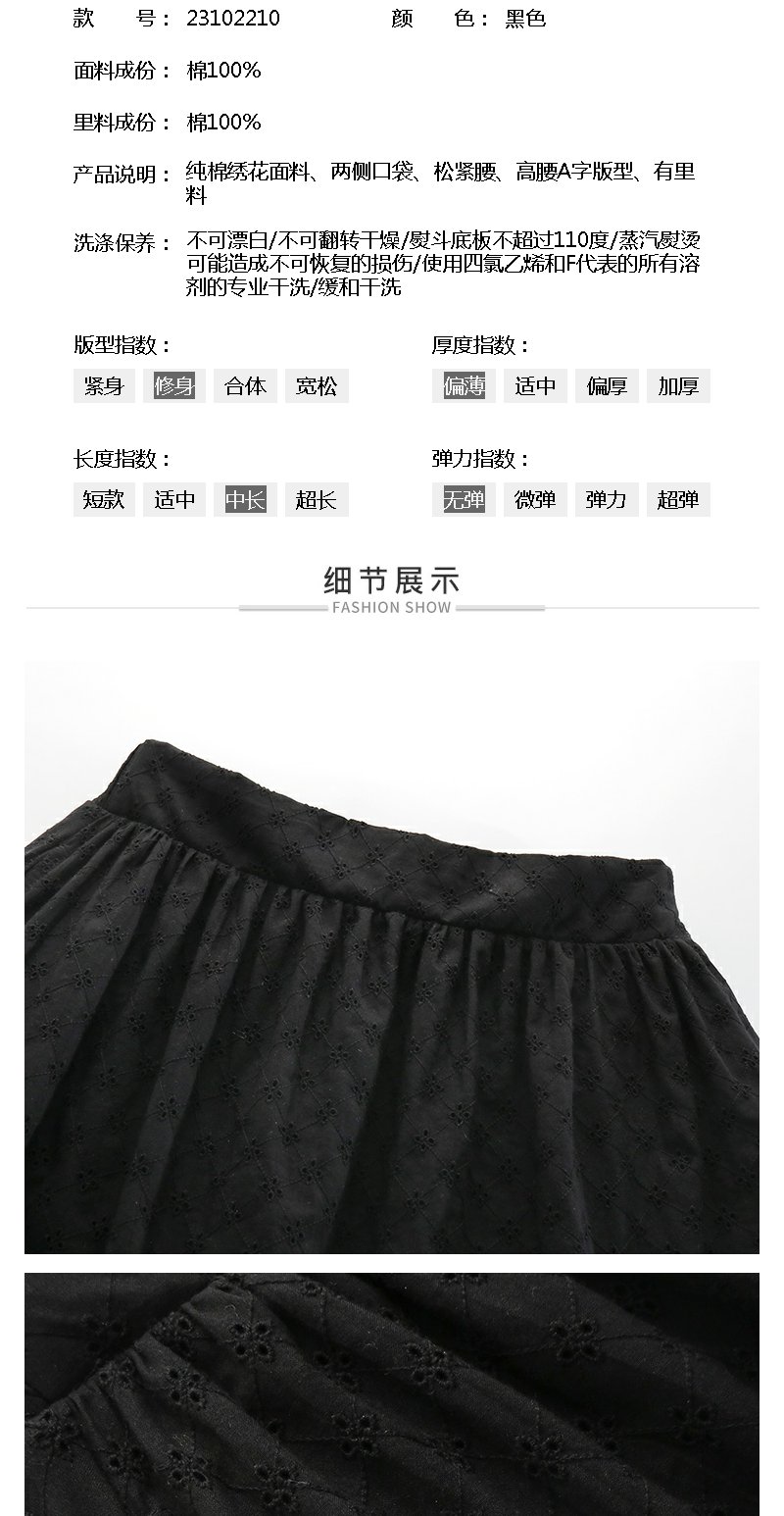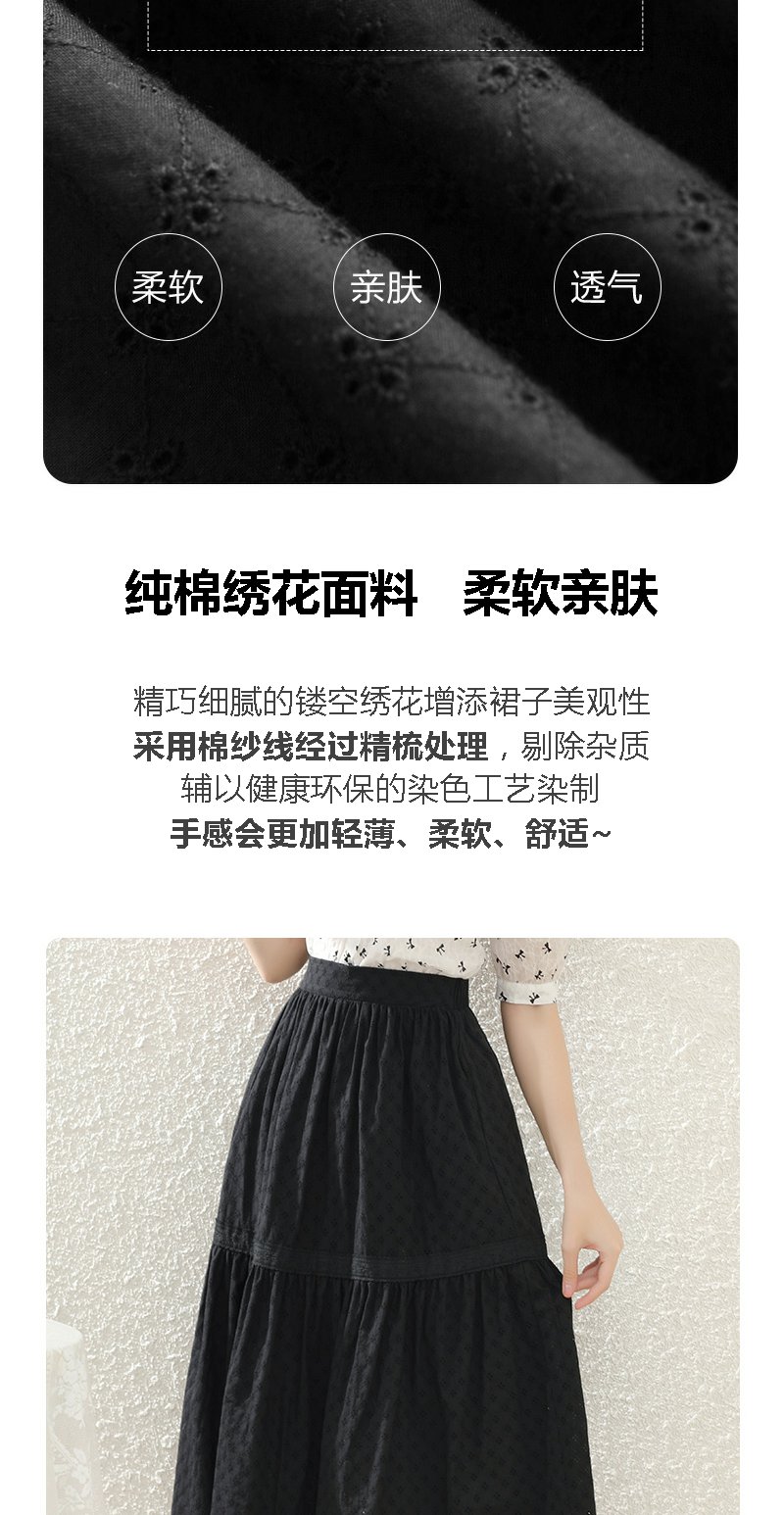 勿忘花黑色气质纯棉百搭半身裙女2024秋季新款休闲显瘦小个子裙子