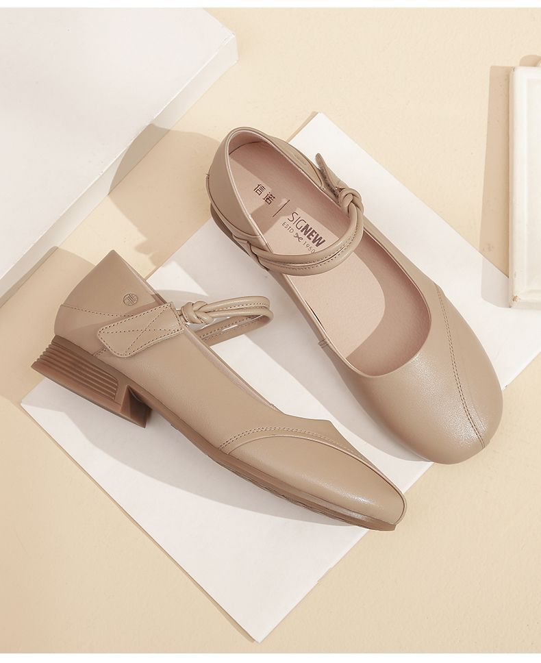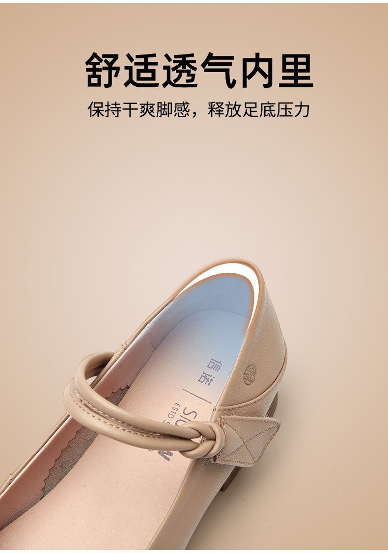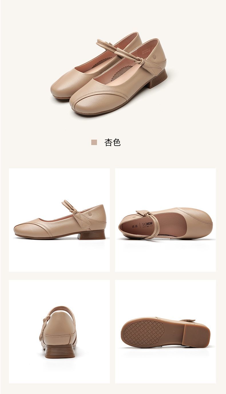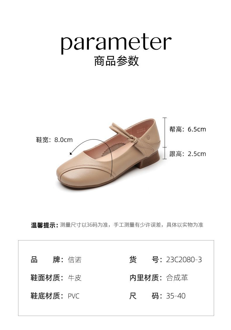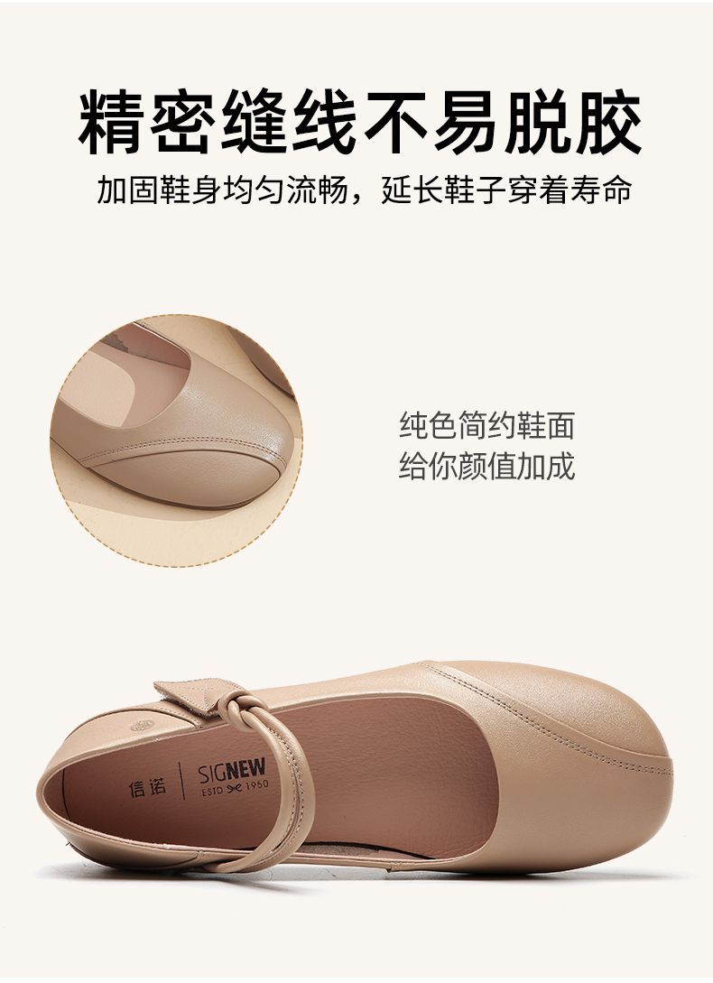 信诺真皮头层牛皮2023春夏新款圆头文艺单鞋舒适方根增高妈妈鞋23C2080-3
