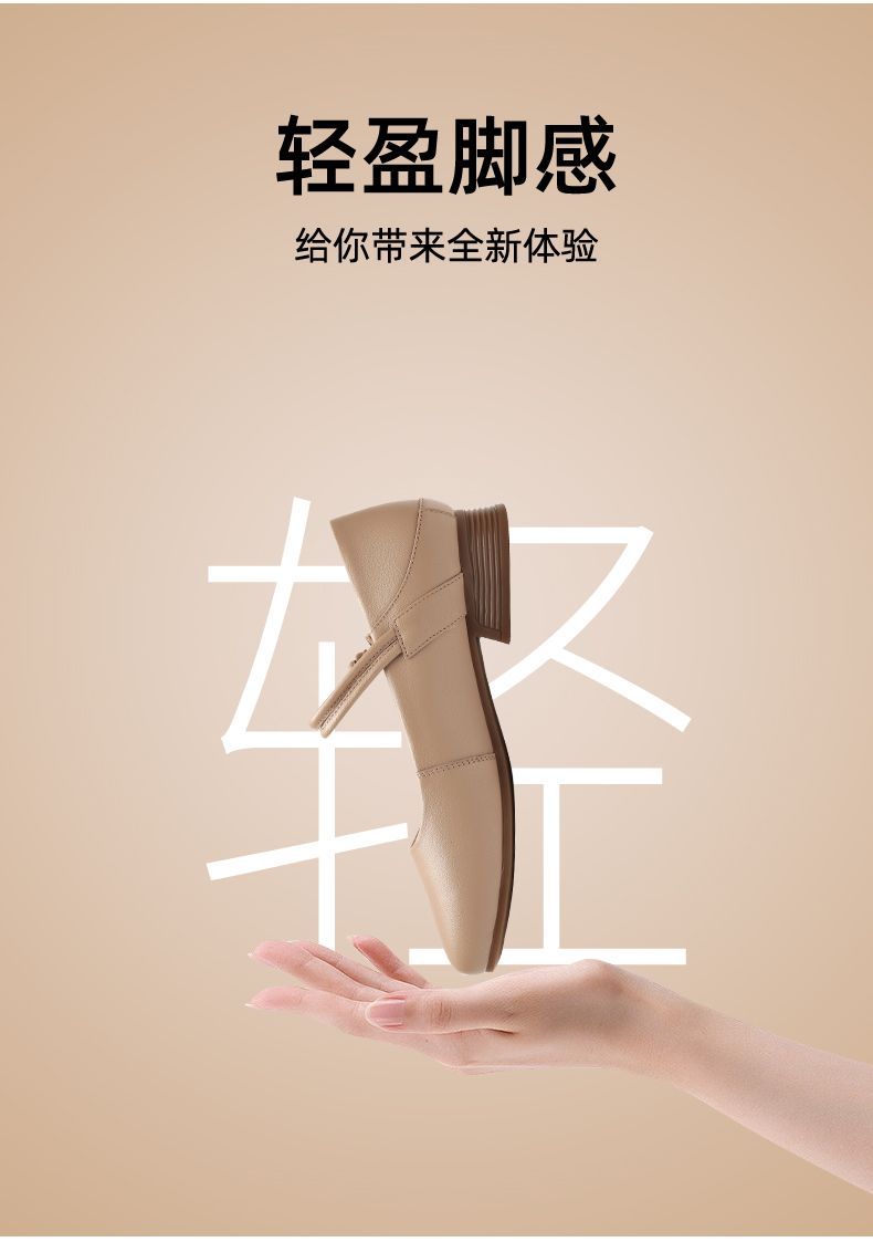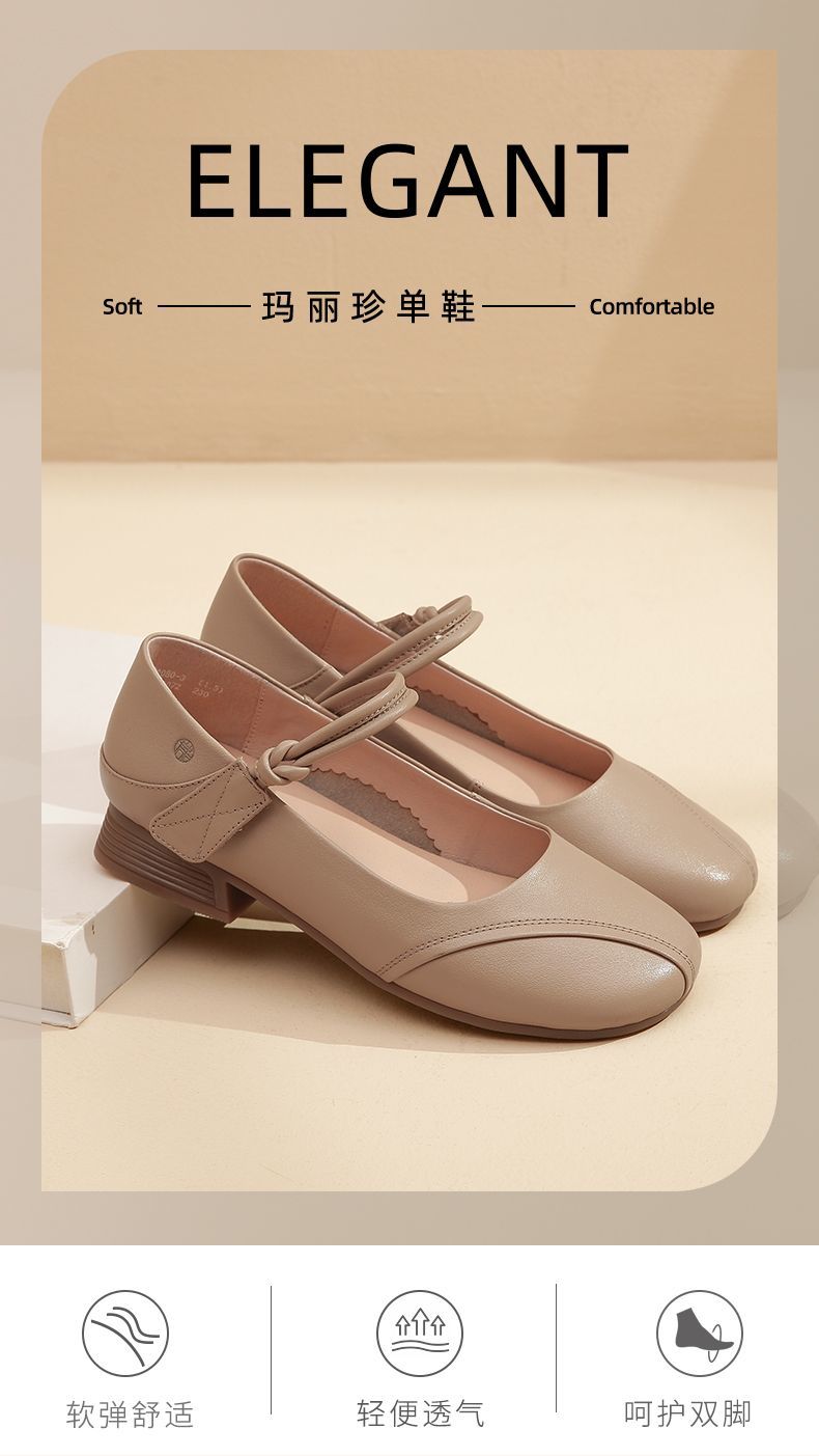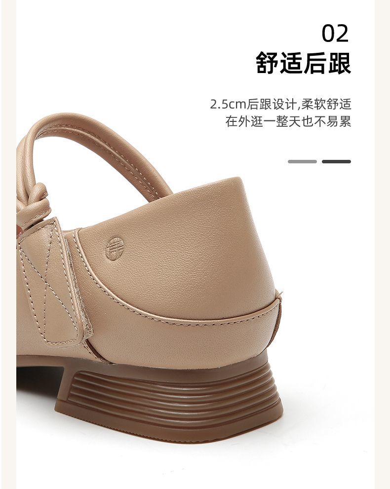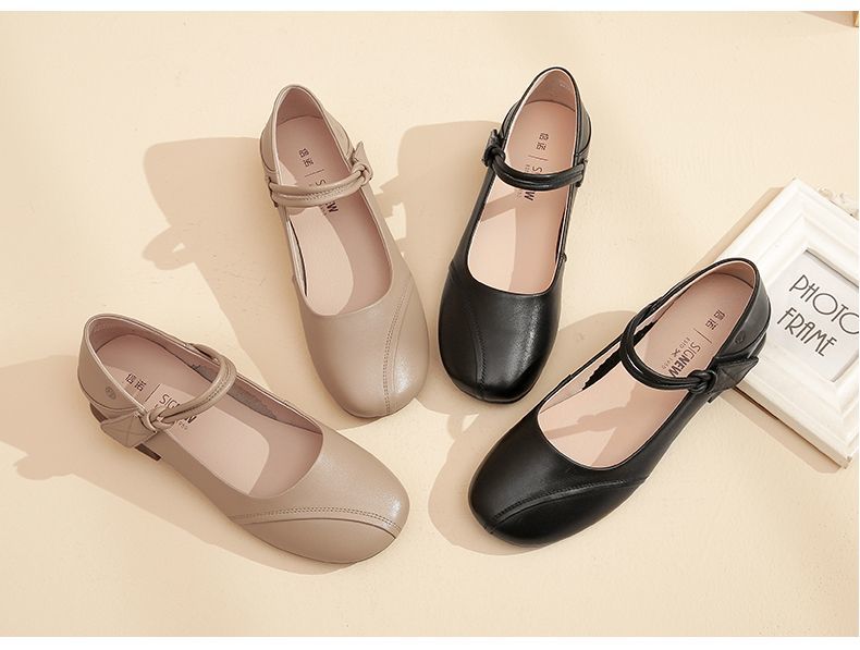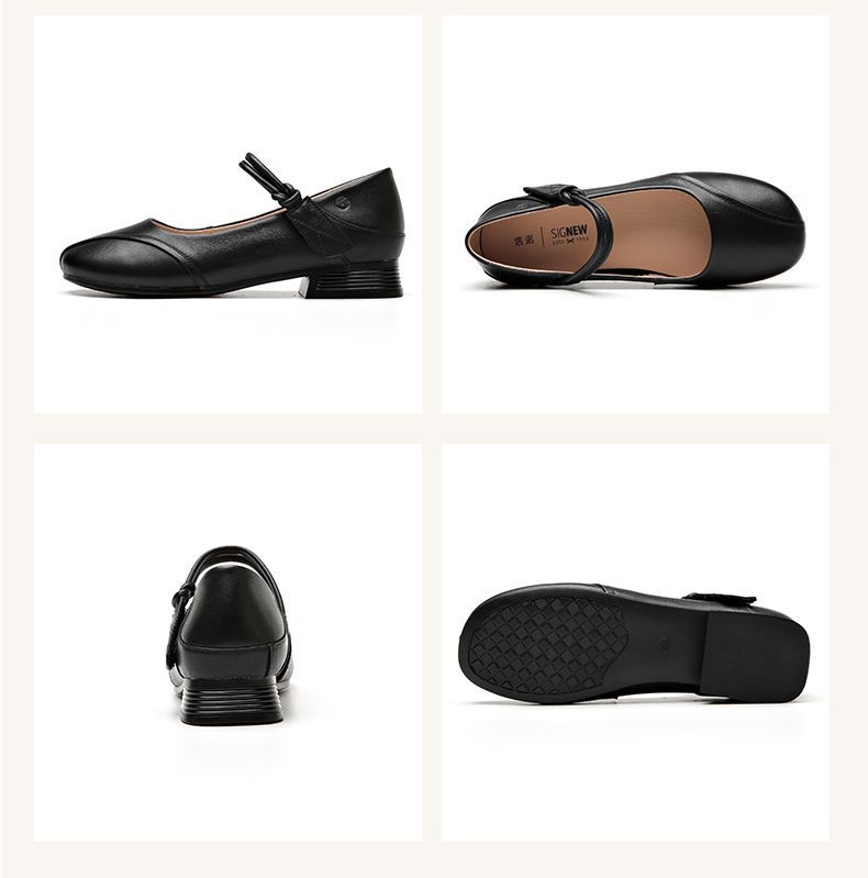 信诺真皮头层牛皮2023春夏新款圆头文艺单鞋舒适方根增高妈妈鞋23C2080-3