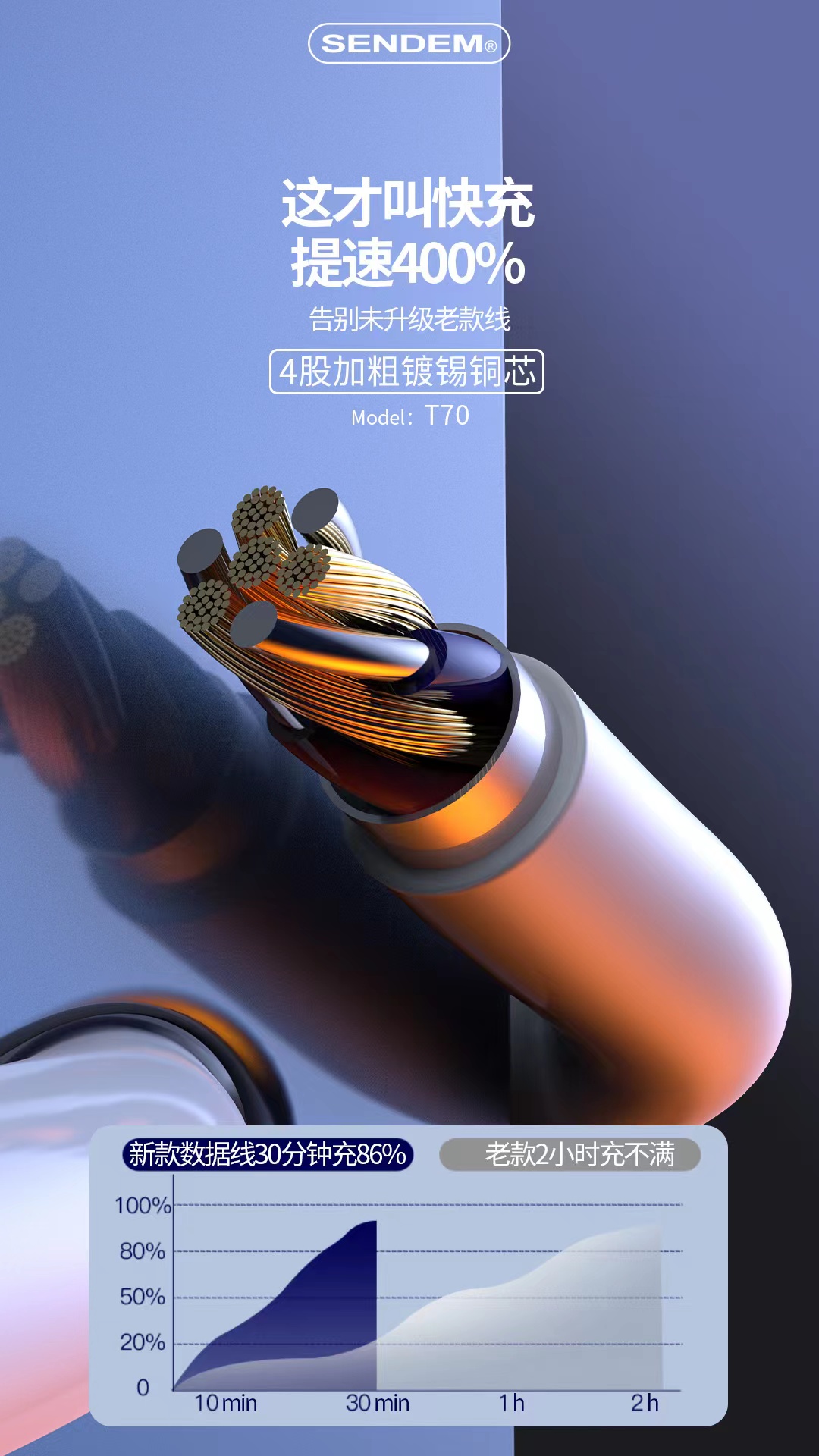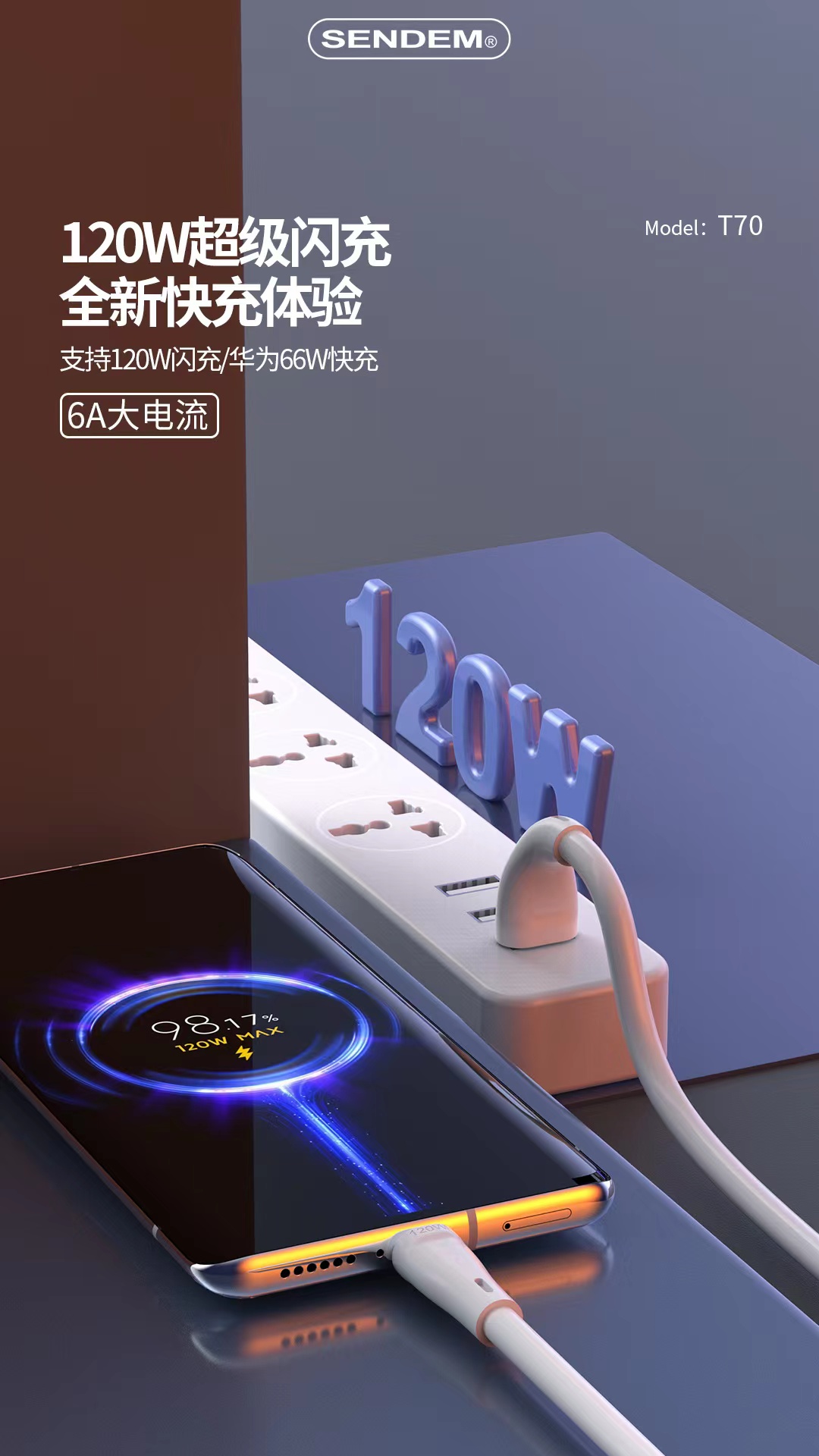 (特价)120w加粗蟒蛇线快充闪充新升级防断设计智能通用