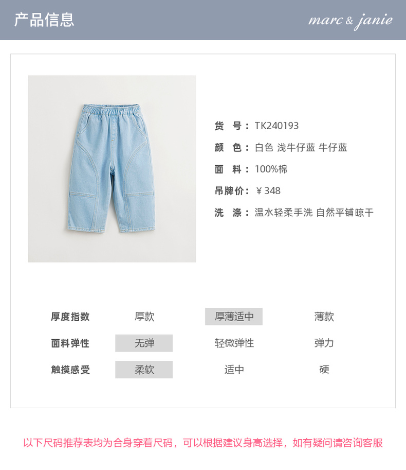 马克珍妮男童分割拼接牛仔裤气球裤儿童纯棉萝卜裤春款裤子240193