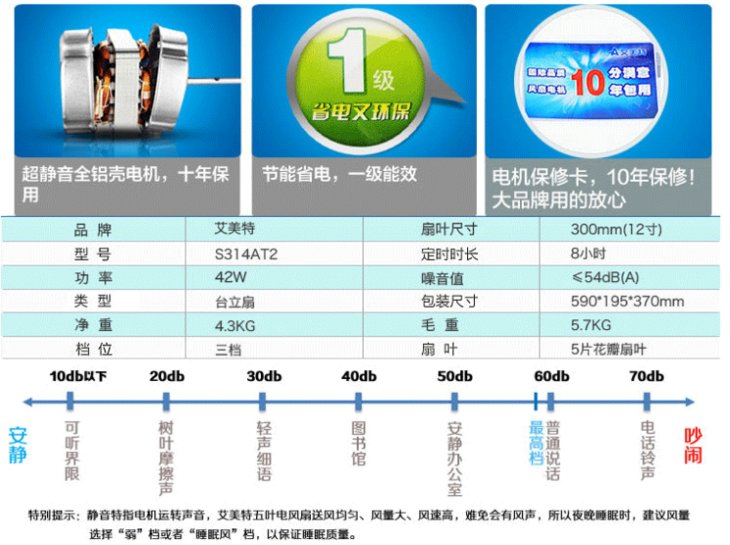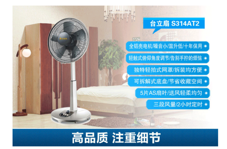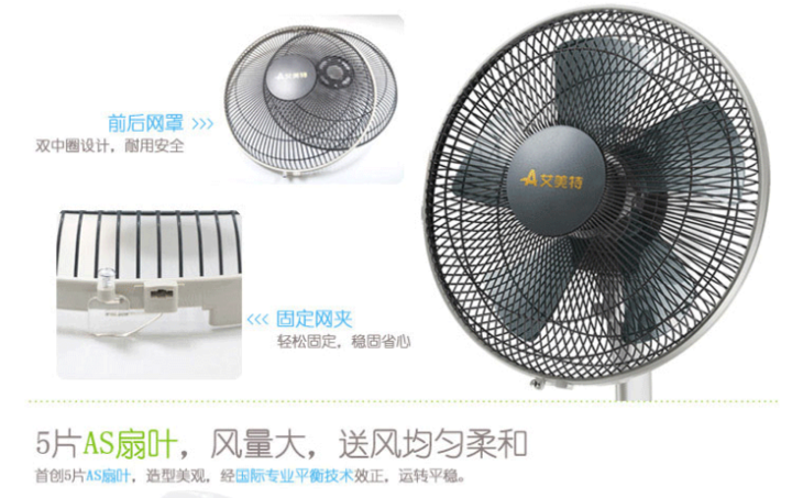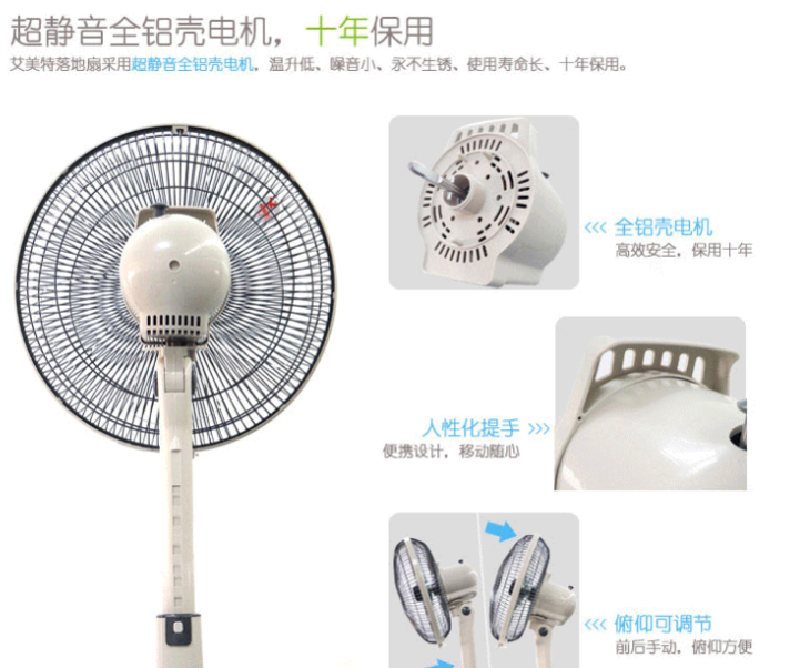 艾美特(550211)电风扇落地台立扇S314AT2静音升降台扇5叶扇12寸