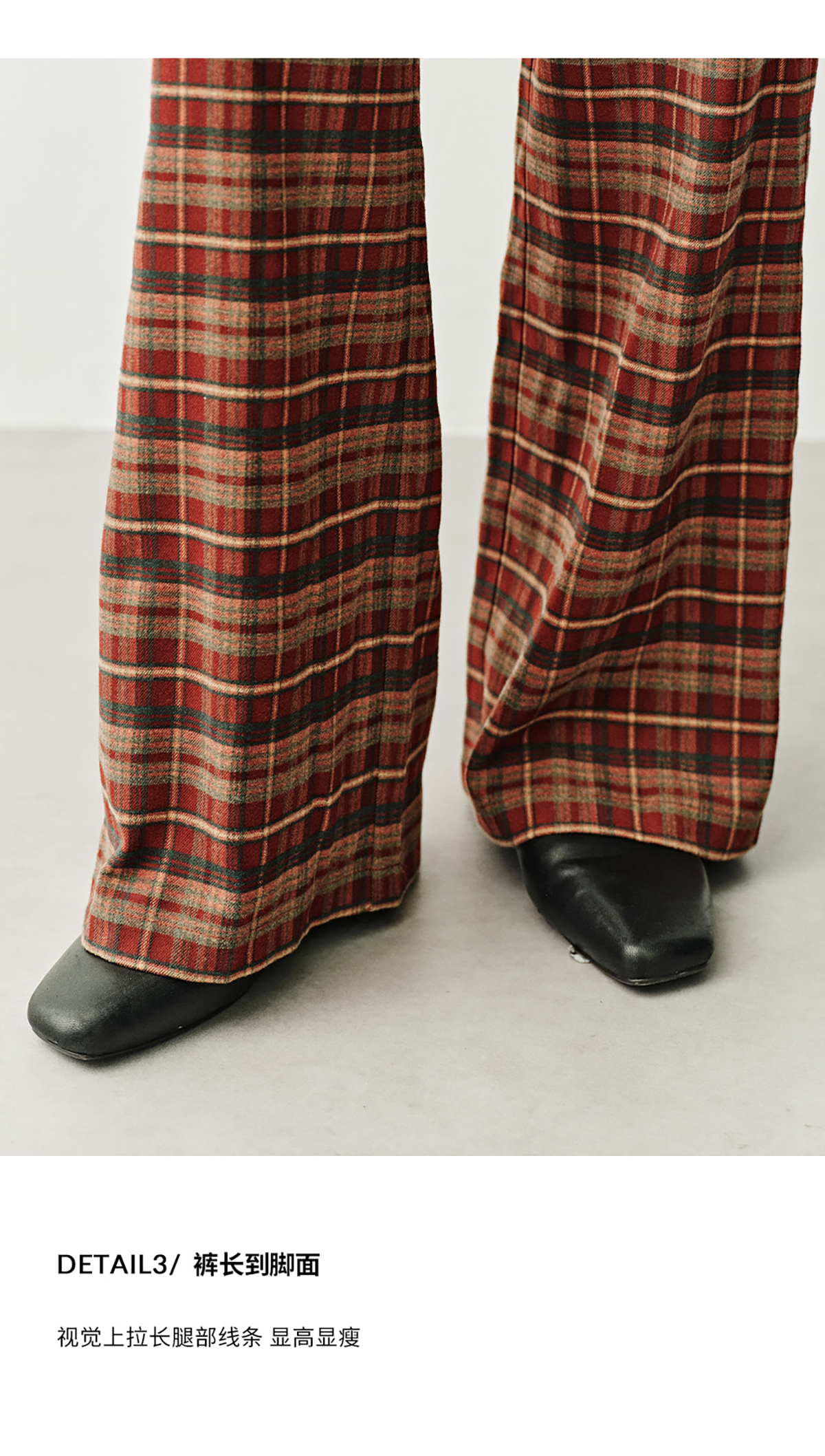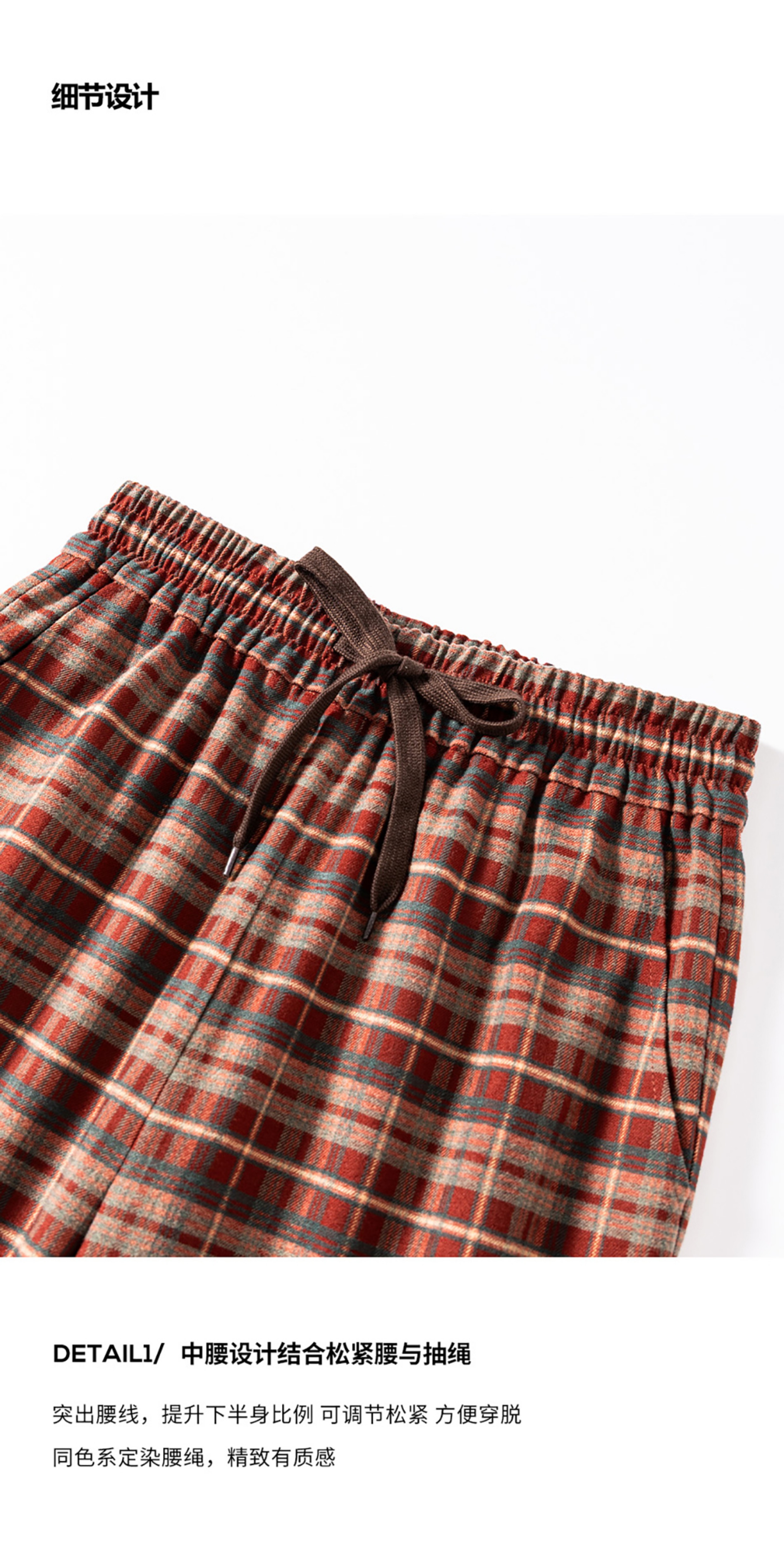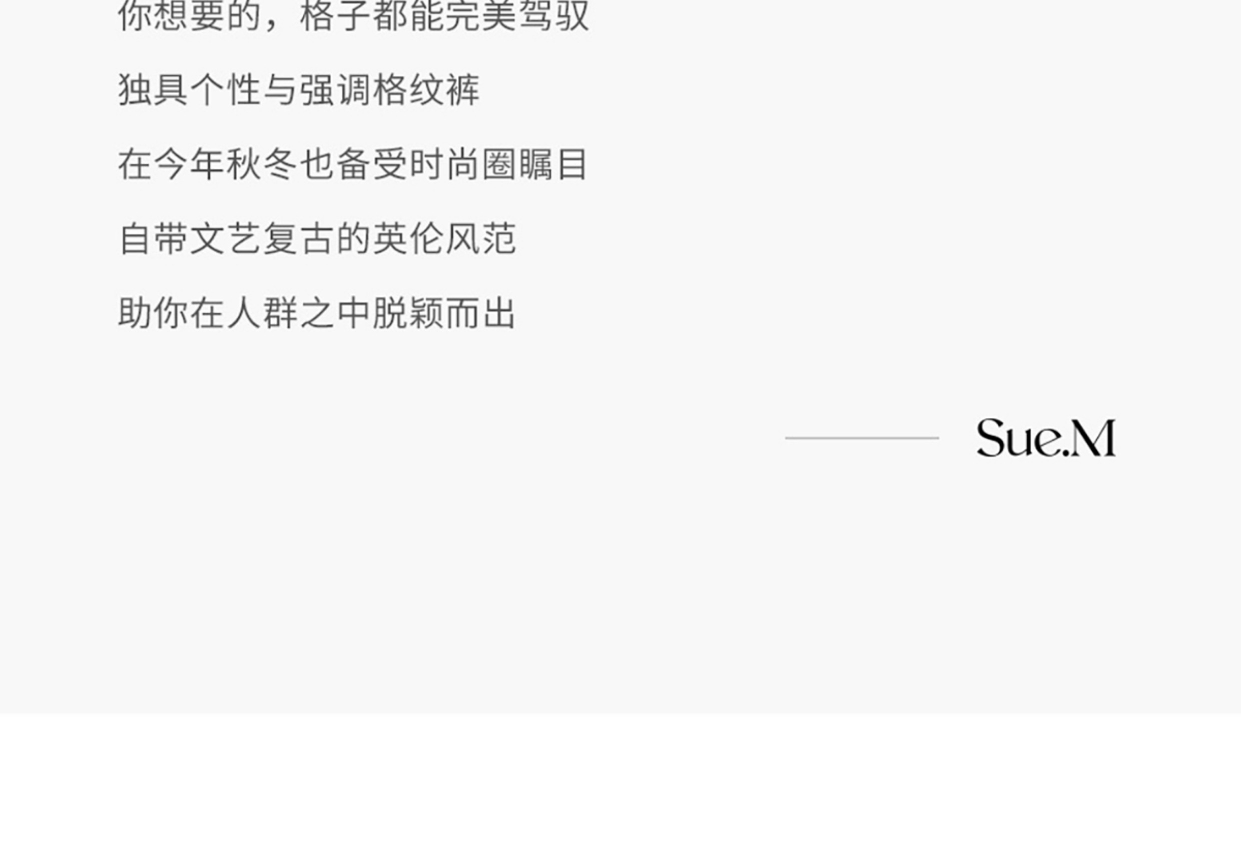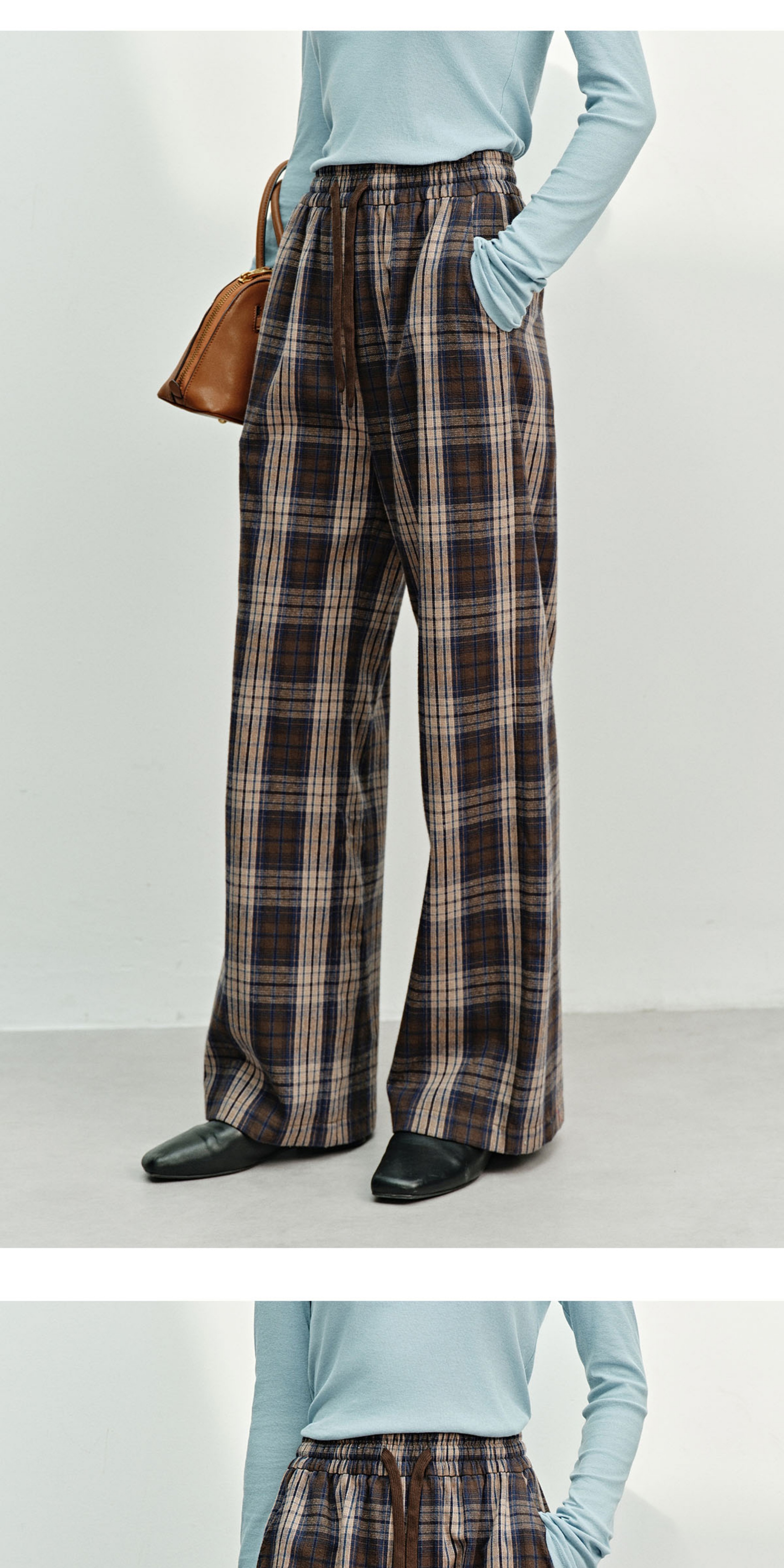Sue.M 经典时髦磨毛格子裤25秋 双色纱线抽绳松紧腰宽松阔腿裤女