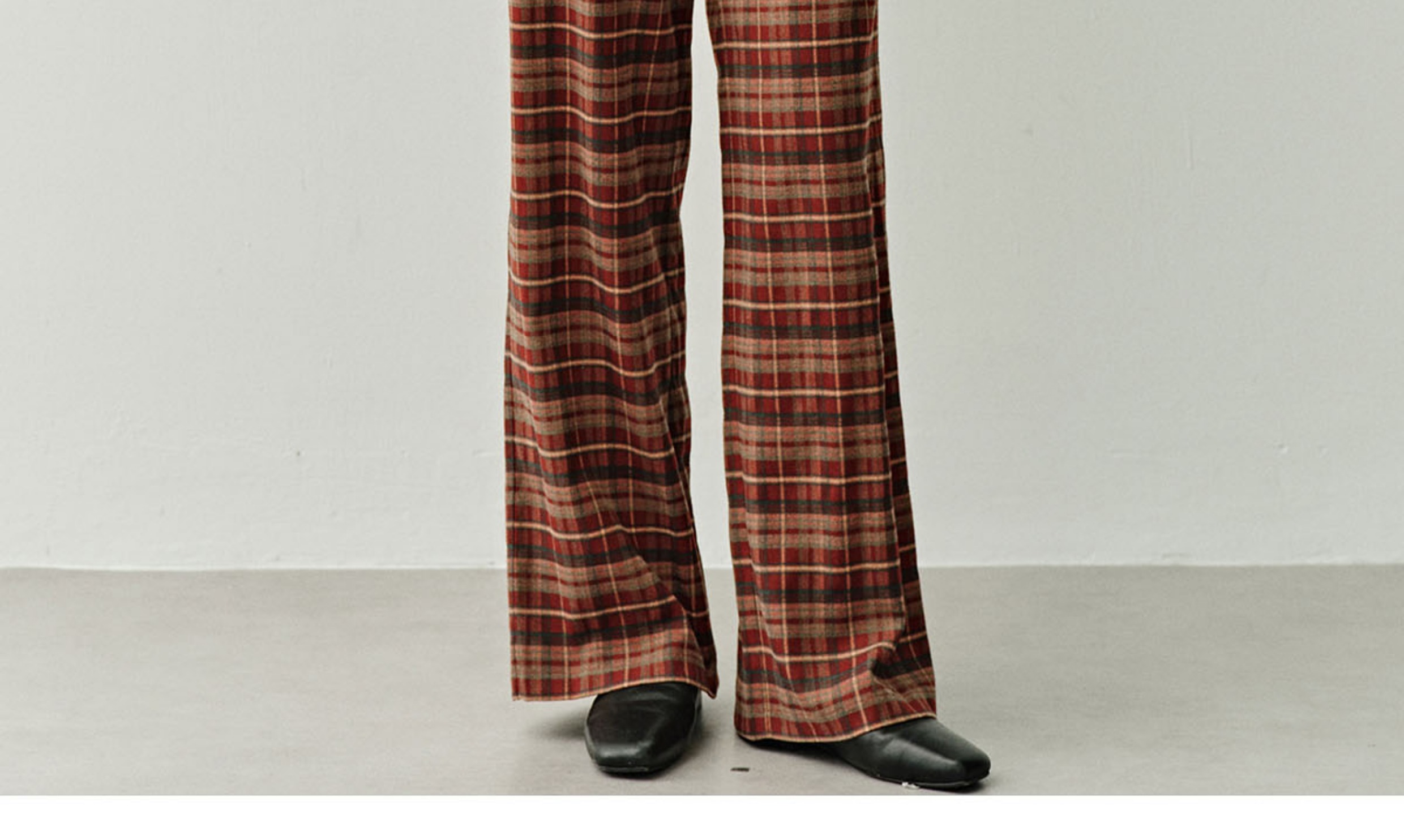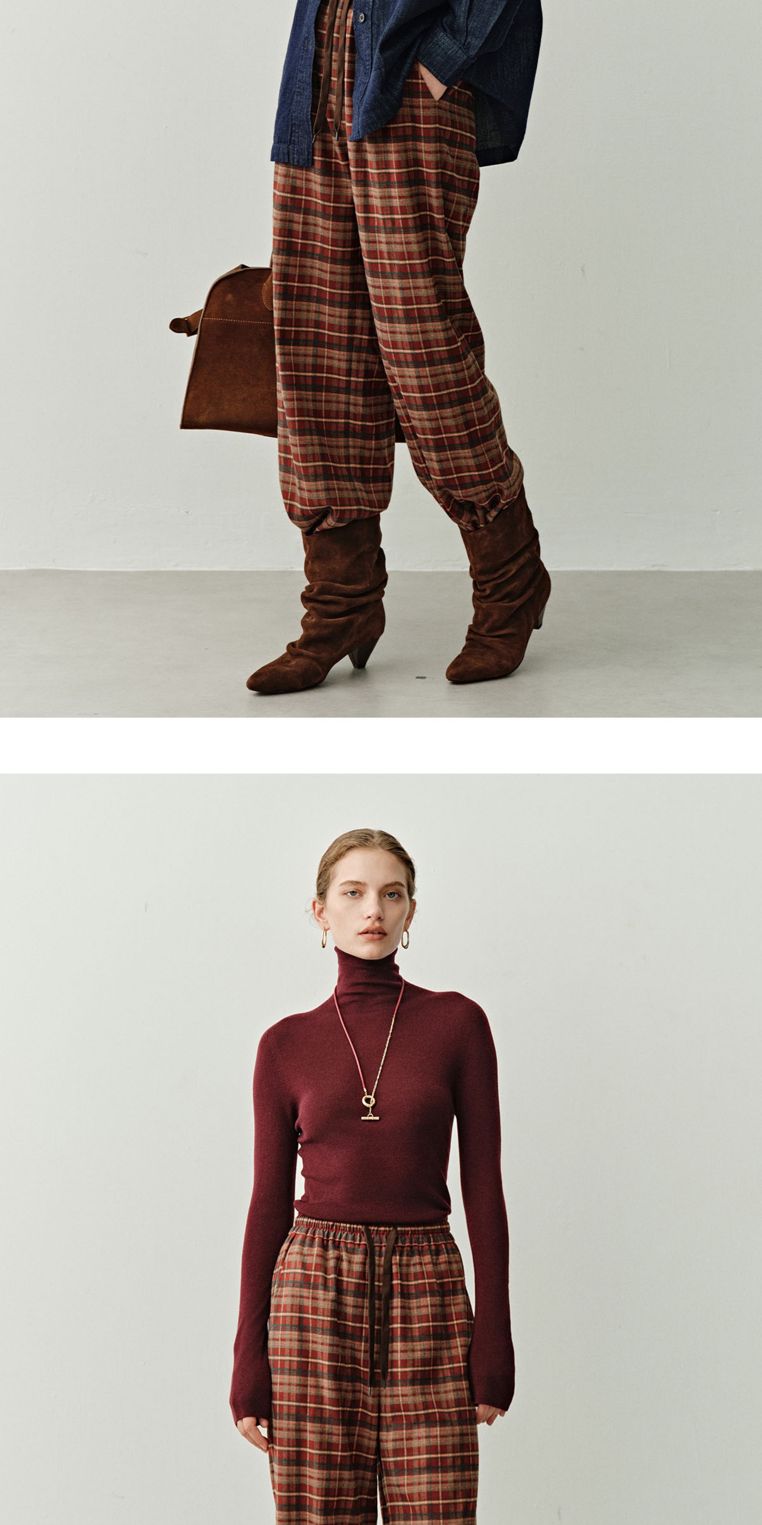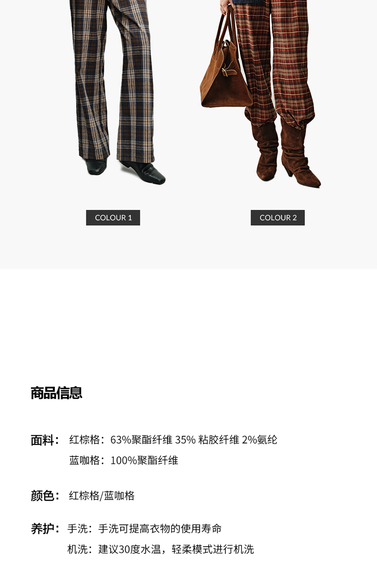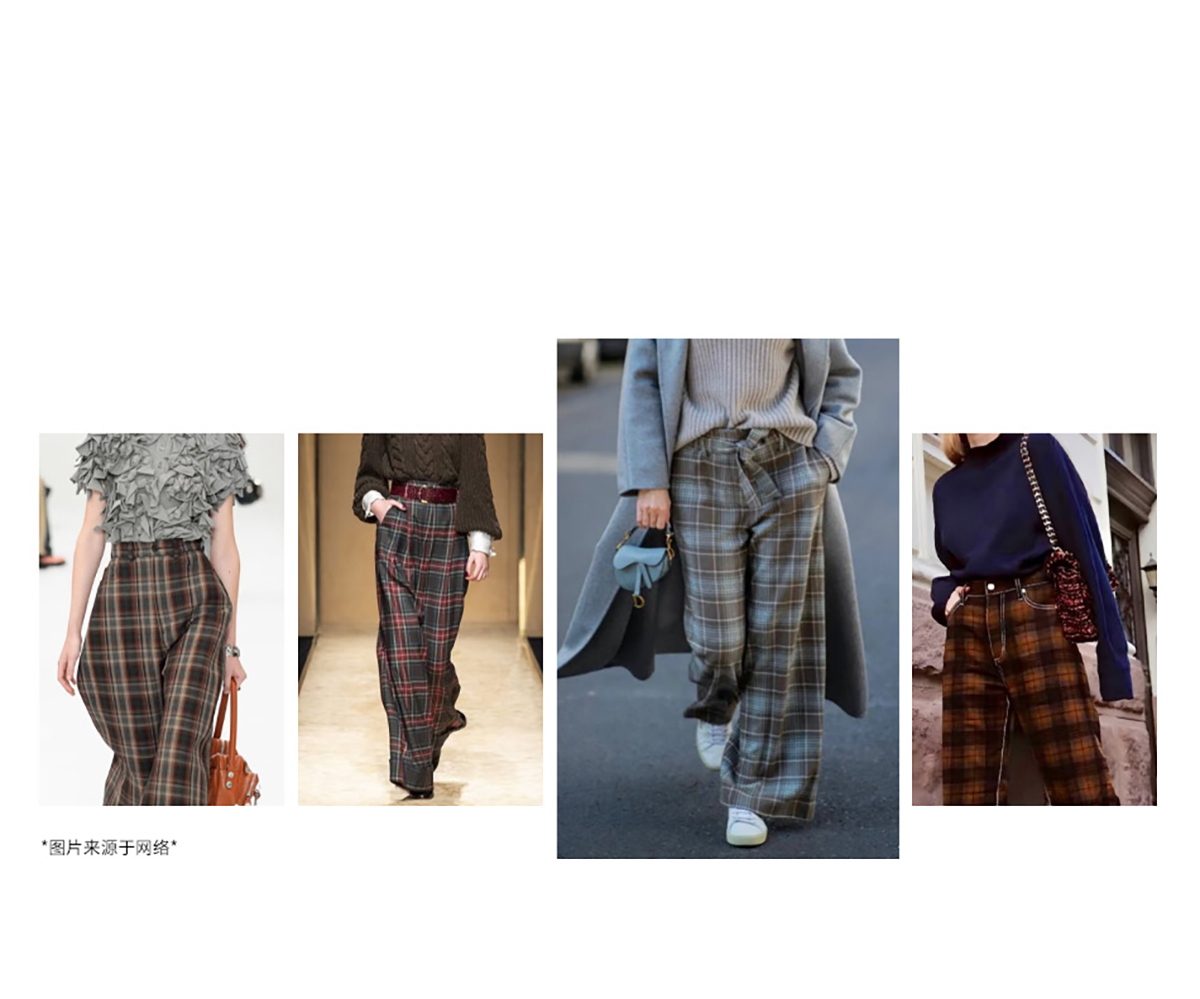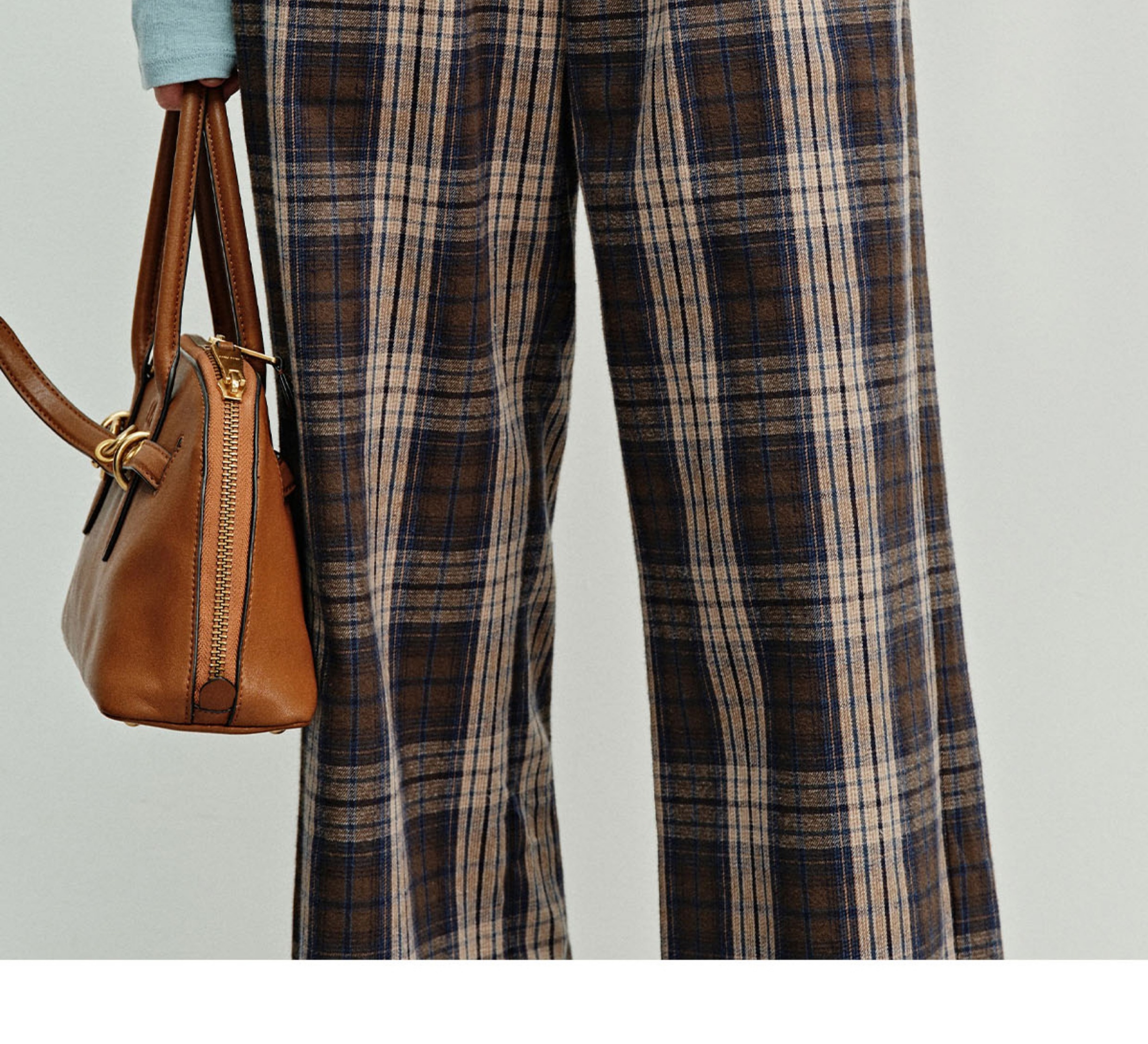 Sue.M 经典时髦磨毛格子裤25秋 双色纱线抽绳松紧腰宽松阔腿裤女