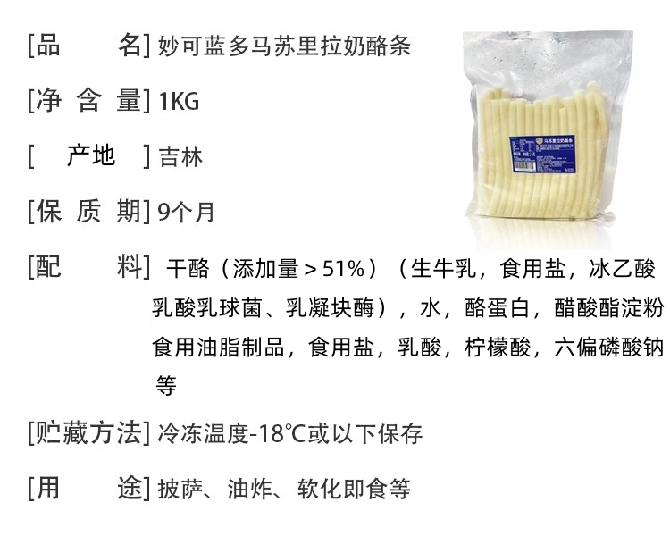 1kg 妙可蓝多 马苏里拉奶酪条 芝心披萨拉丝卷边热狗芝士条芝士棒