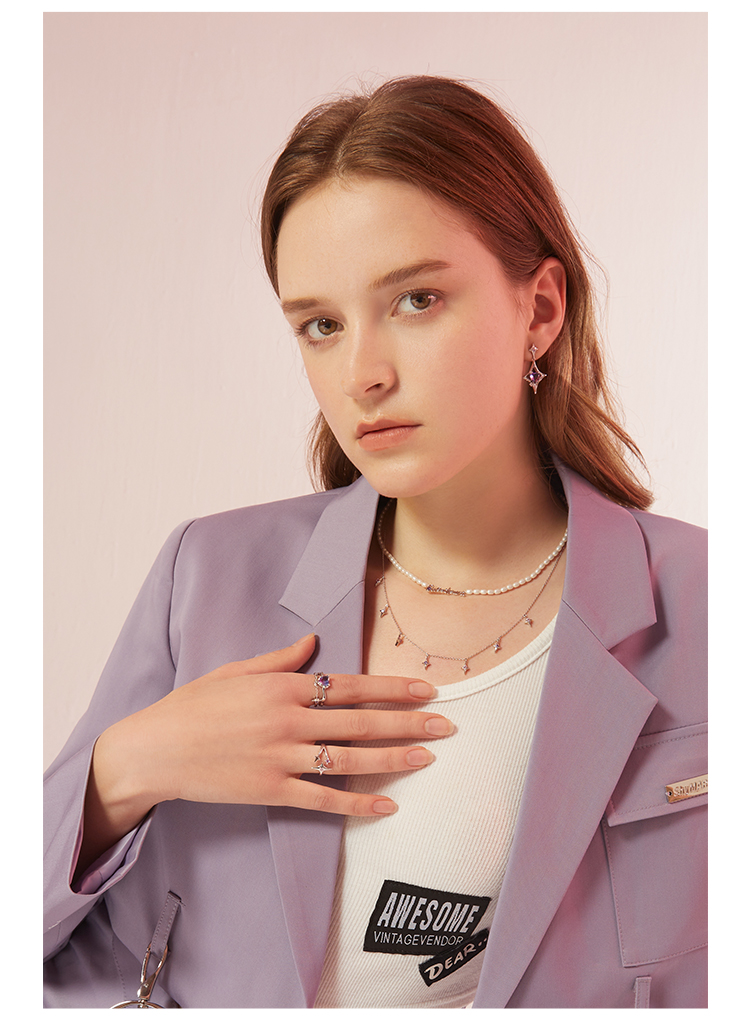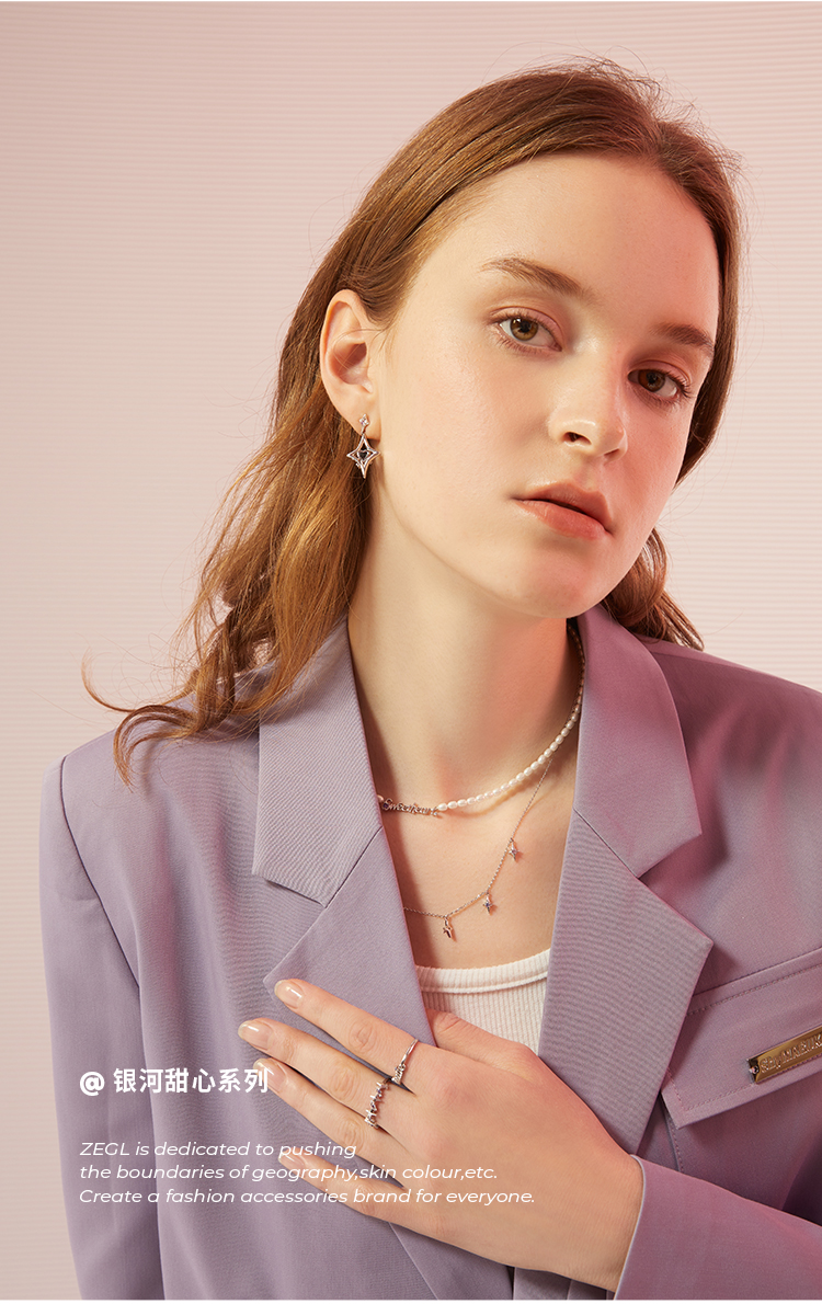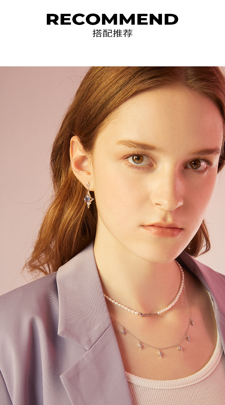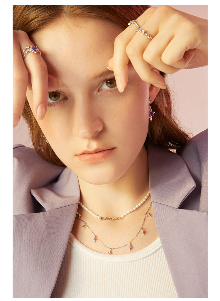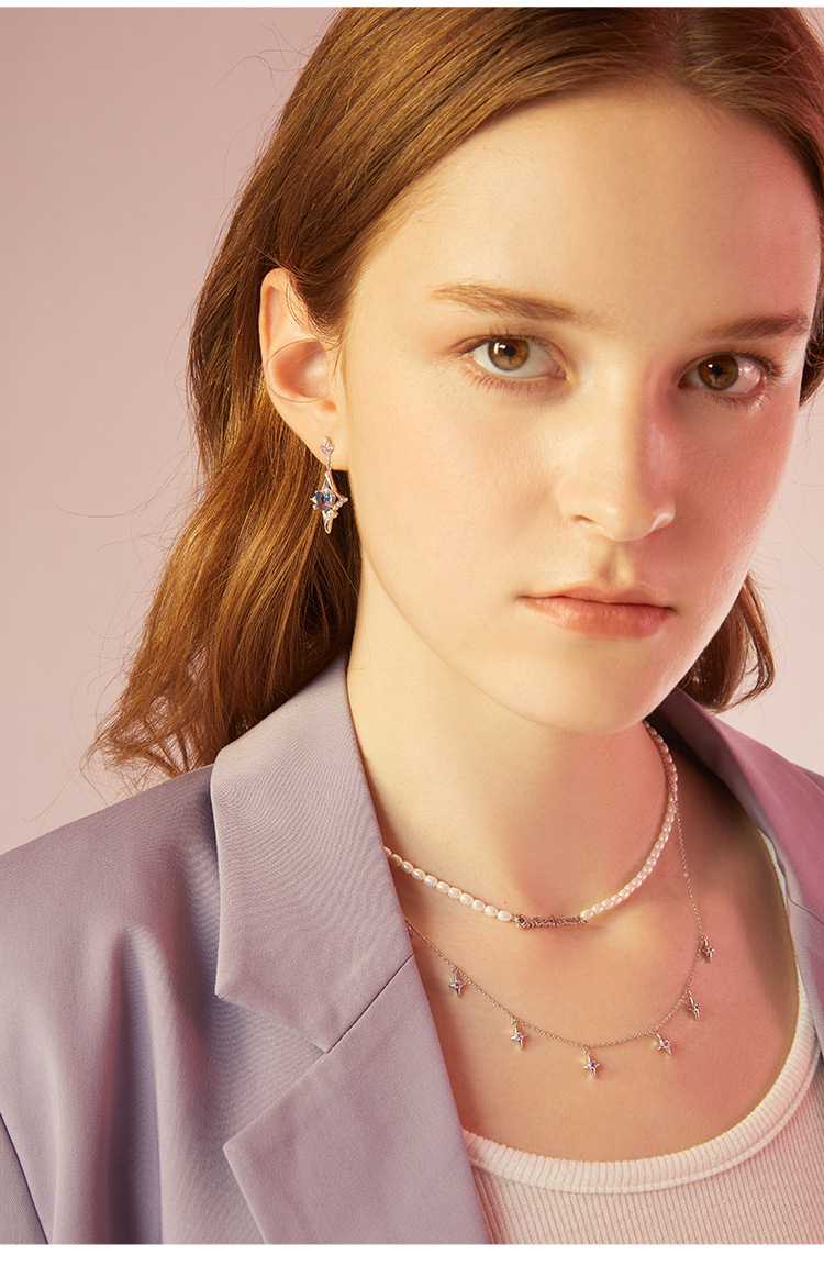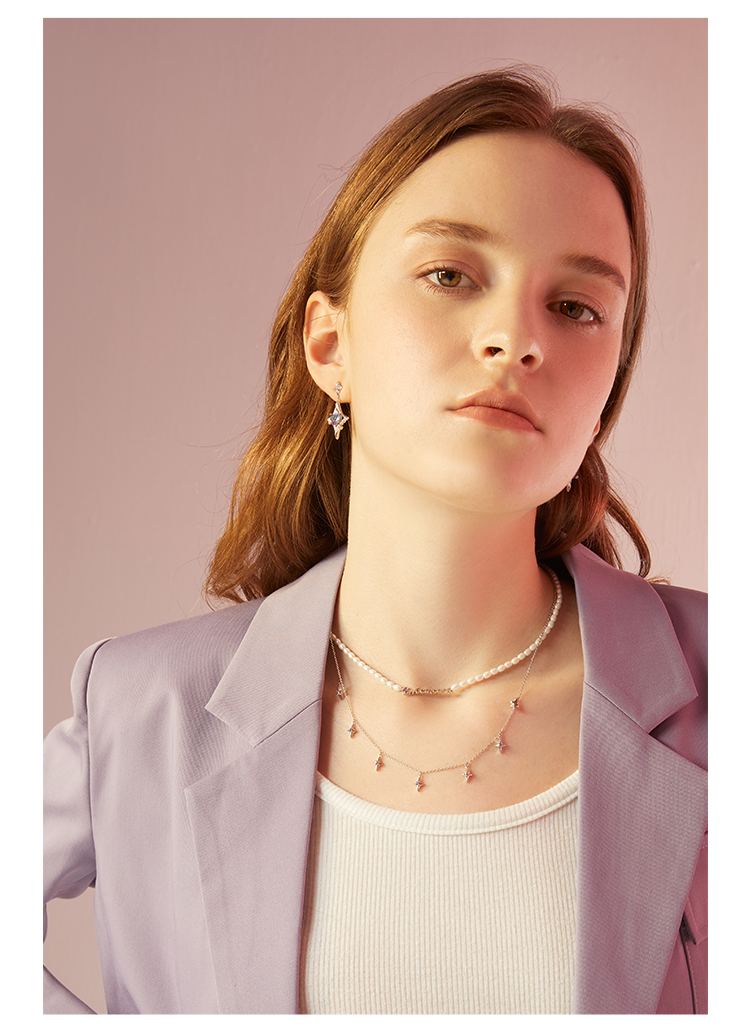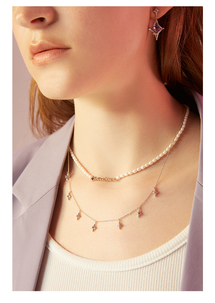 ZEGL设计师银河甜心系列四芒星项链女轻奢小众人造珍珠锁骨链配饰