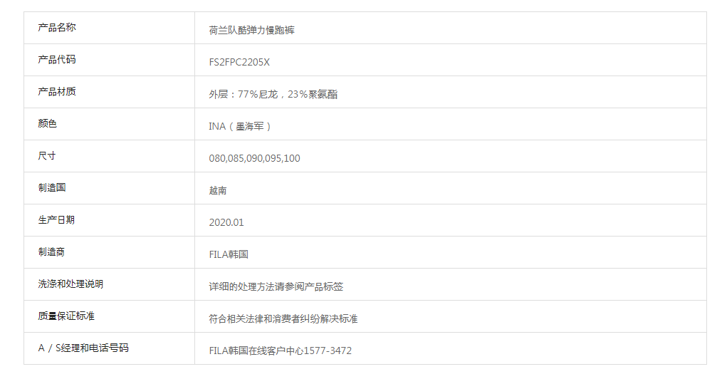 FILA斐乐韩国荷兰队弹性运动裤FS2FPC2205X_INAJPY带授权招加盟代理