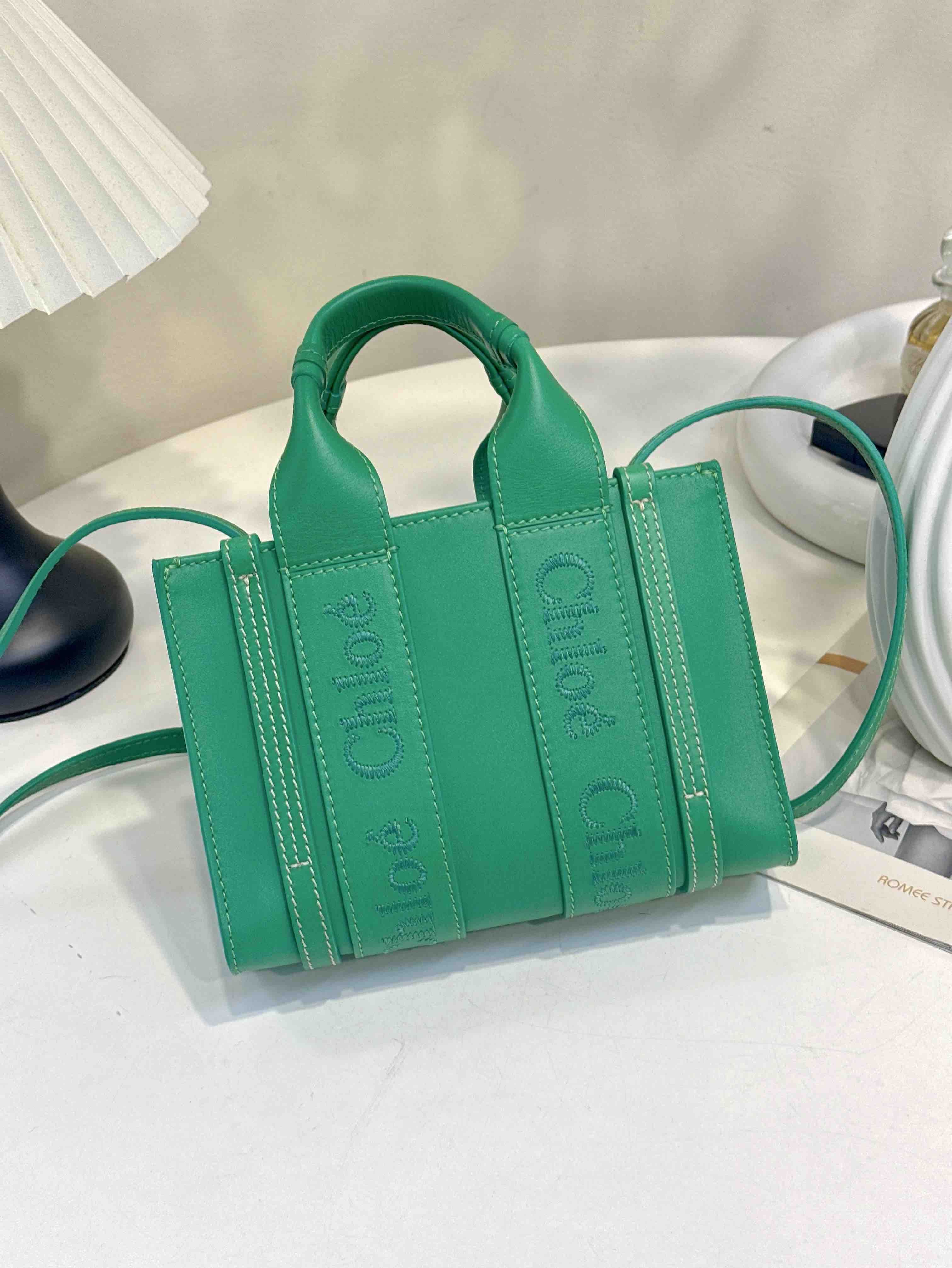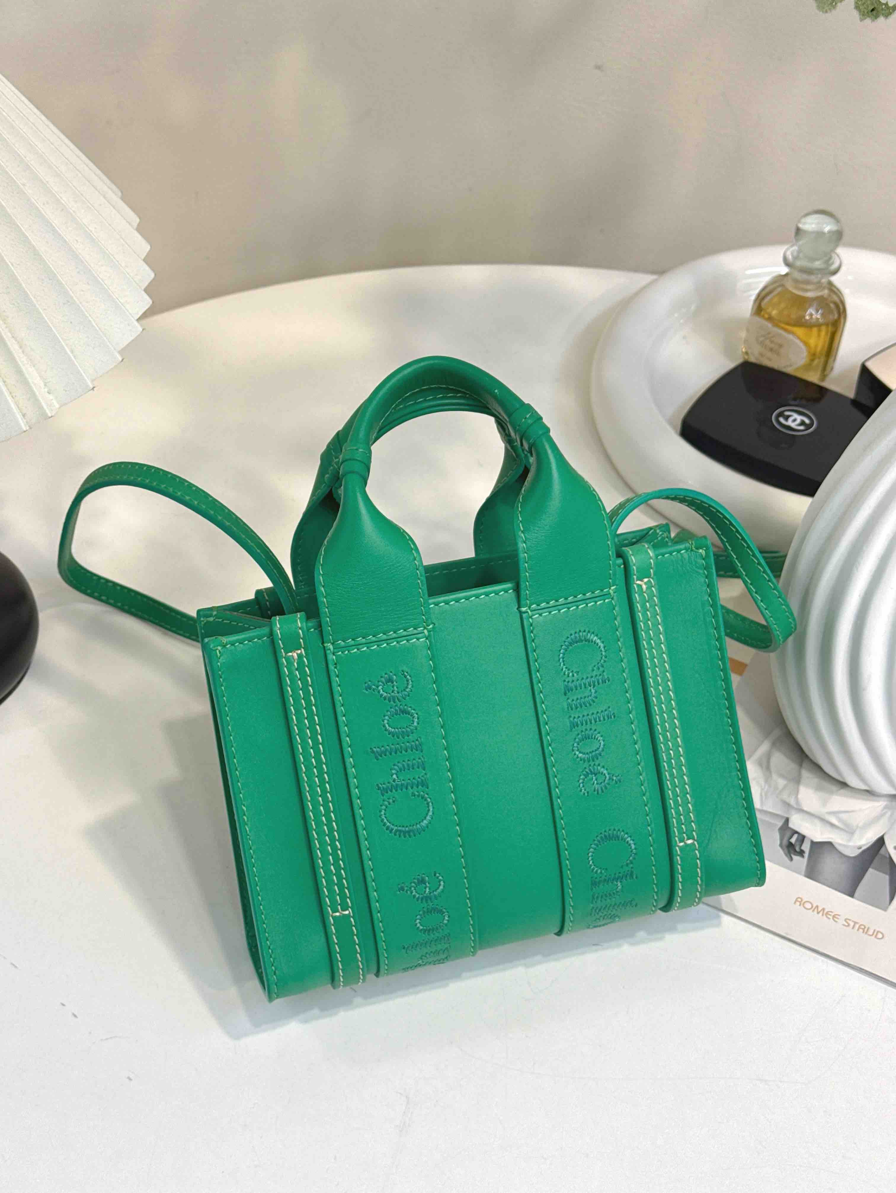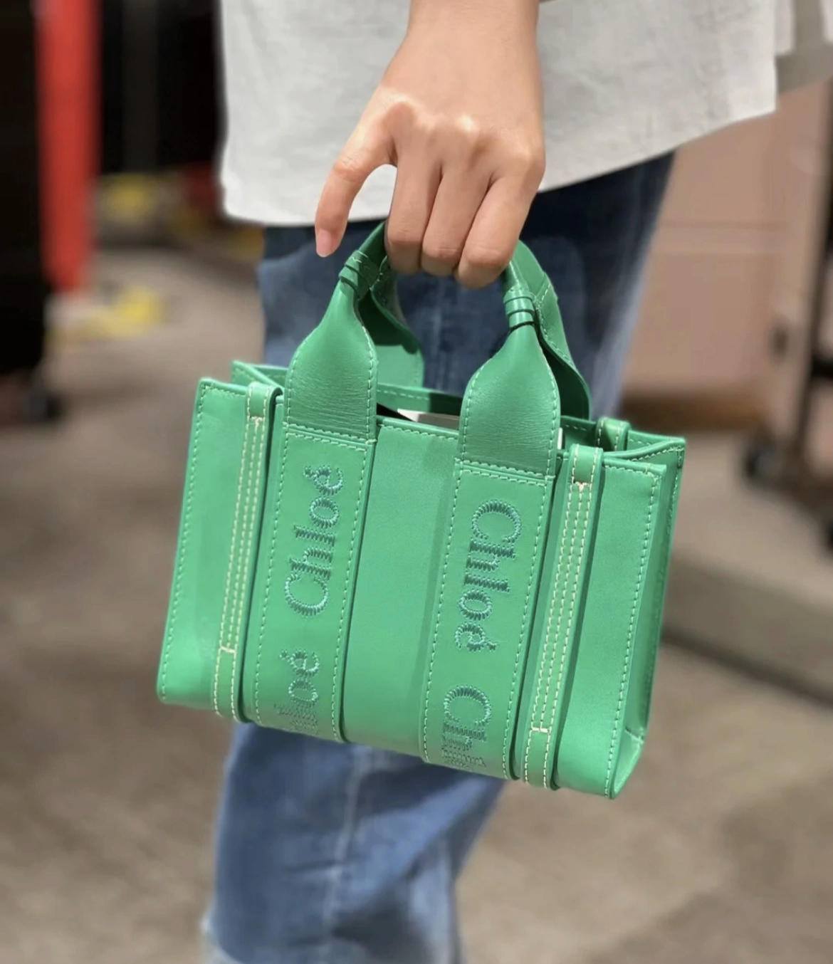 【商品详情】正品二手 克洛伊 mini 绿色 牛皮 woody 托特包🥗97新 20*14 配件:防尘袋。包边角有微微使用痕迹感。