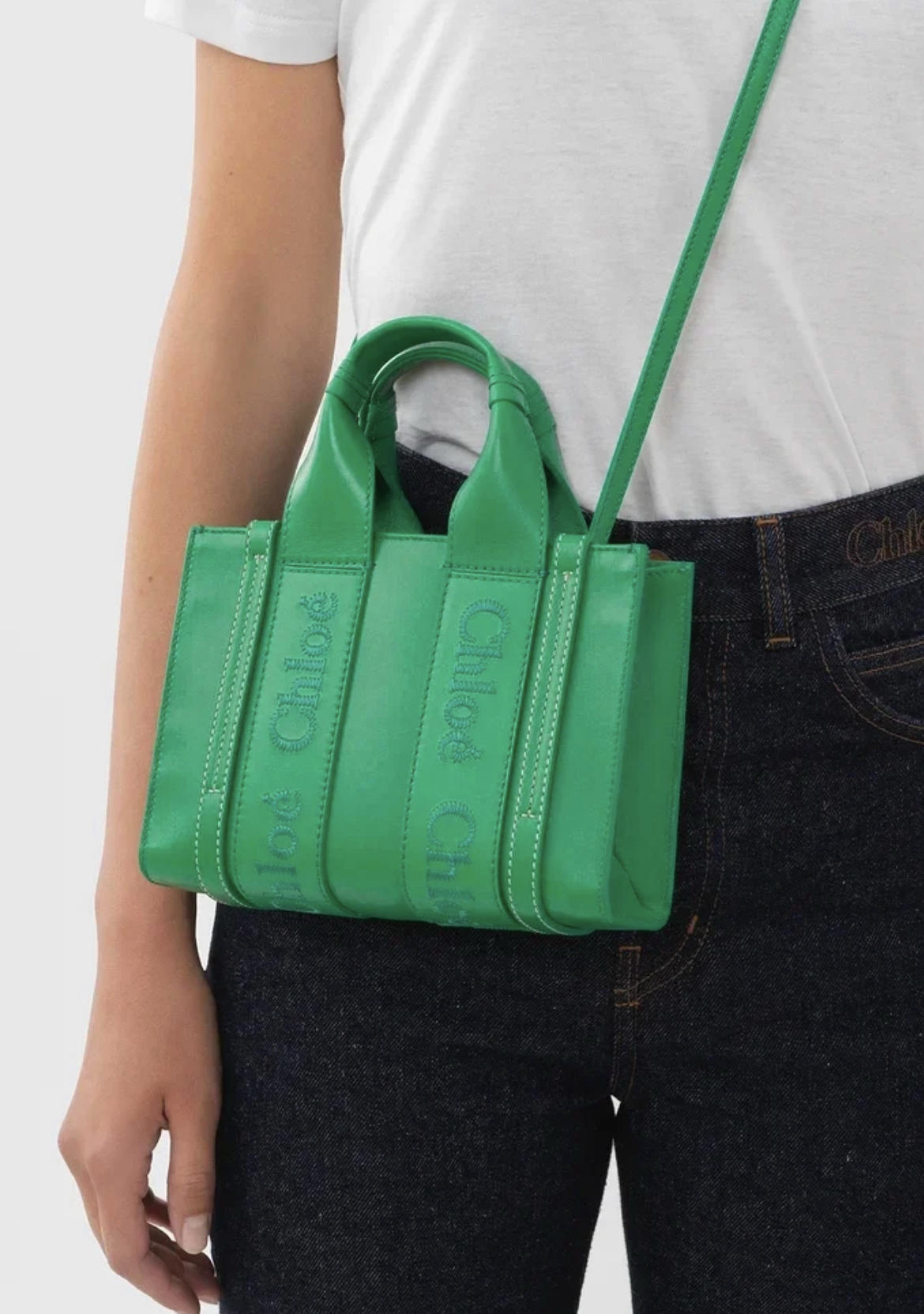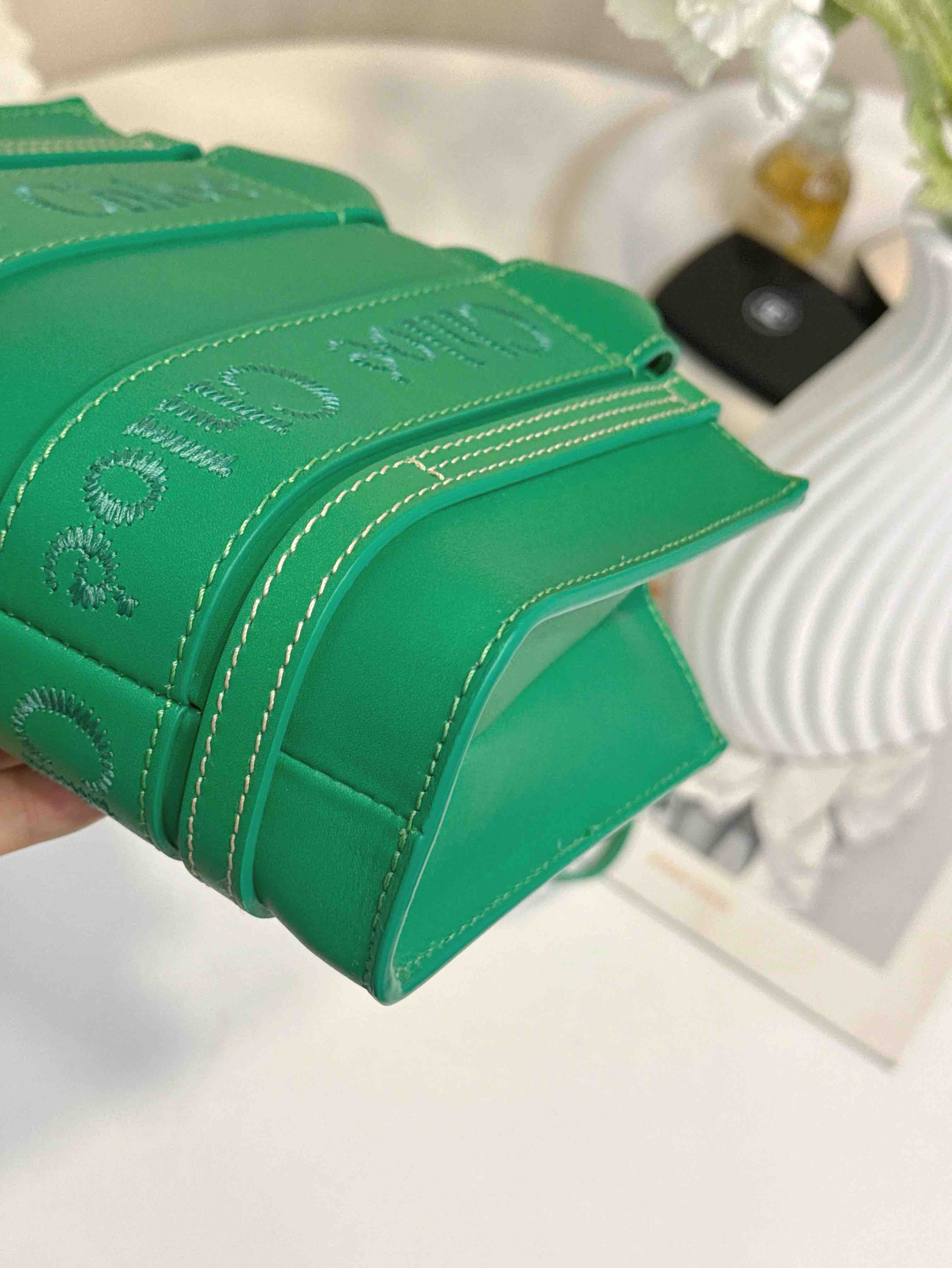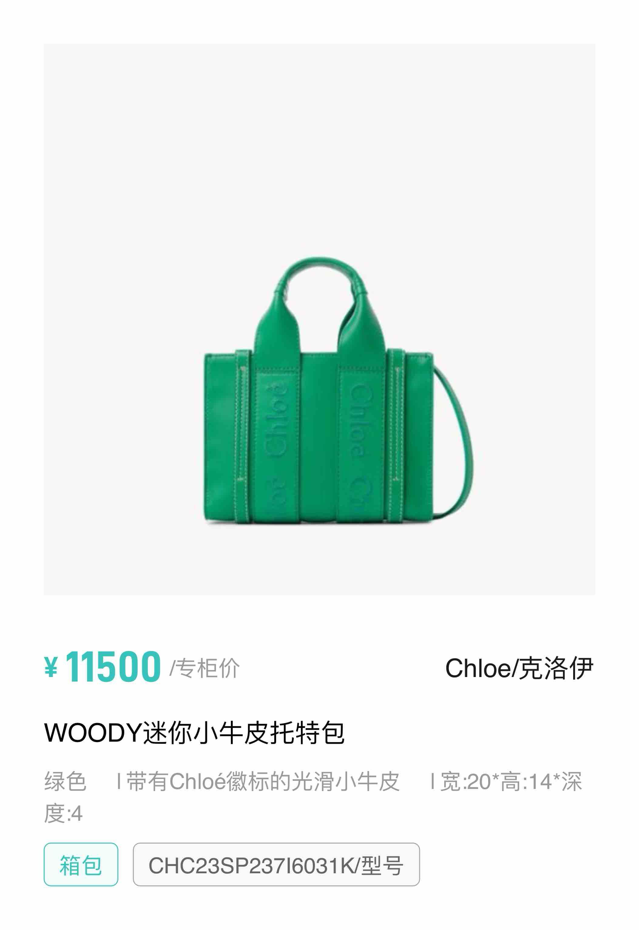 【商品详情】正品二手 克洛伊 mini 绿色 牛皮 woody 托特包🥗97新 20*14 配件:防尘袋。包边角有微微使用痕迹感。