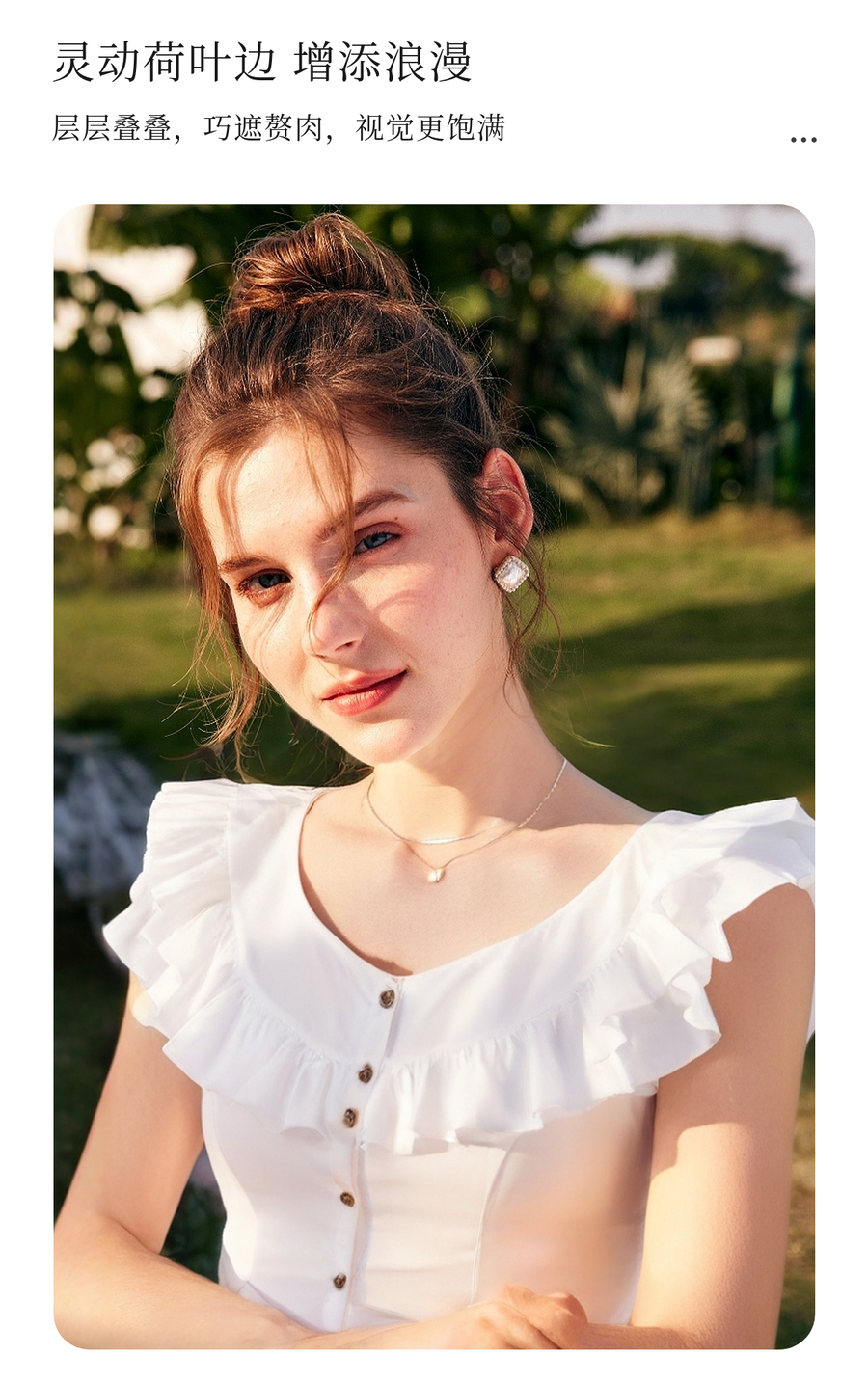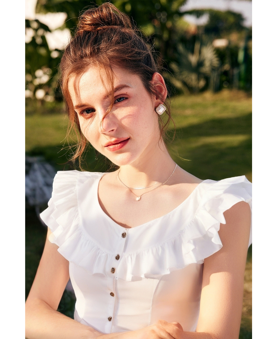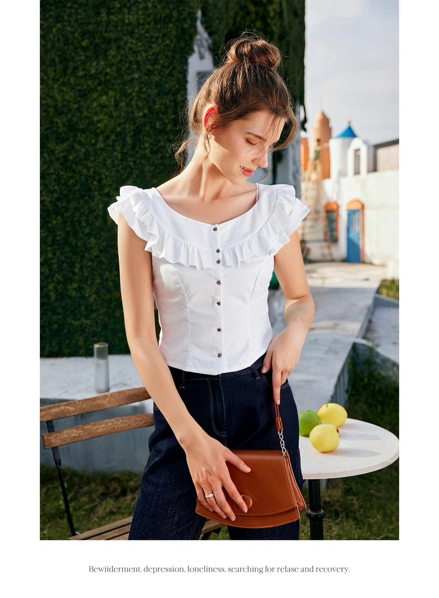 OLrain欧芮儿白色荷叶边显瘦法式雪纺衫女夏季2025新款小个子上衣