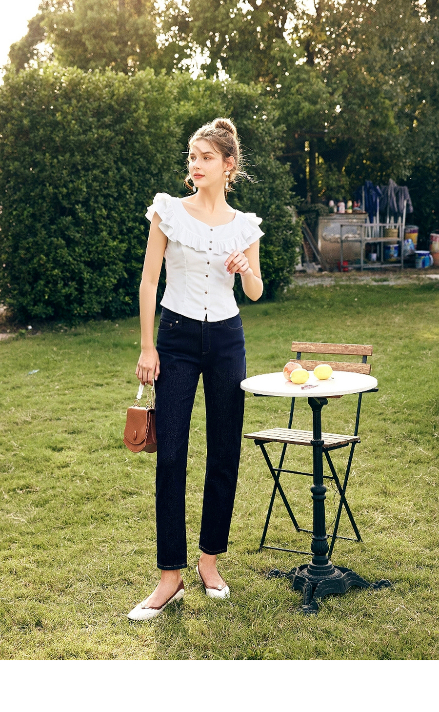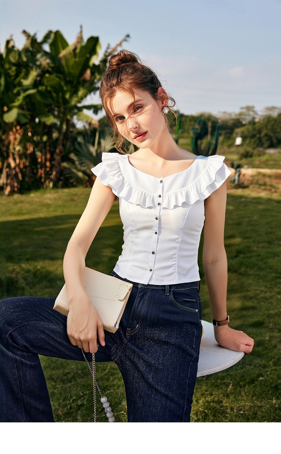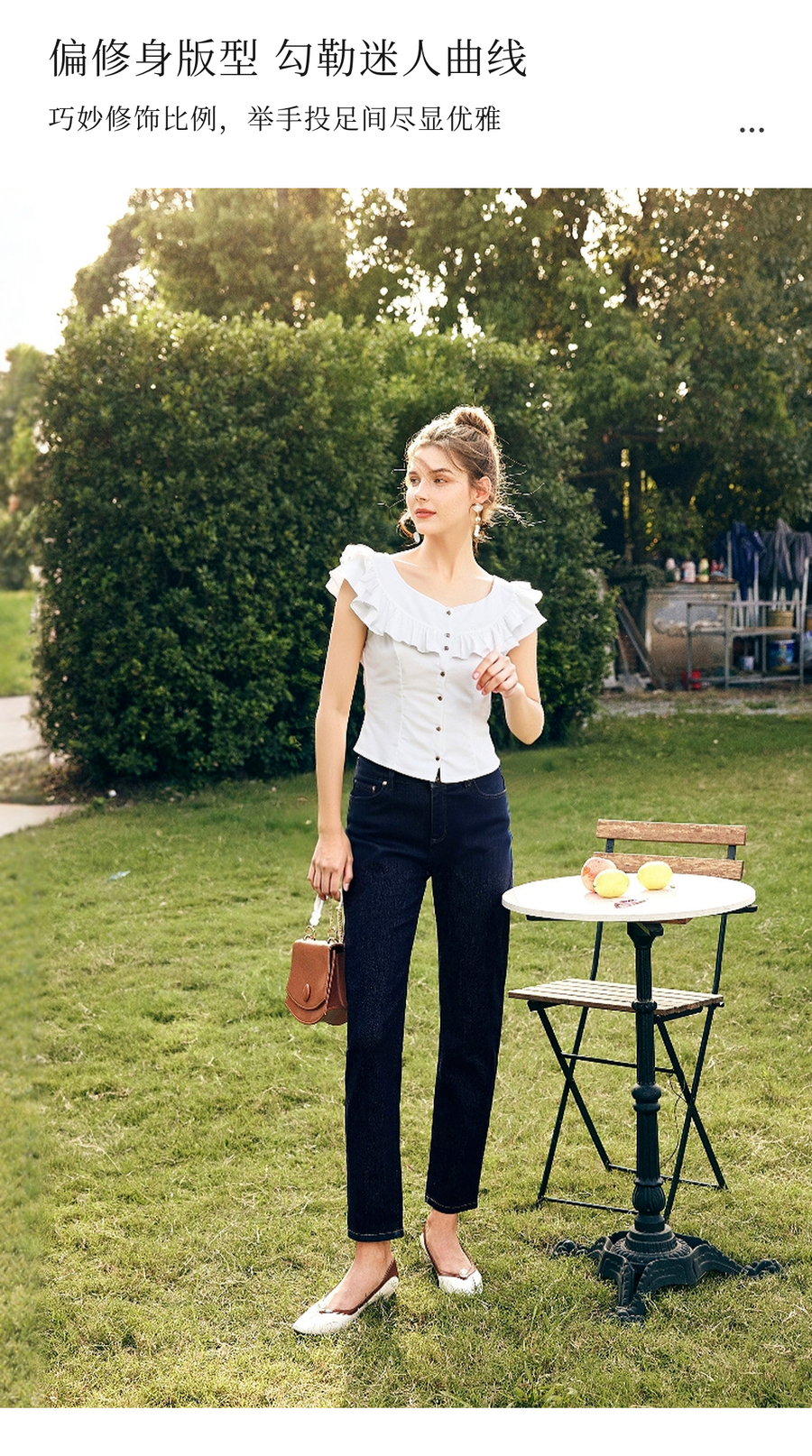 OLrain欧芮儿白色荷叶边显瘦法式雪纺衫女夏季2025新款小个子上衣