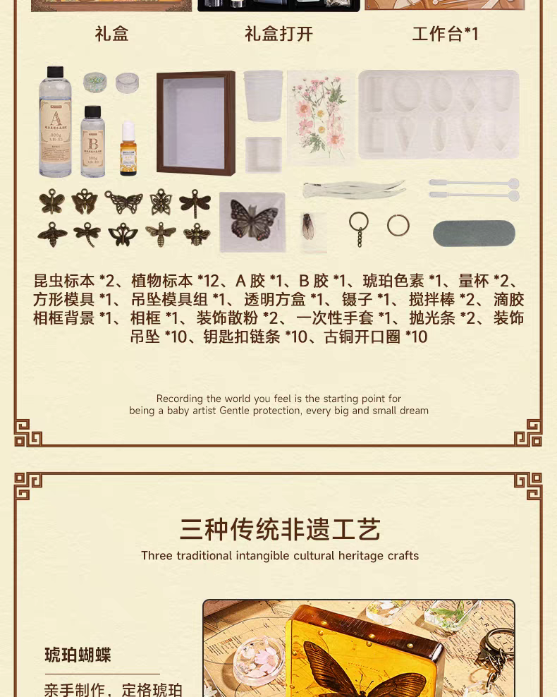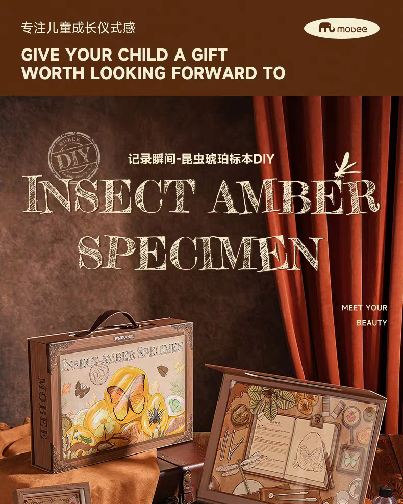 mobee昆虫琥珀标本diy制作材料工具儿童科学实验套装手工玩具礼物