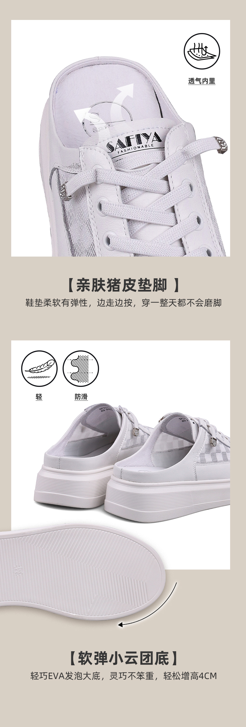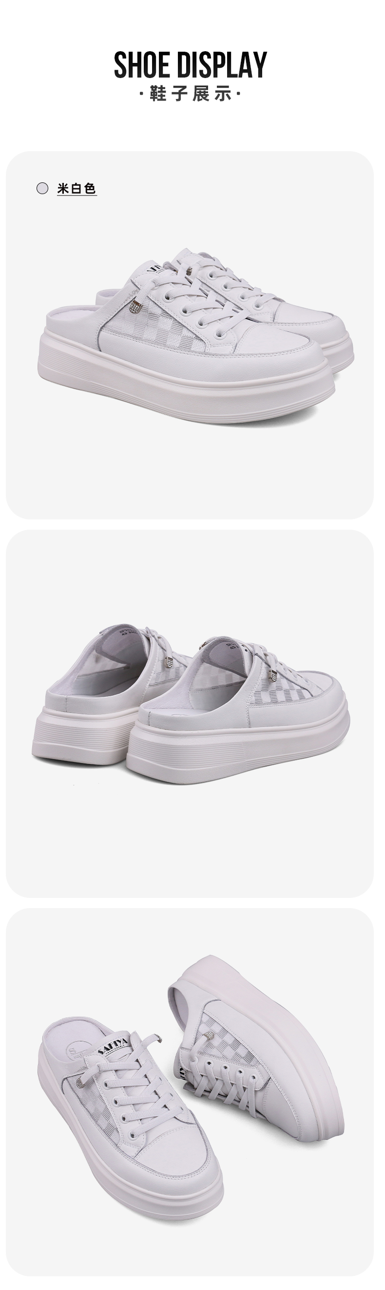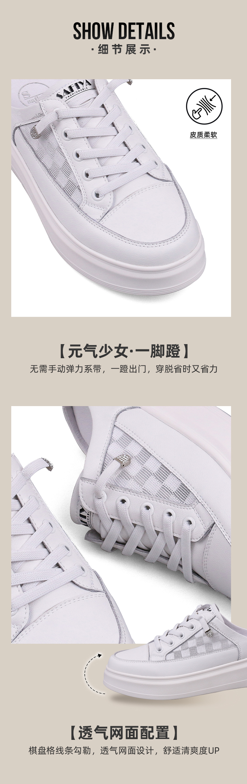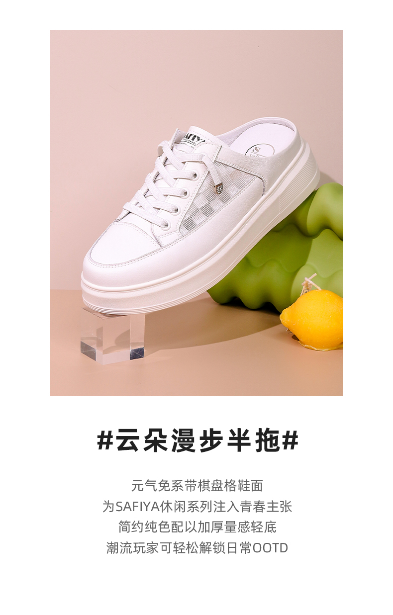 Safiya/索菲娅 新潮棋盘格2023年春季新款松糕厚底休闲半拖小白鞋 SF31110046