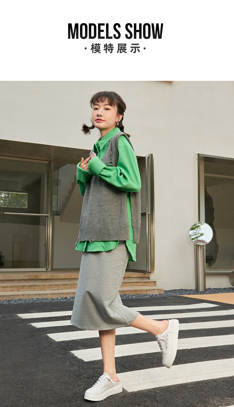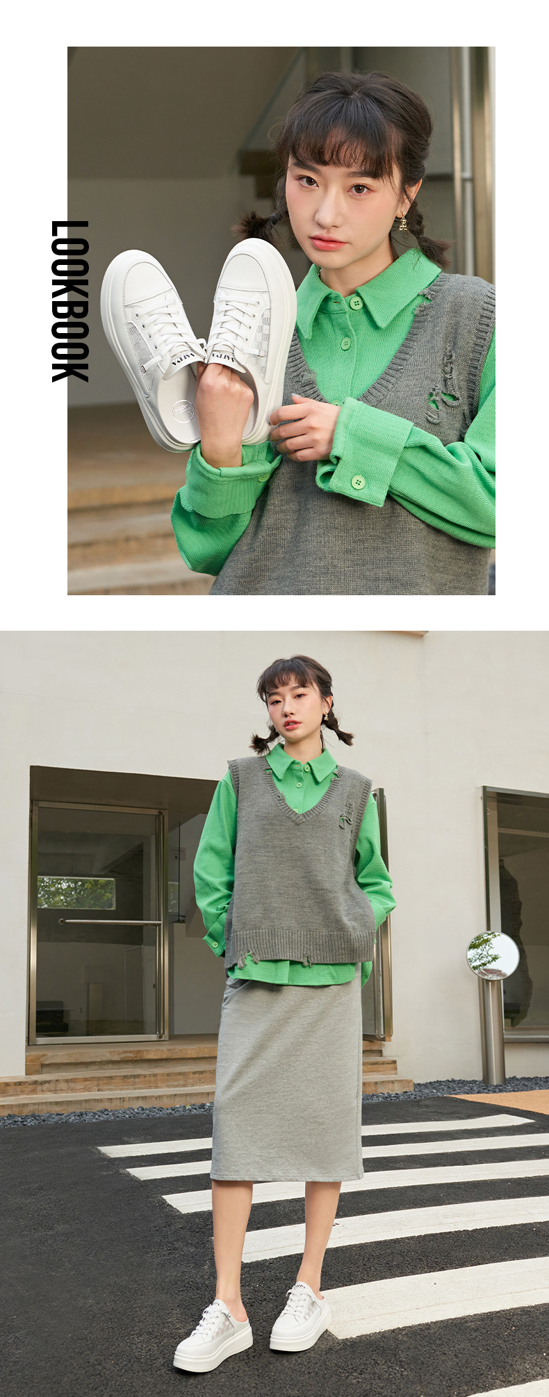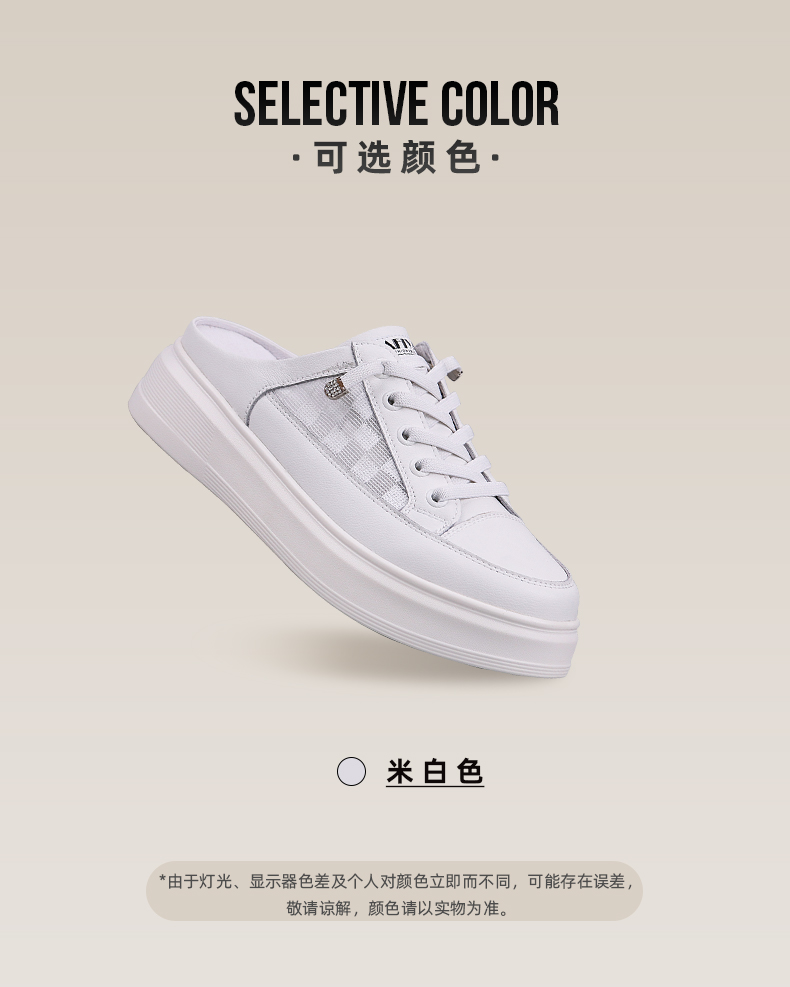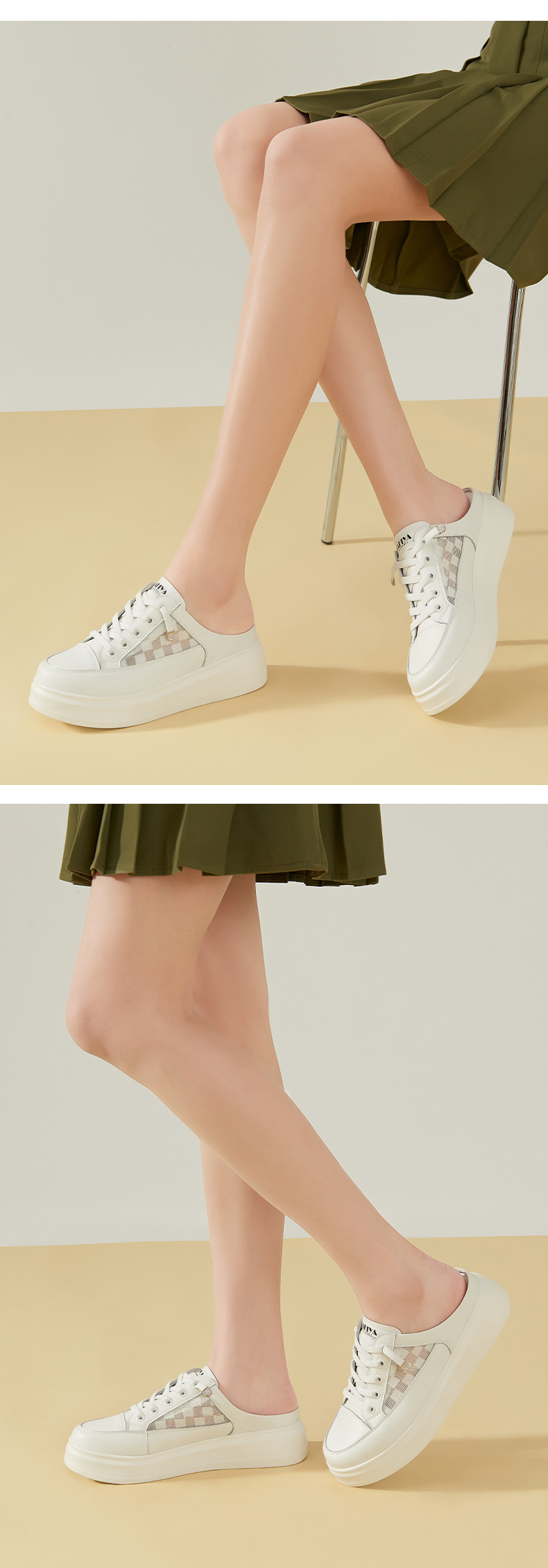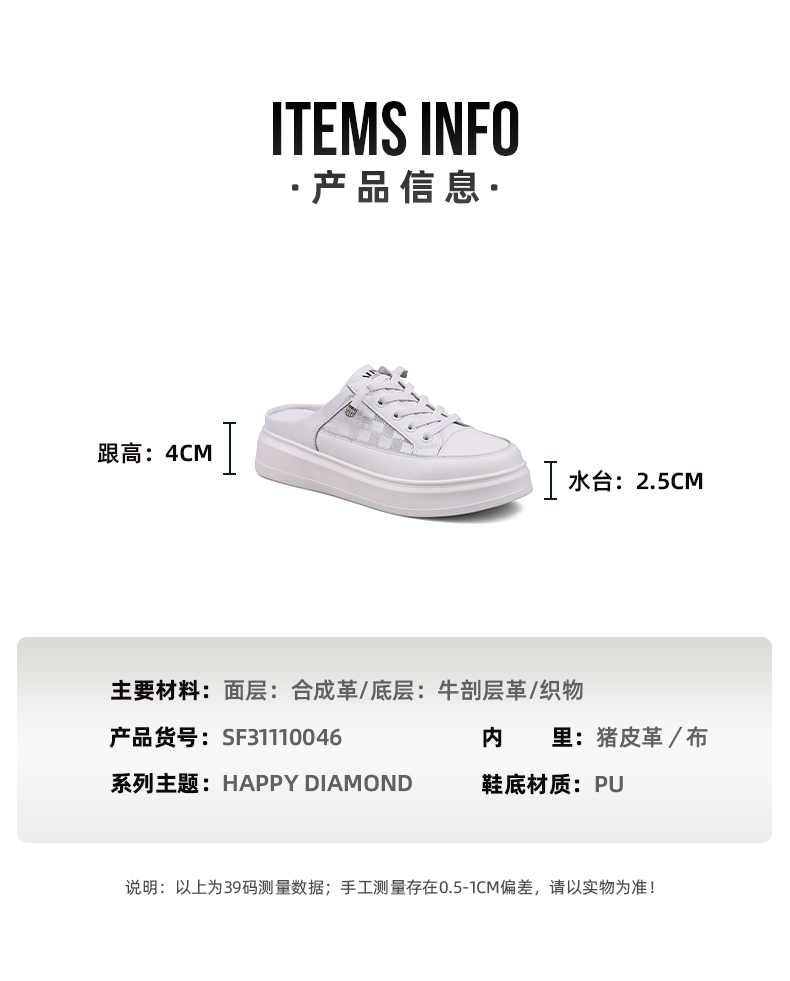 Safiya/索菲娅 新潮棋盘格2023年春季新款松糕厚底休闲半拖小白鞋 SF31110046