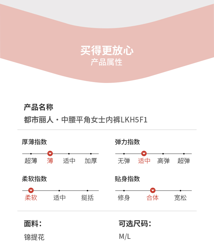 都市丽人薄透丝滑薄透丝滑系列锦提花平角裤LKH5F1