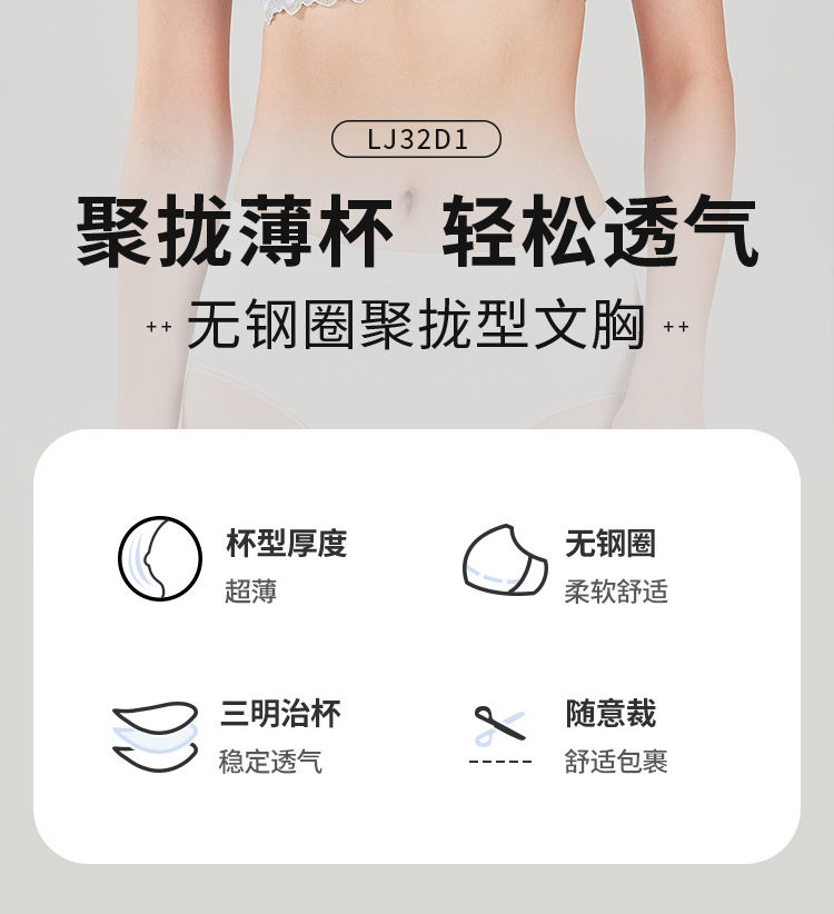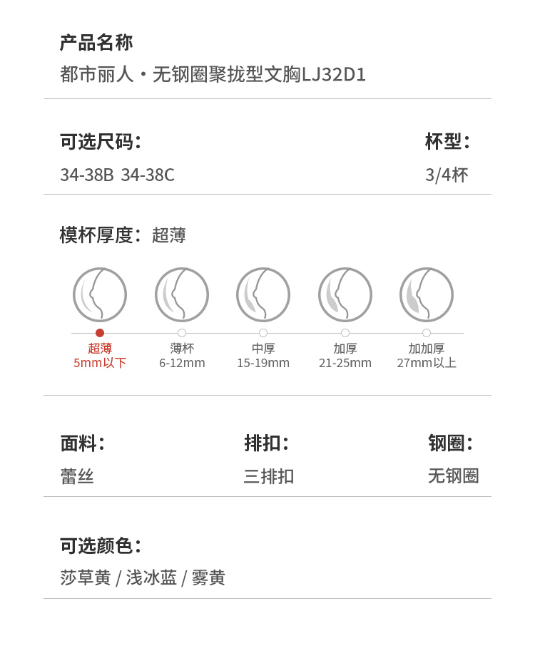 都市丽人舒软挺塑调整型内衣BC超薄3/4杯蕾丝塑身文胸三排无钢圈LJ32D1