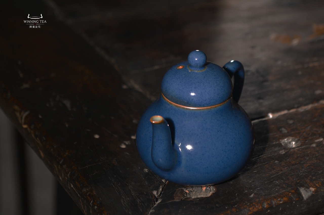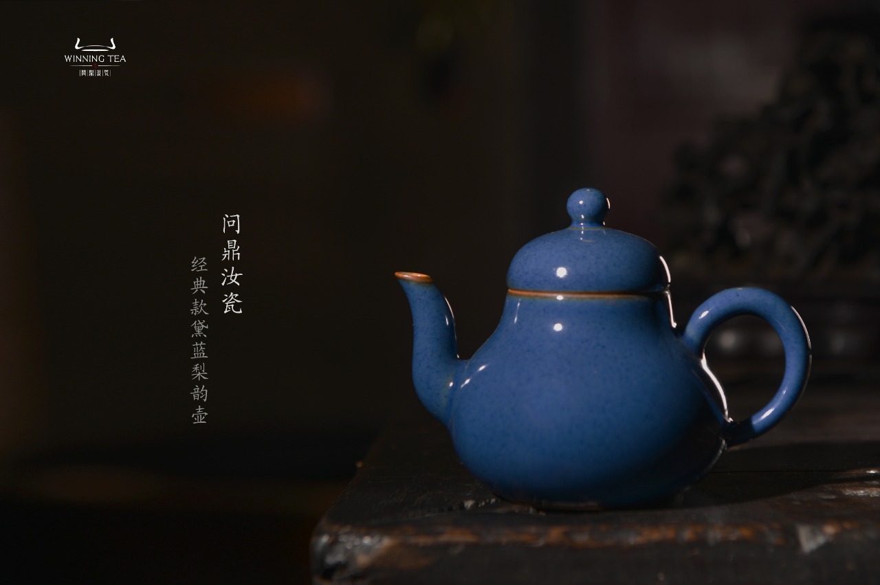 问鼎汝瓷经典款黛蓝梨韵壶 景德镇泡茶壶小泡壶