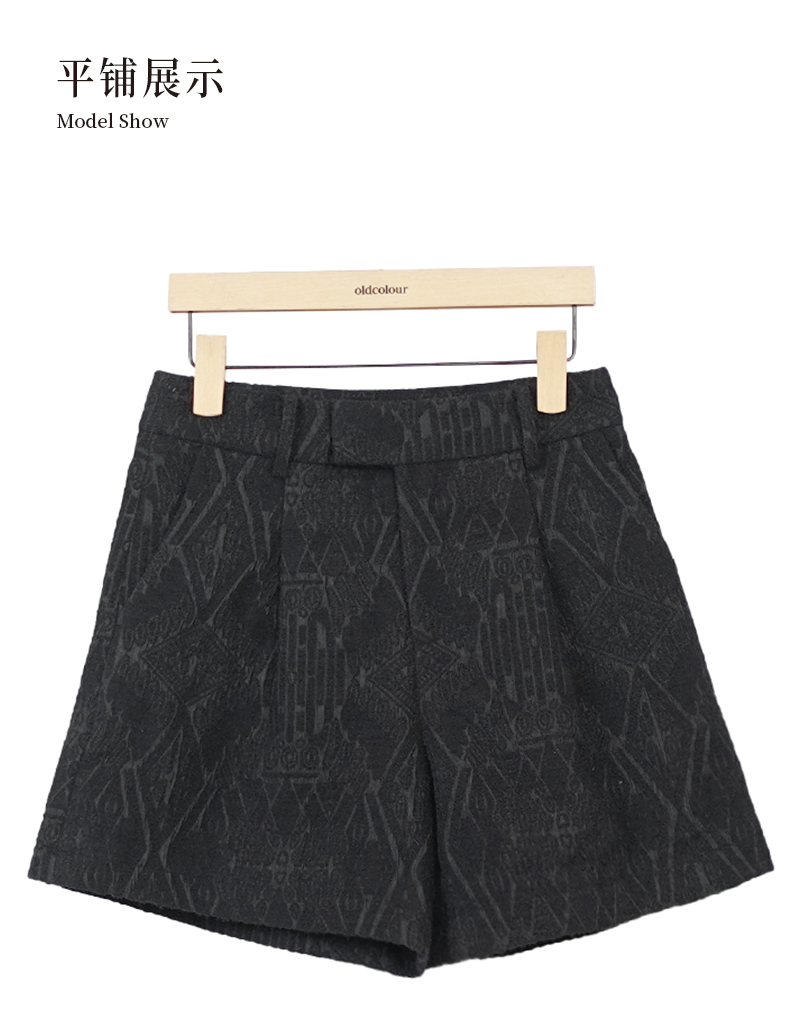 oldcolour黑色高腰短裤冬季新款印花简约百搭休闲裤女O42071221