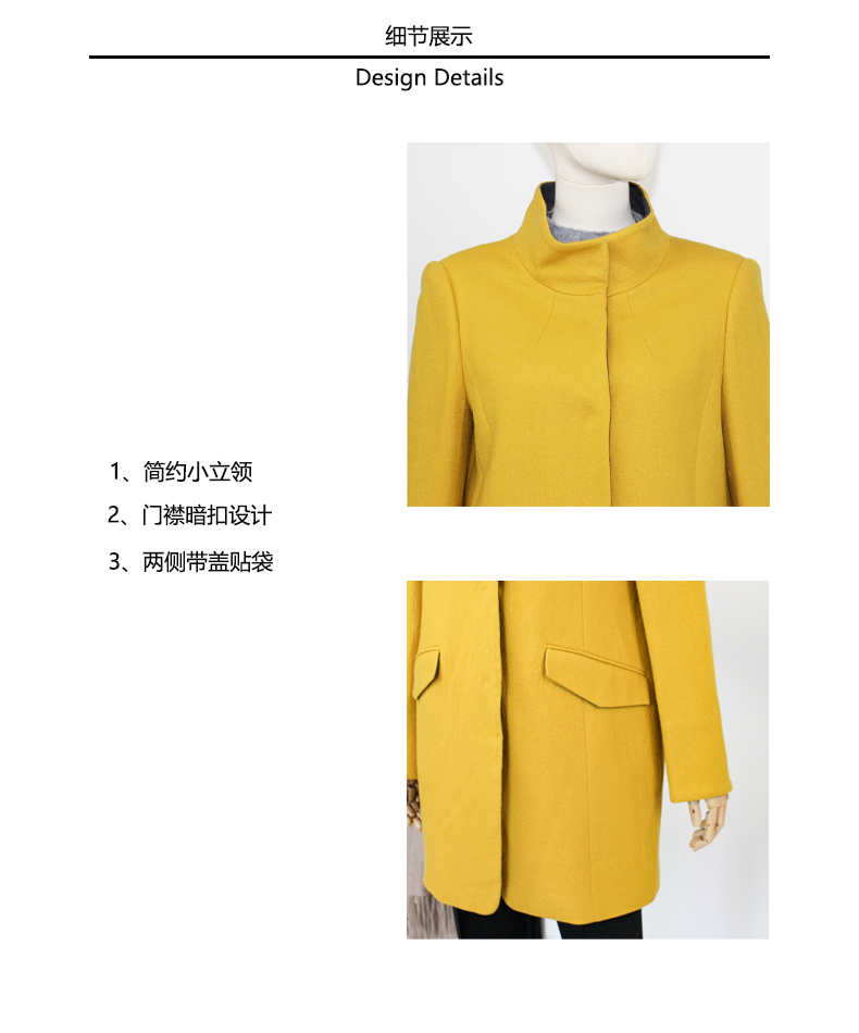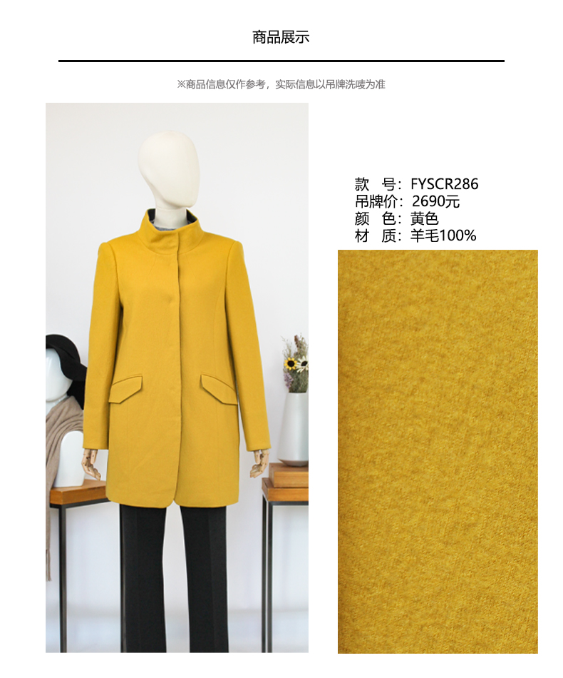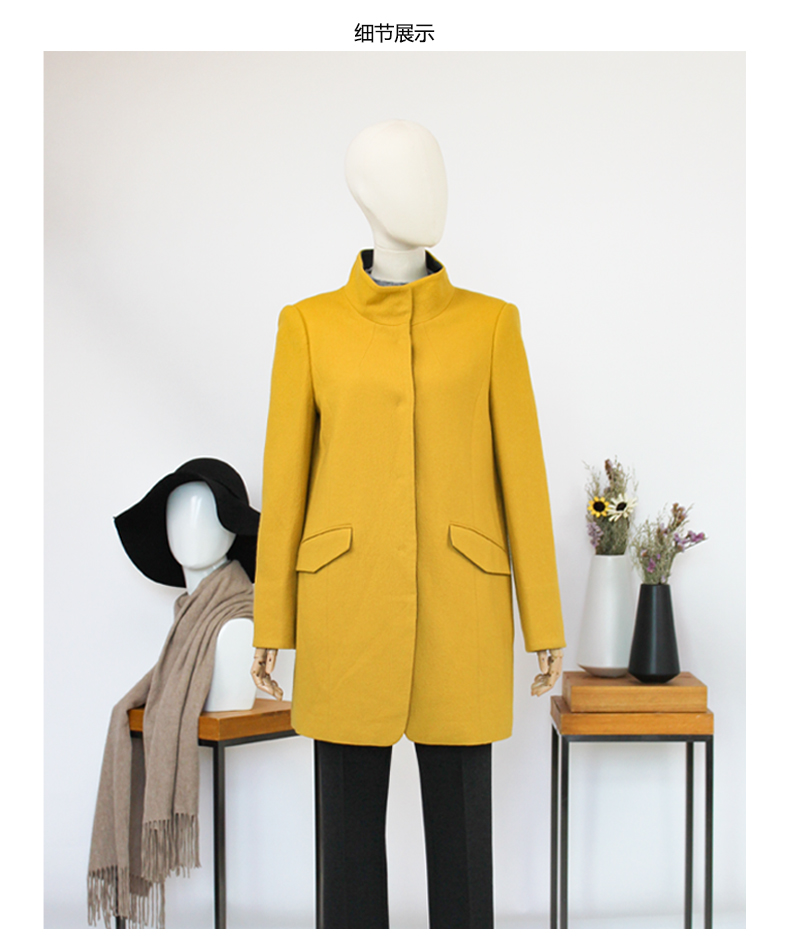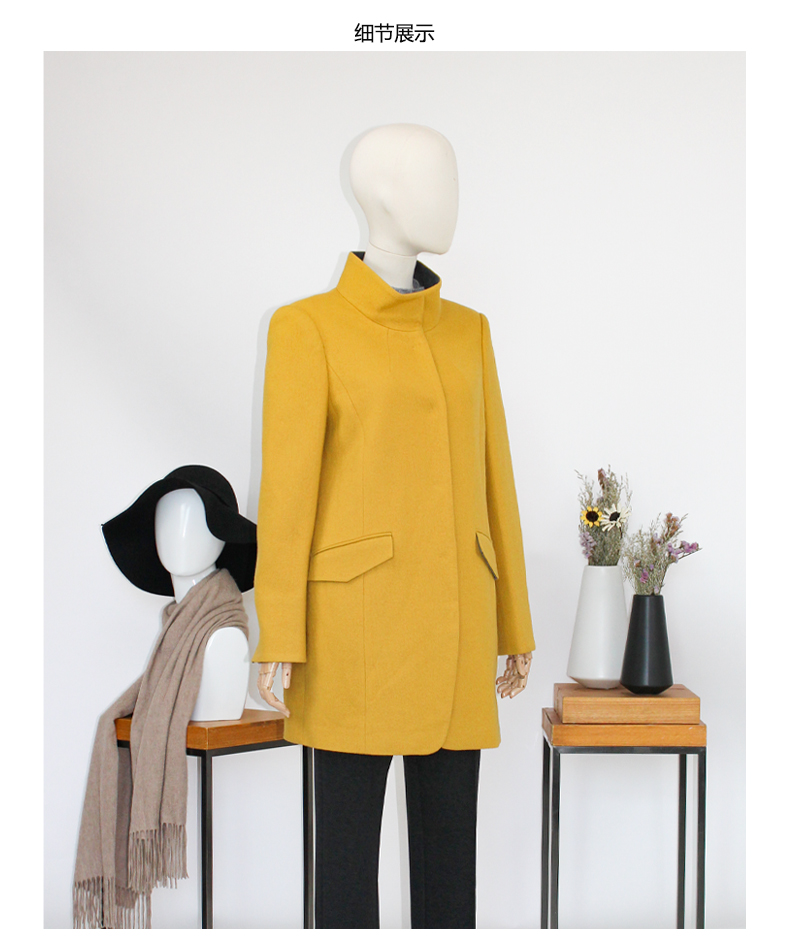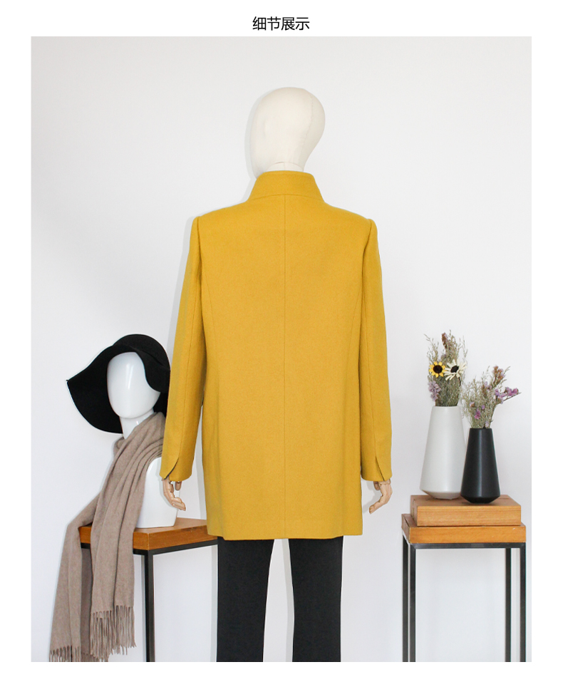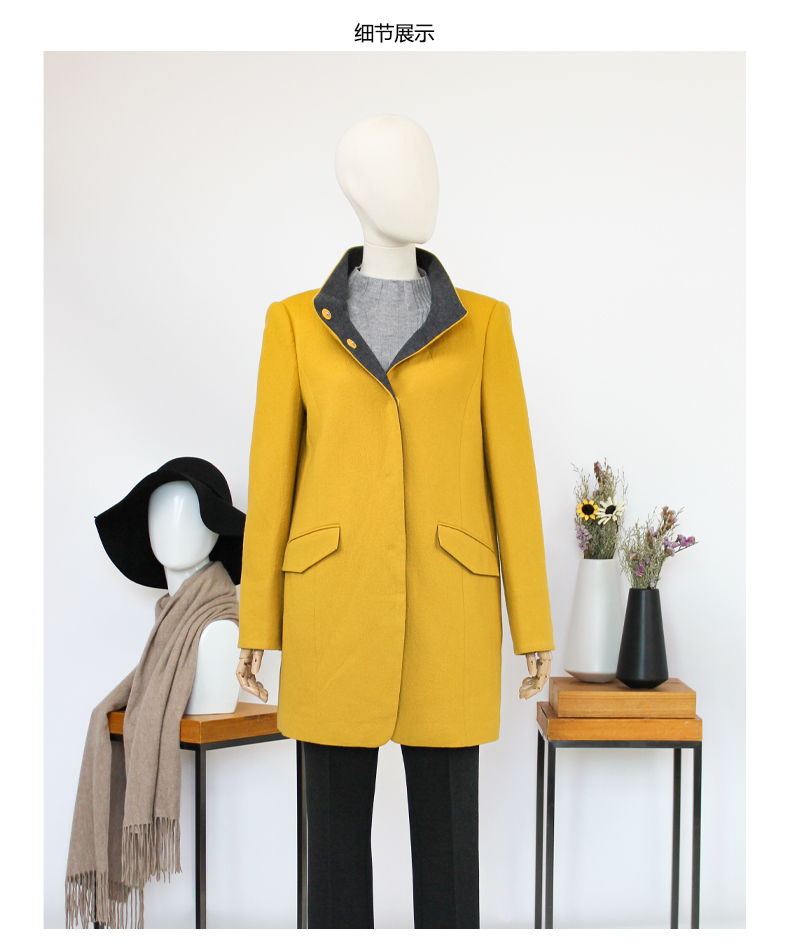 FOCALS福柯斯新款修身中长款纯色立领羊毛针织大衣外套FYSCR28632